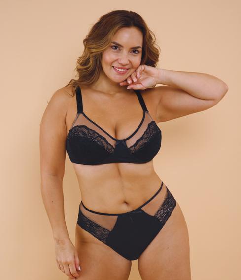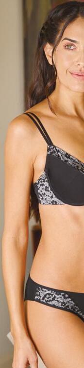 con spandex. Detalle de encaje animal print elastizada en tazas.