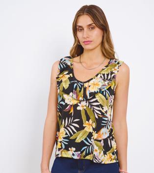 Confeccionada en viscosa estampada. Detalle de estampa localizada en delantero.