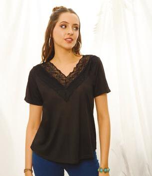 Confeccionada en viscosa con detalle de encaje animal print en hombros y jareta en escote. Línea clásica.
