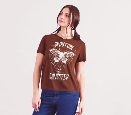 Confeccionado con viscosa gris topo. Con estampa localizada en delantero.