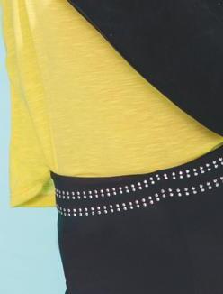 Confeccionado en viscosa con spandex. Detalle de abertura y tachas en manga.