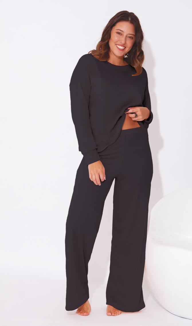 Confeccionada en viscosa negra. Bolsillo en delantero en viscosa estampada.