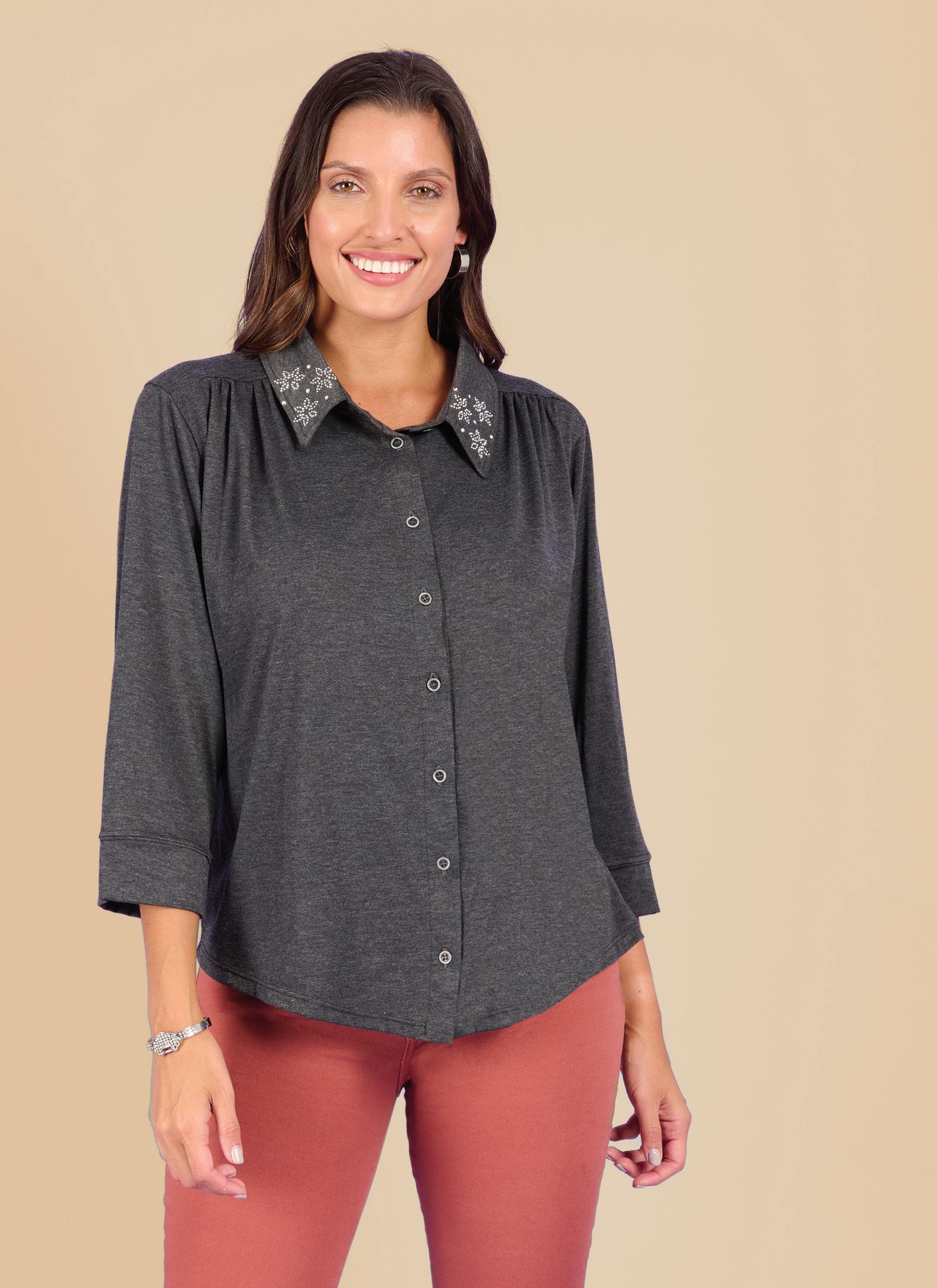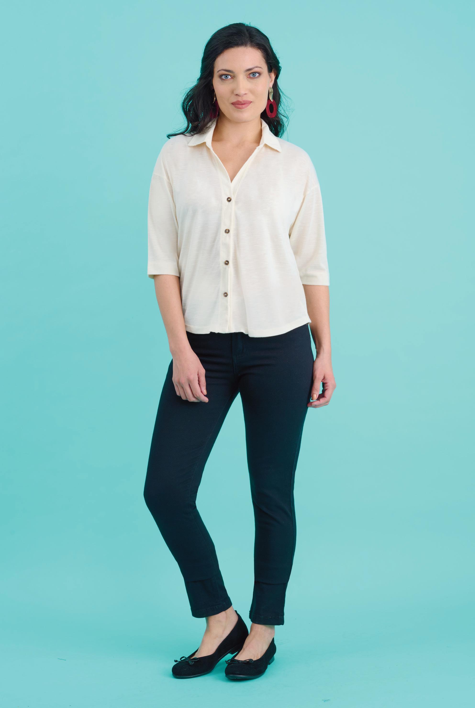 CAMISA ART. D218-73 Confeccionada en viscosa y viscosa flamé. Detalle de botones marmolados. Línea clásica. Colores: Negro (02), Hueso (40) Talles: 1 - 2 - 3 - 4 - 5 - 6 - 7 ¡TALLES HASTA EL 7!