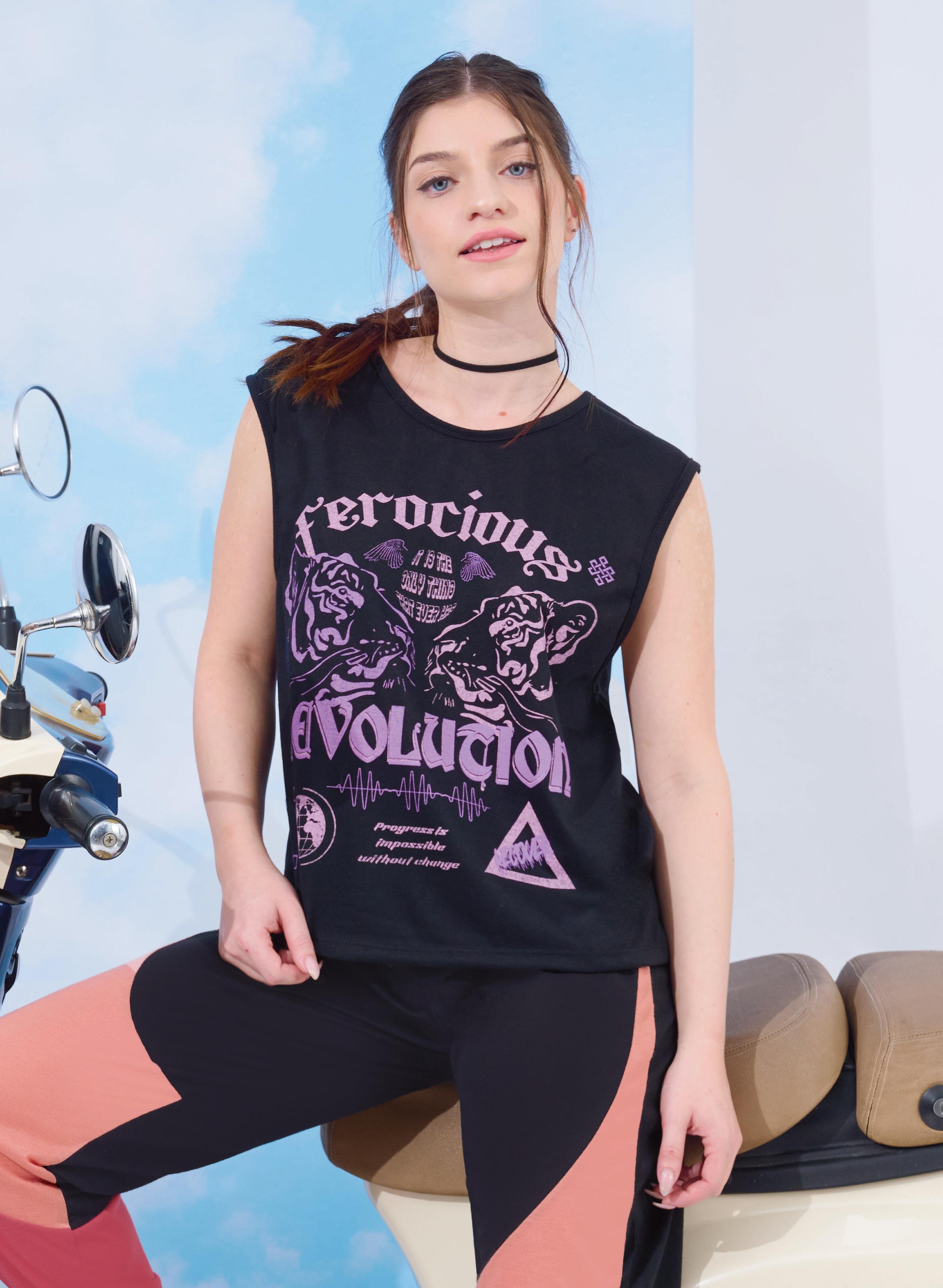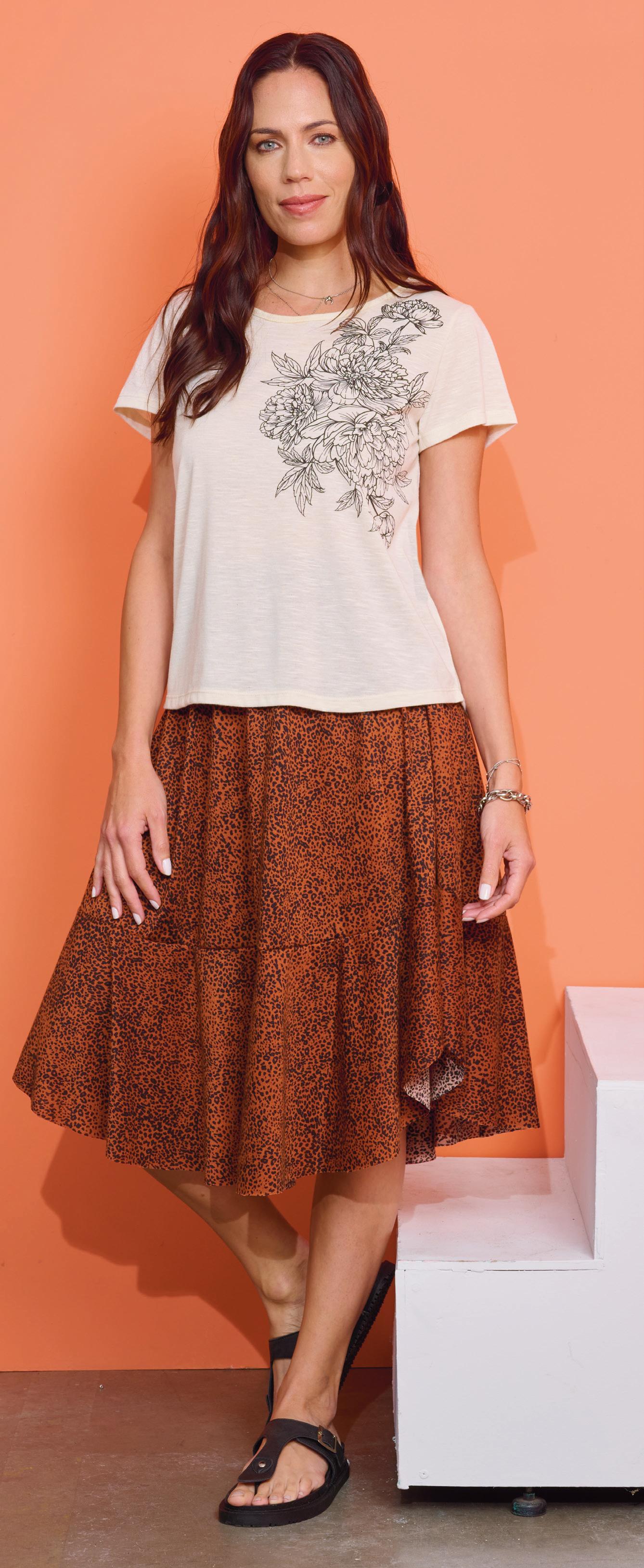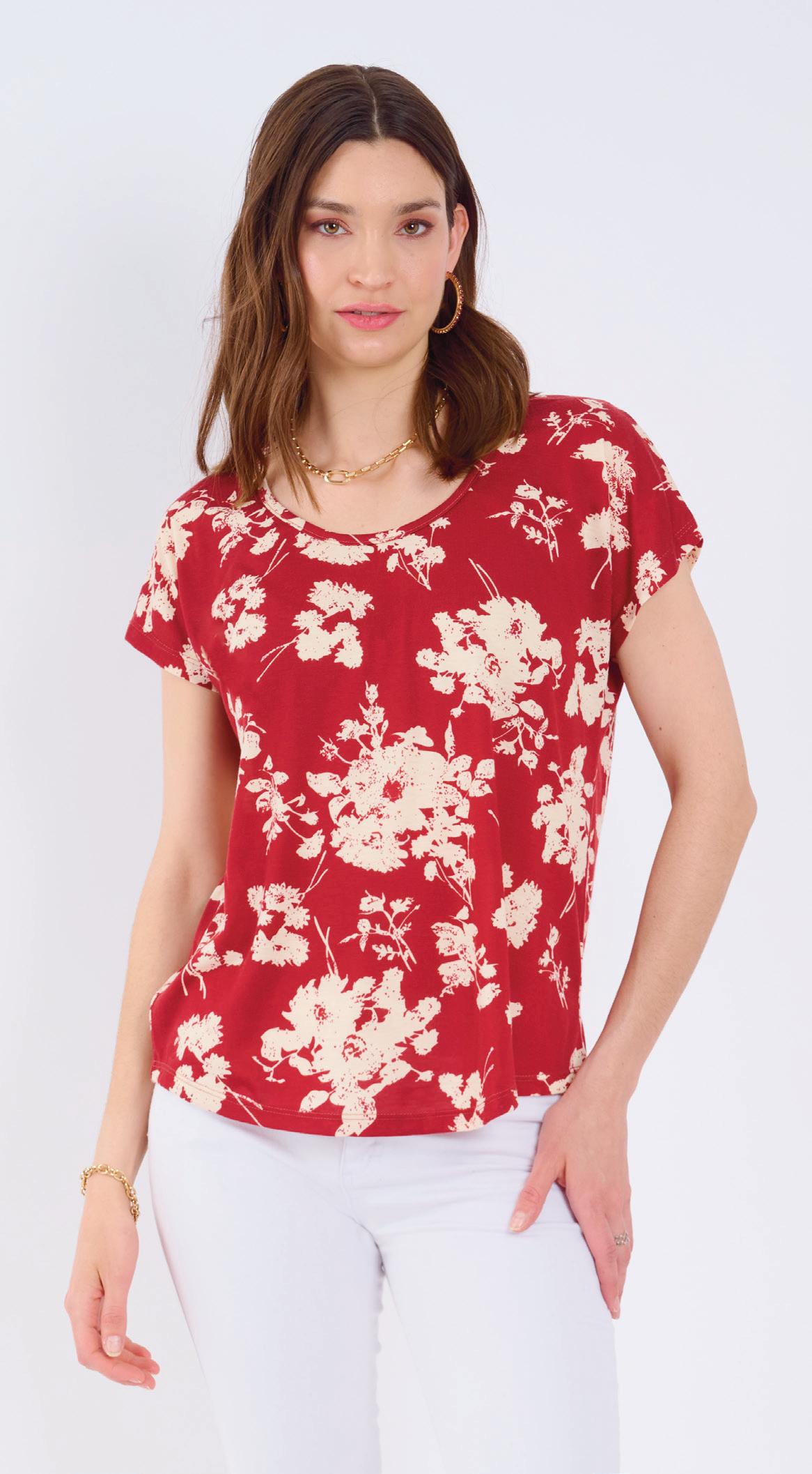 Confeccionada en viscosa estampada con estampa localizada en delantero. Línea clásica.