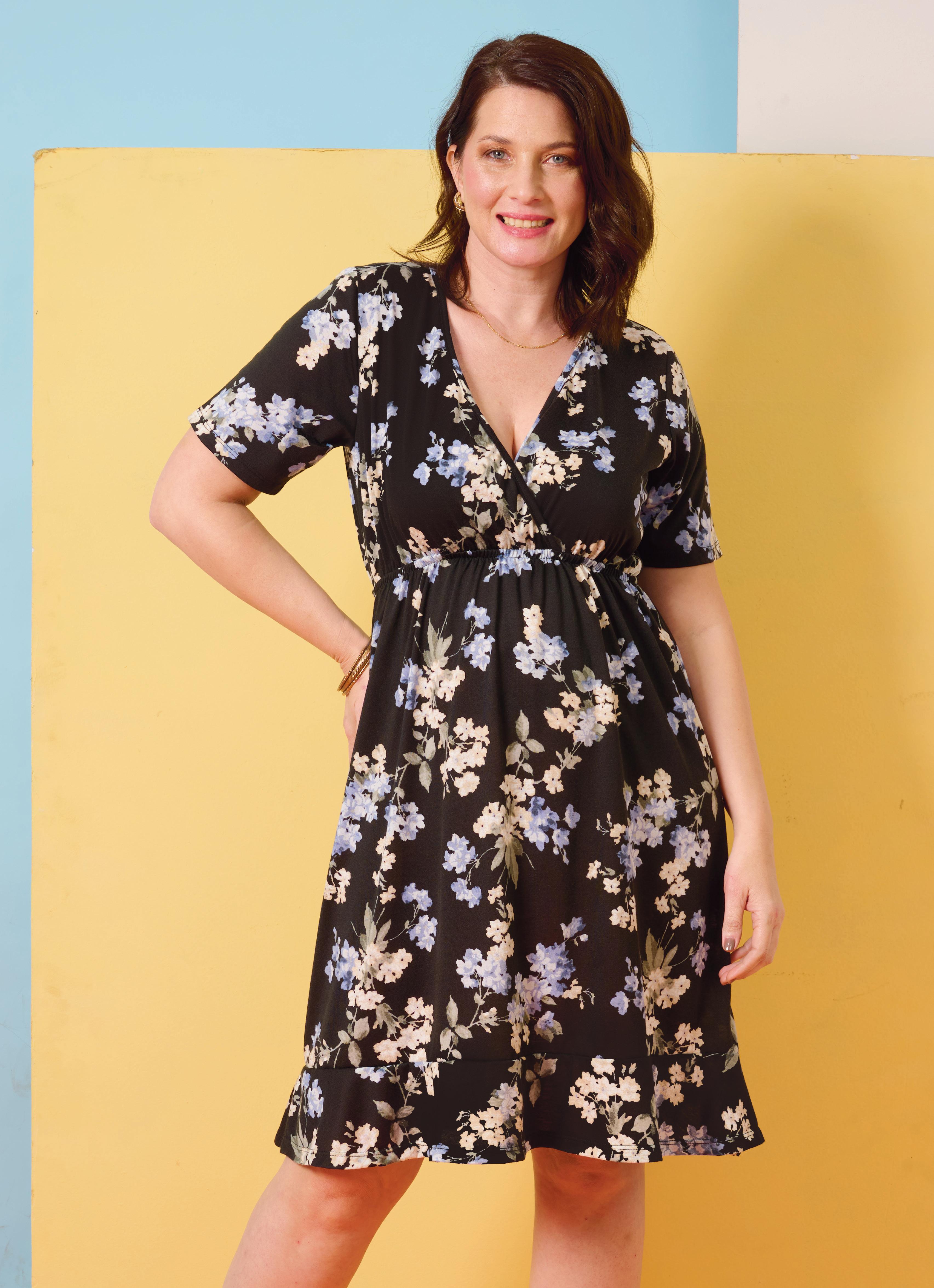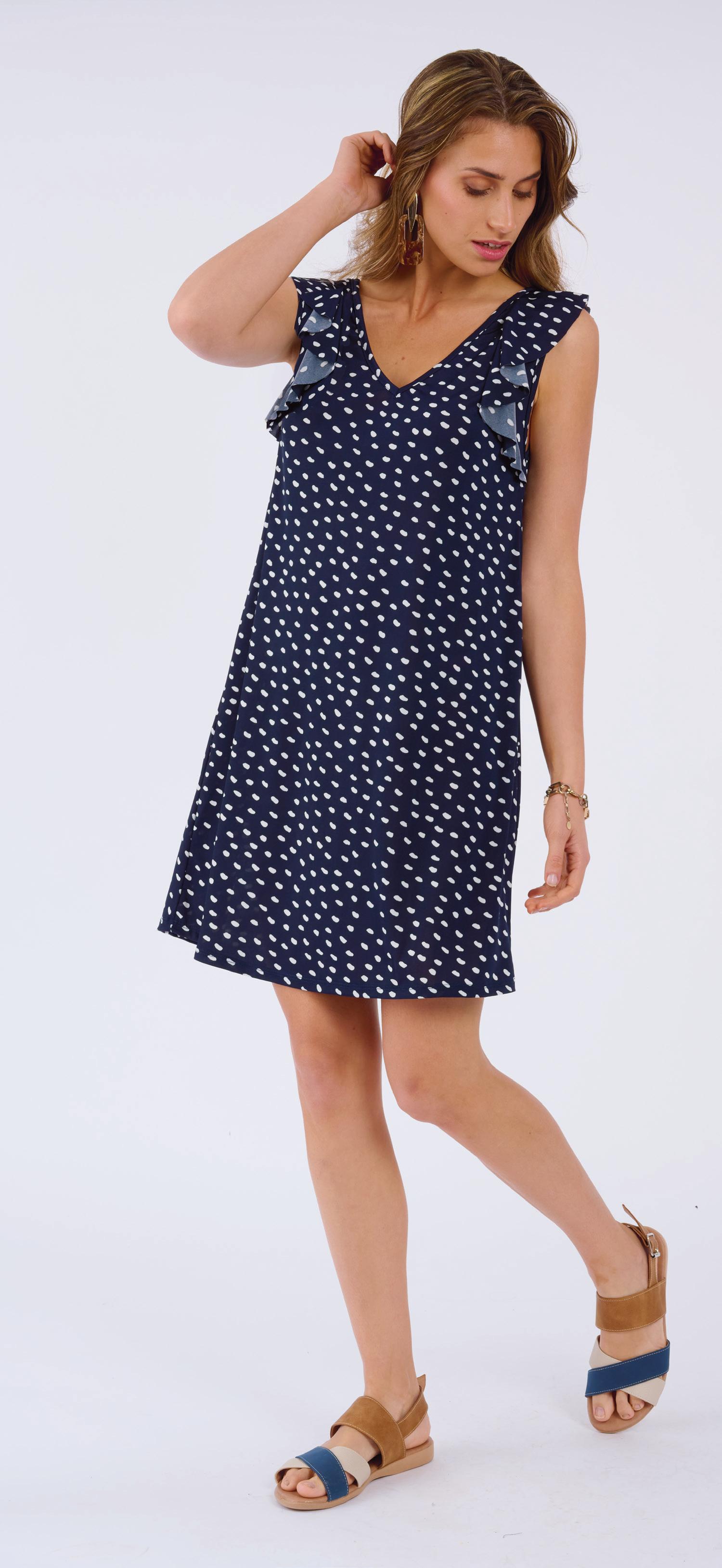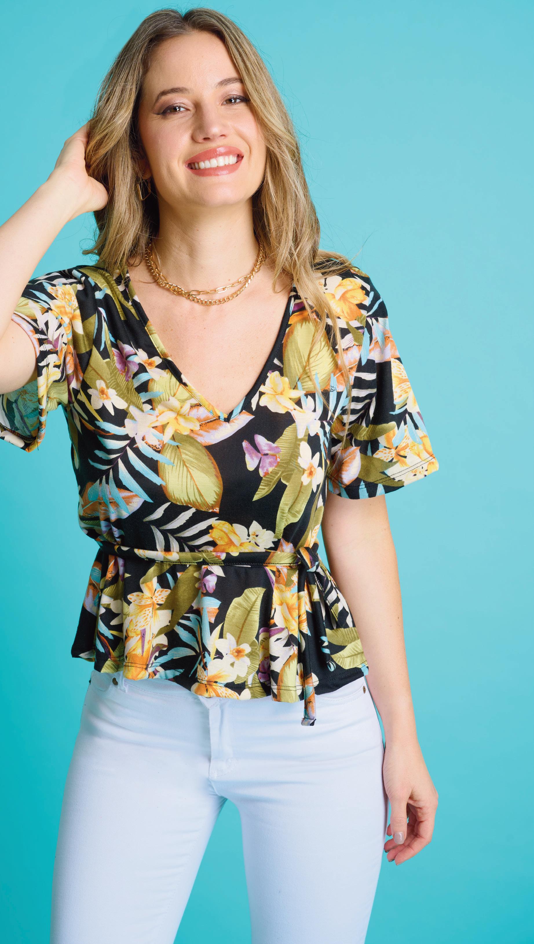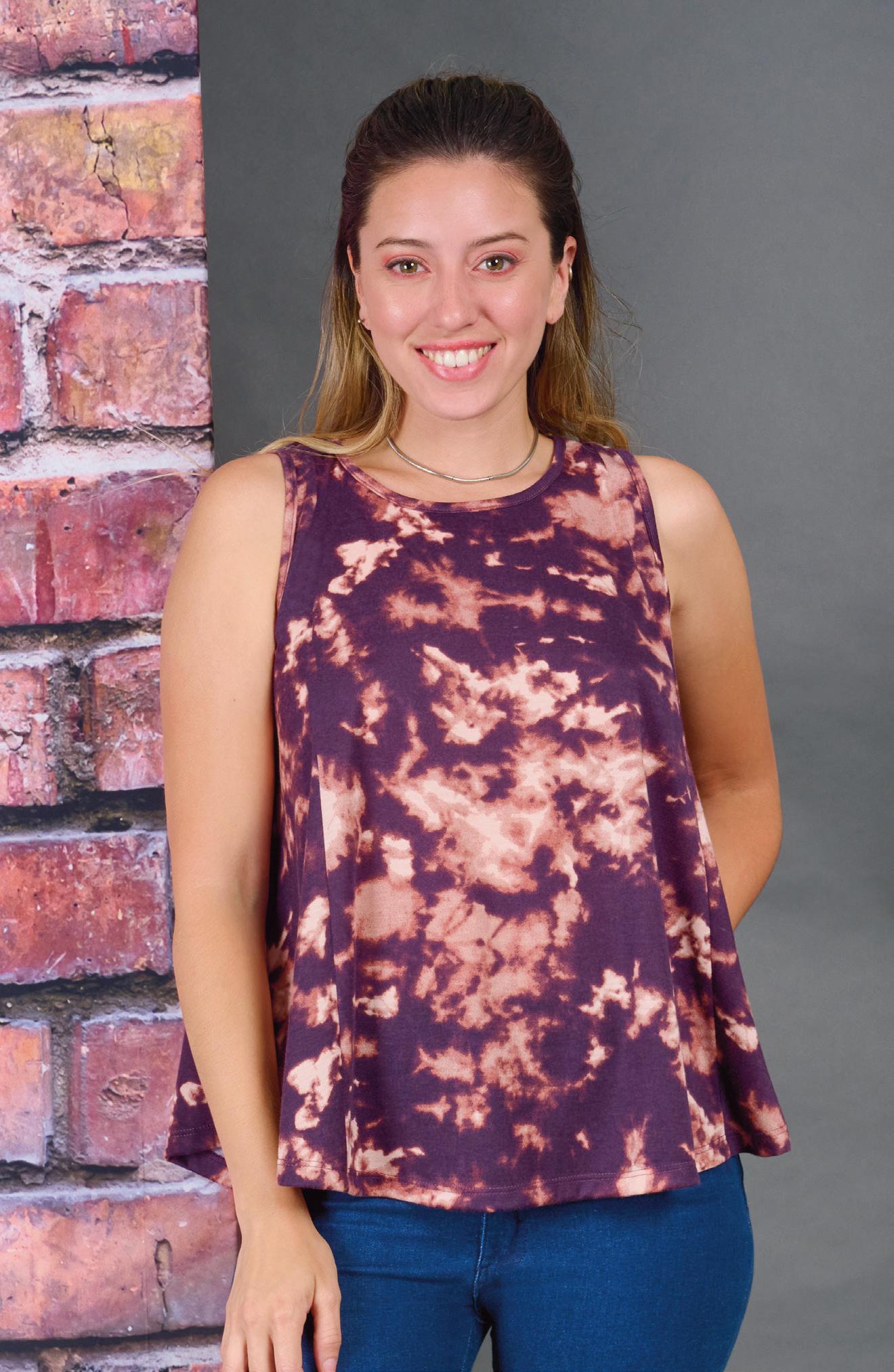 Confeccionada en crepé elastizado texturado estampado. Gota con lazo en escote.