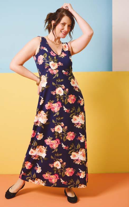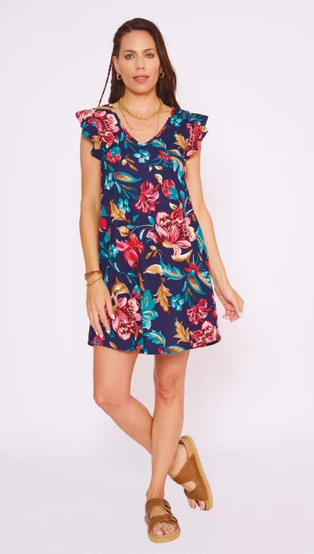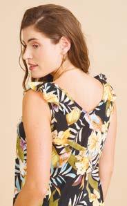 Confeccionada en viscosa estampada con volado y ruedo curvo.