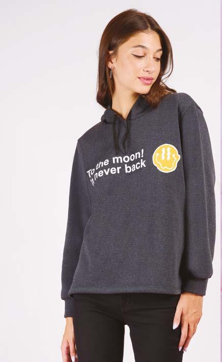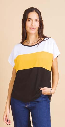 Confeccionada en viscosa gris melange con recortes en viscosa negra y blanca. Con transfer en recorte.