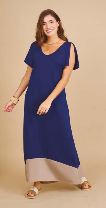 Confeccionada en viscosa azul con recorte en viscosa coral