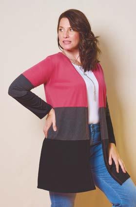 Confeccionada en viscosa color rojo con recortes diagonales en viscosa blanca y gris melange.