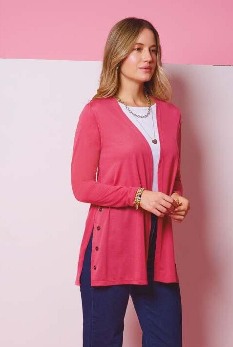 Confeccionada en viscosa rosa con recortes en laterales y breteles en crepé elastizado texturado negro.