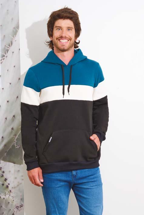 Confeccionada en viscosa petróleo con recortes en azul y gris melange.
