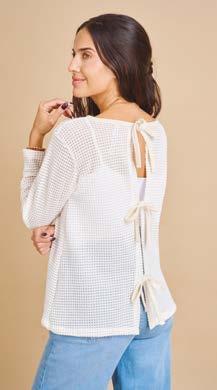 Confeccionado en tejido desagujado. Detalle de abertura y lazos en espalda.