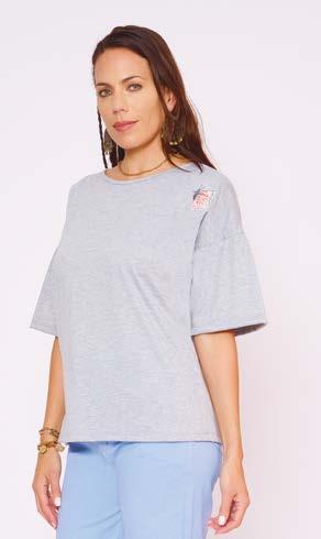 Confeccionada en viscosa gris topo melange. Mangas y escote en viscosa obispo. Estampa localizada en delantero.
