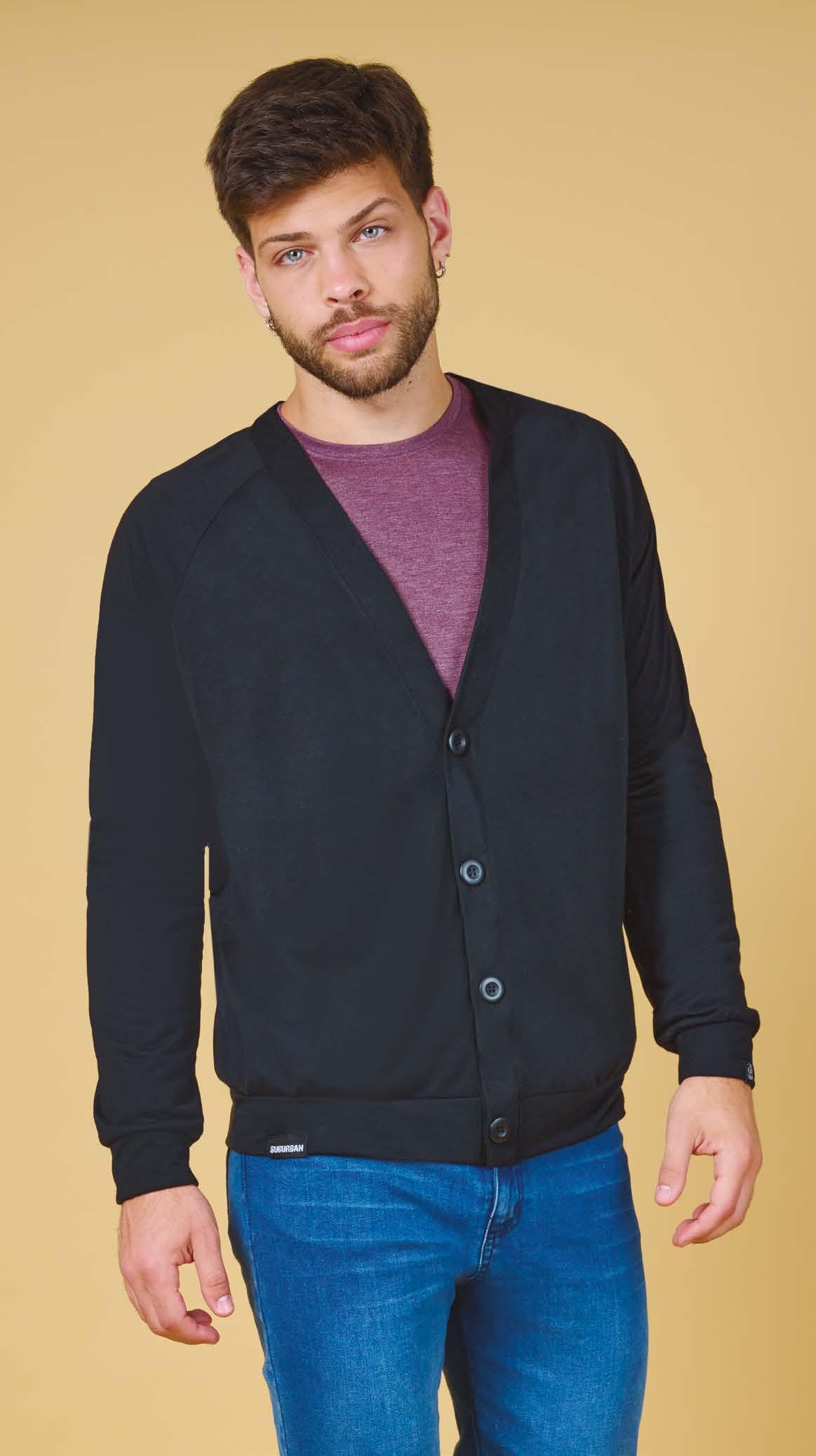 Confeccionado en frisa tejida jeaspeada. Detalle de abotonadura y bolsillos en delantero.