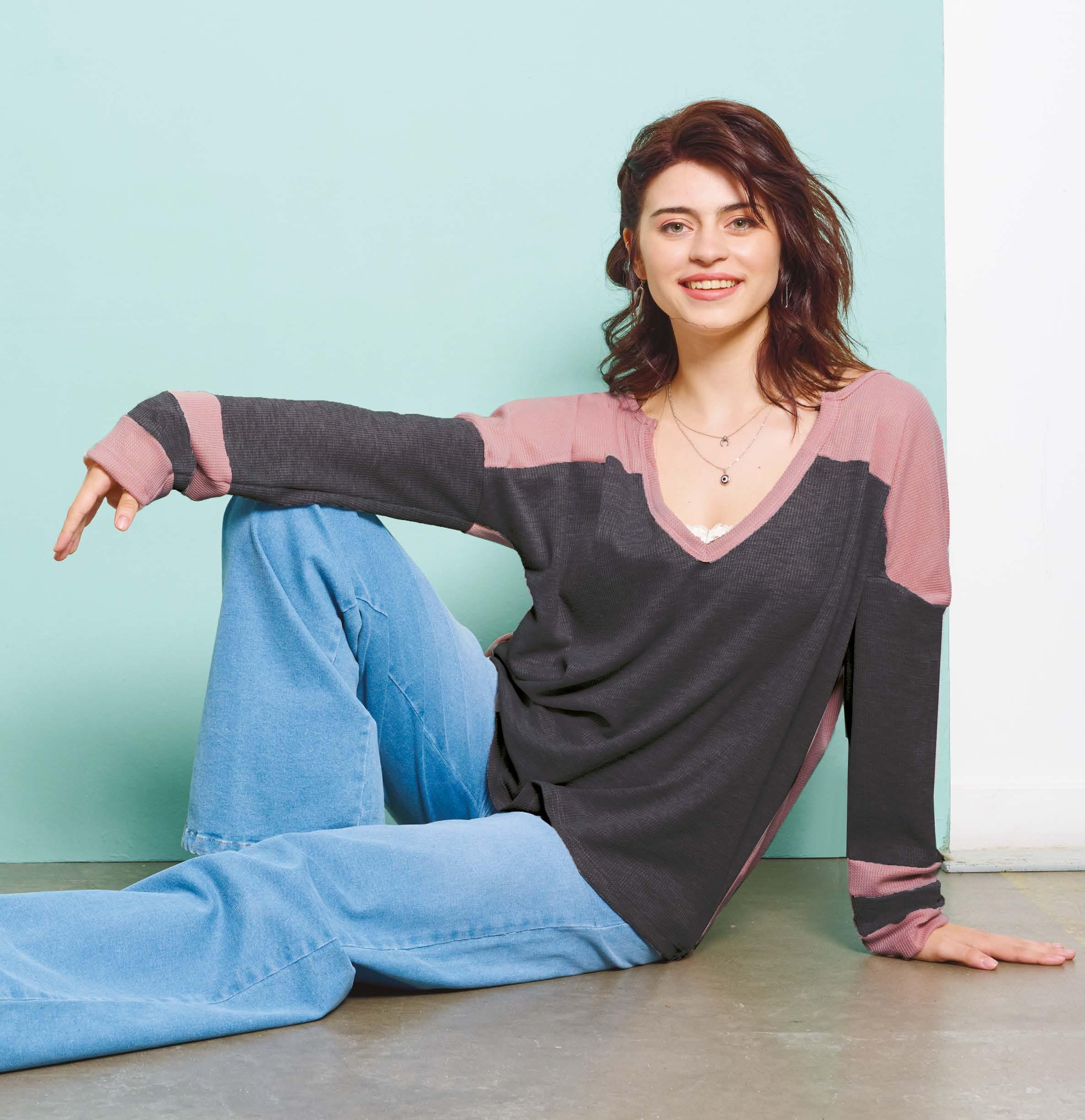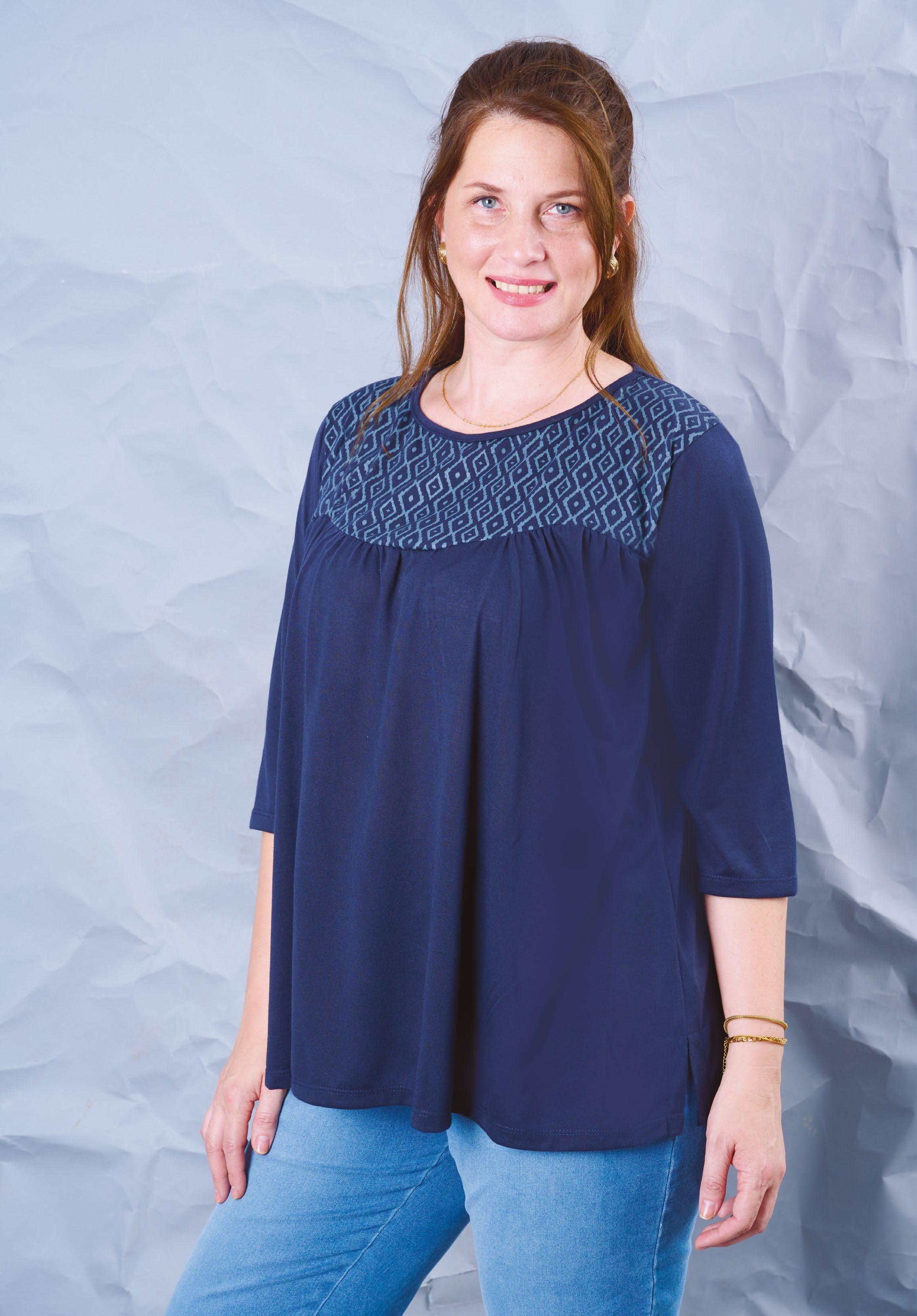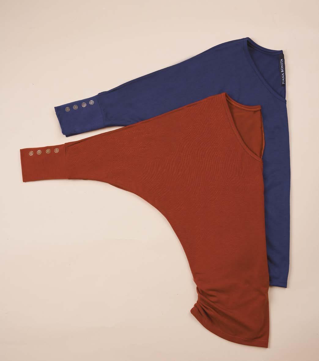 30% LLEVÁ DOS PAGÁ UNO IGUALES O DIFERENTES REMERA ART. D118-33 Confeccionada en viscosa con recortes en viscosa melange en mangas. Línea clásica. Color: Petróleo (48) Talles: 1 - 2 - 3 - 4 PRECIO REGULAR $8141 $5699 ¡Ahorrá $2442! 215