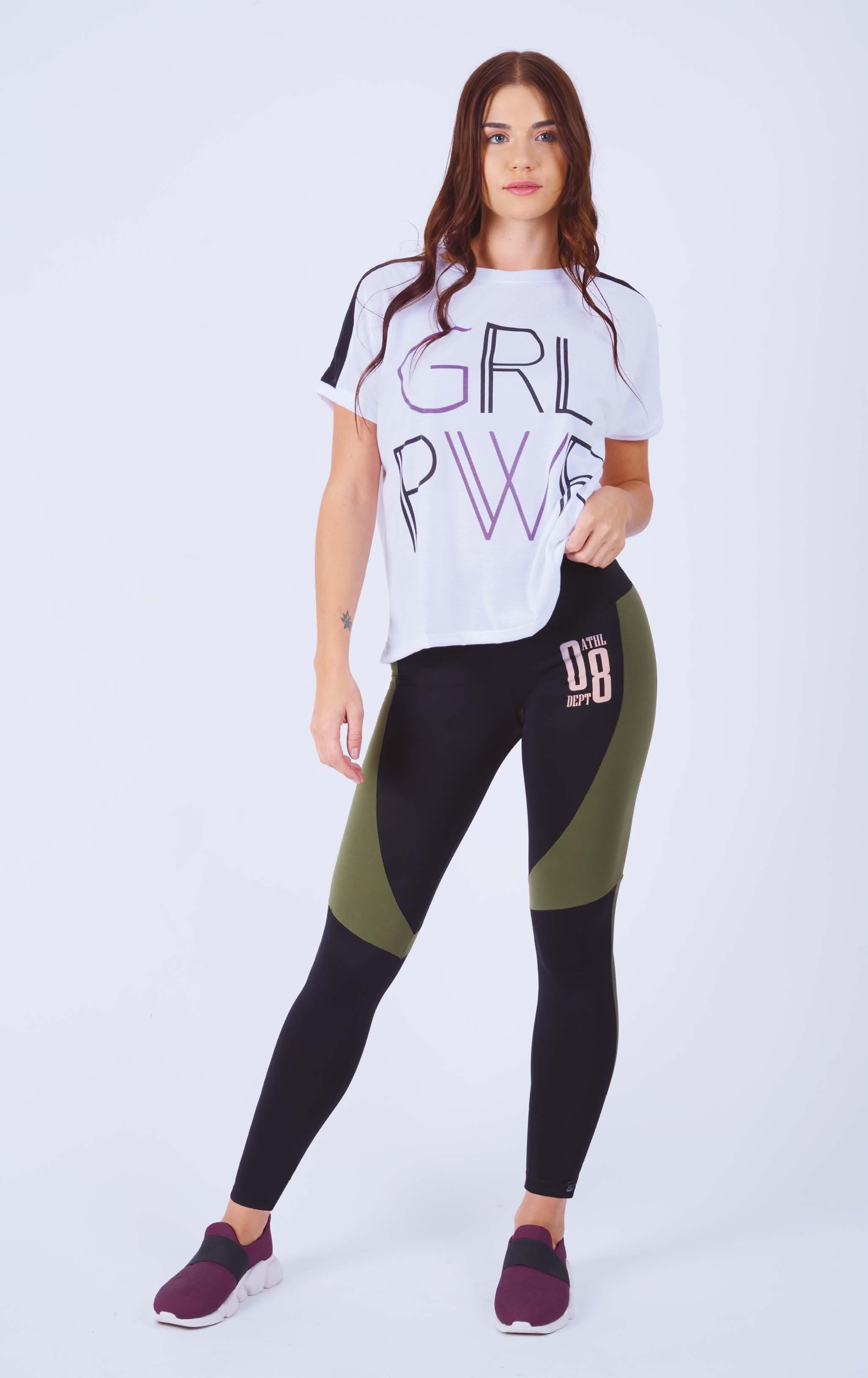 Confeccionada en viscosa melange verde con recortes en viscosa negra y gris melange.