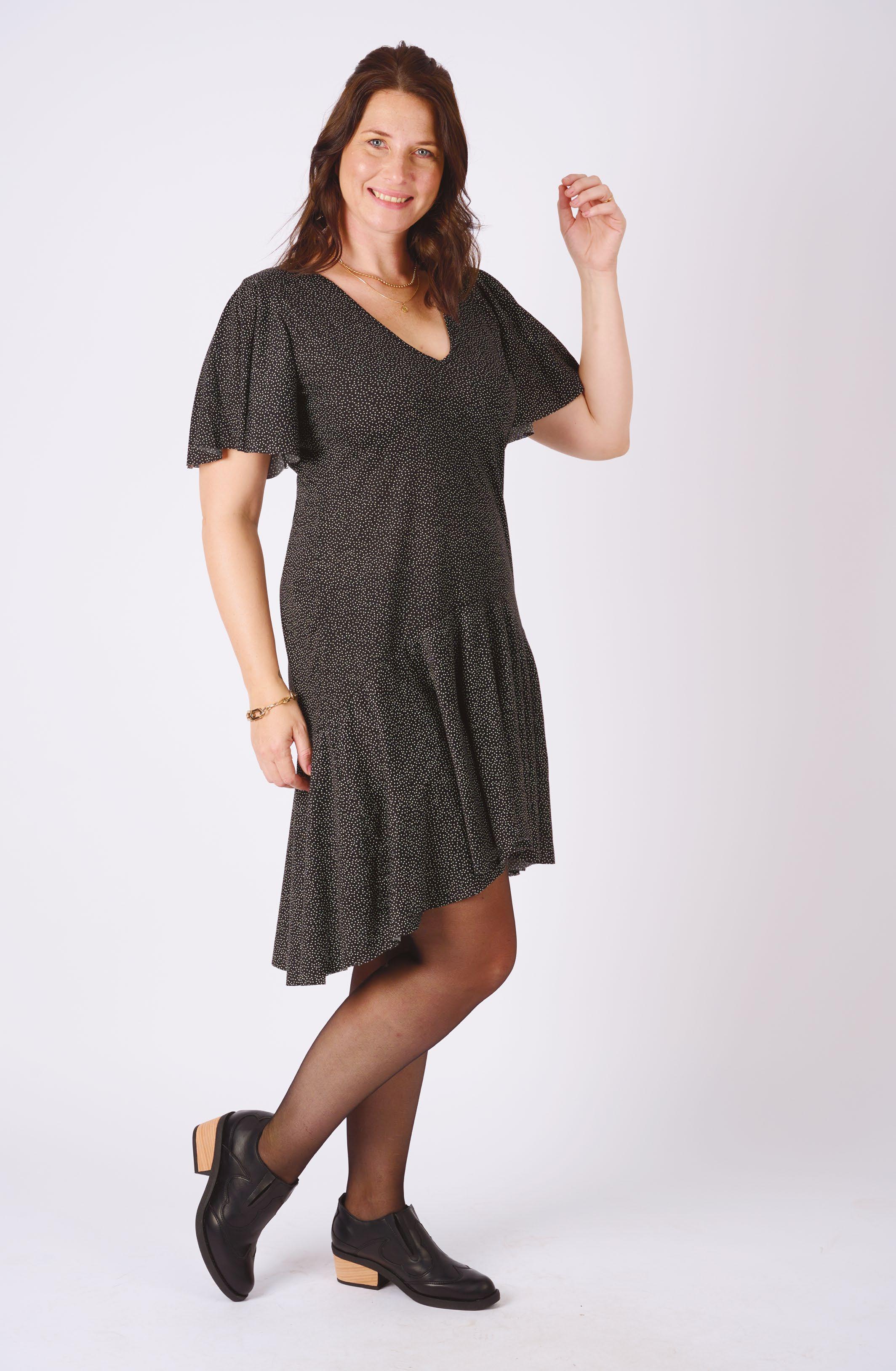 Confeccionada en viscosa. Detalle de recortes en ecocuero en laterales.