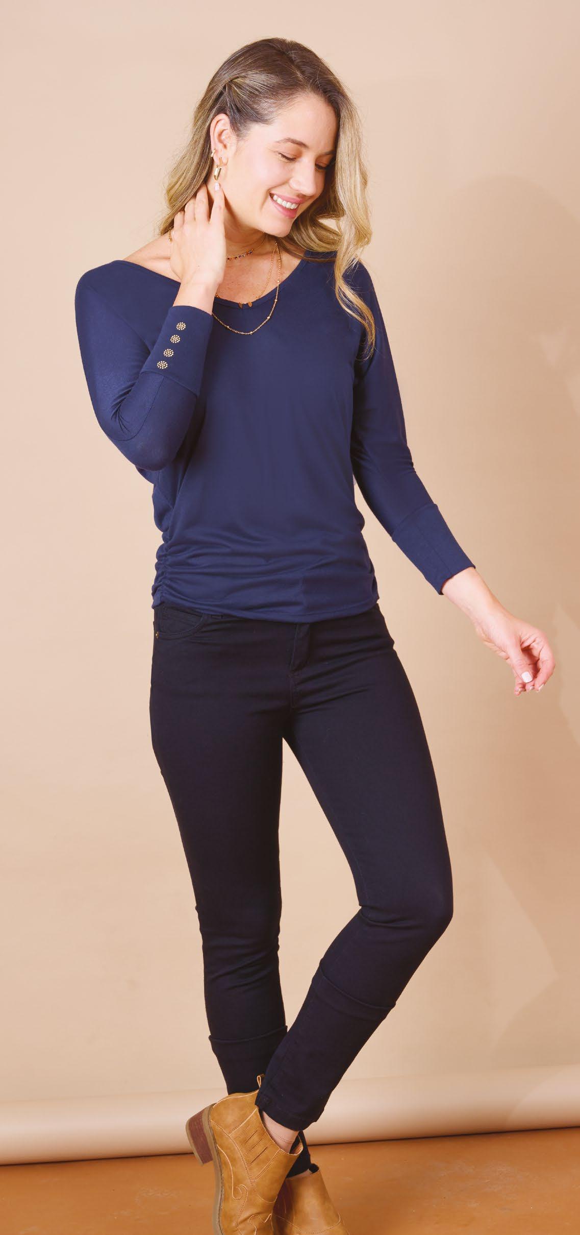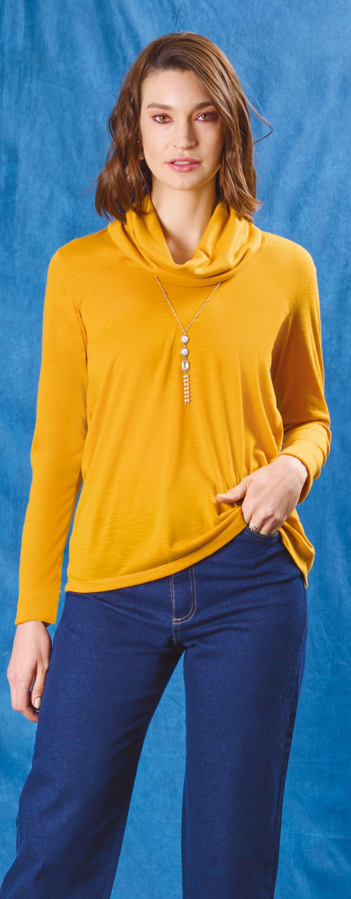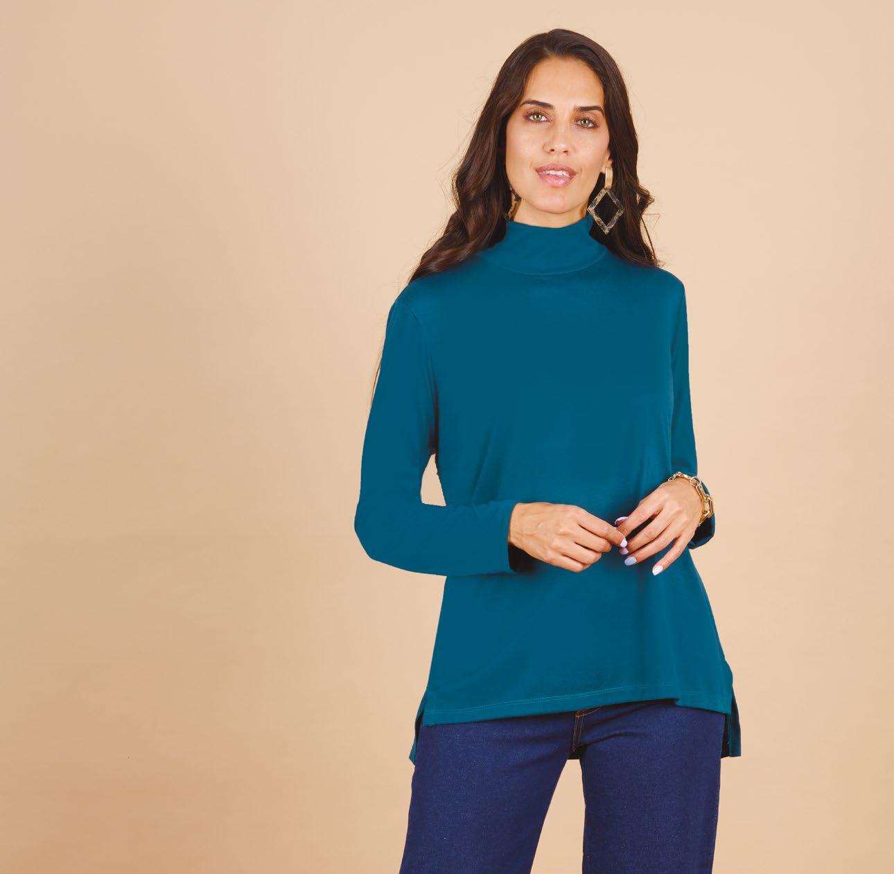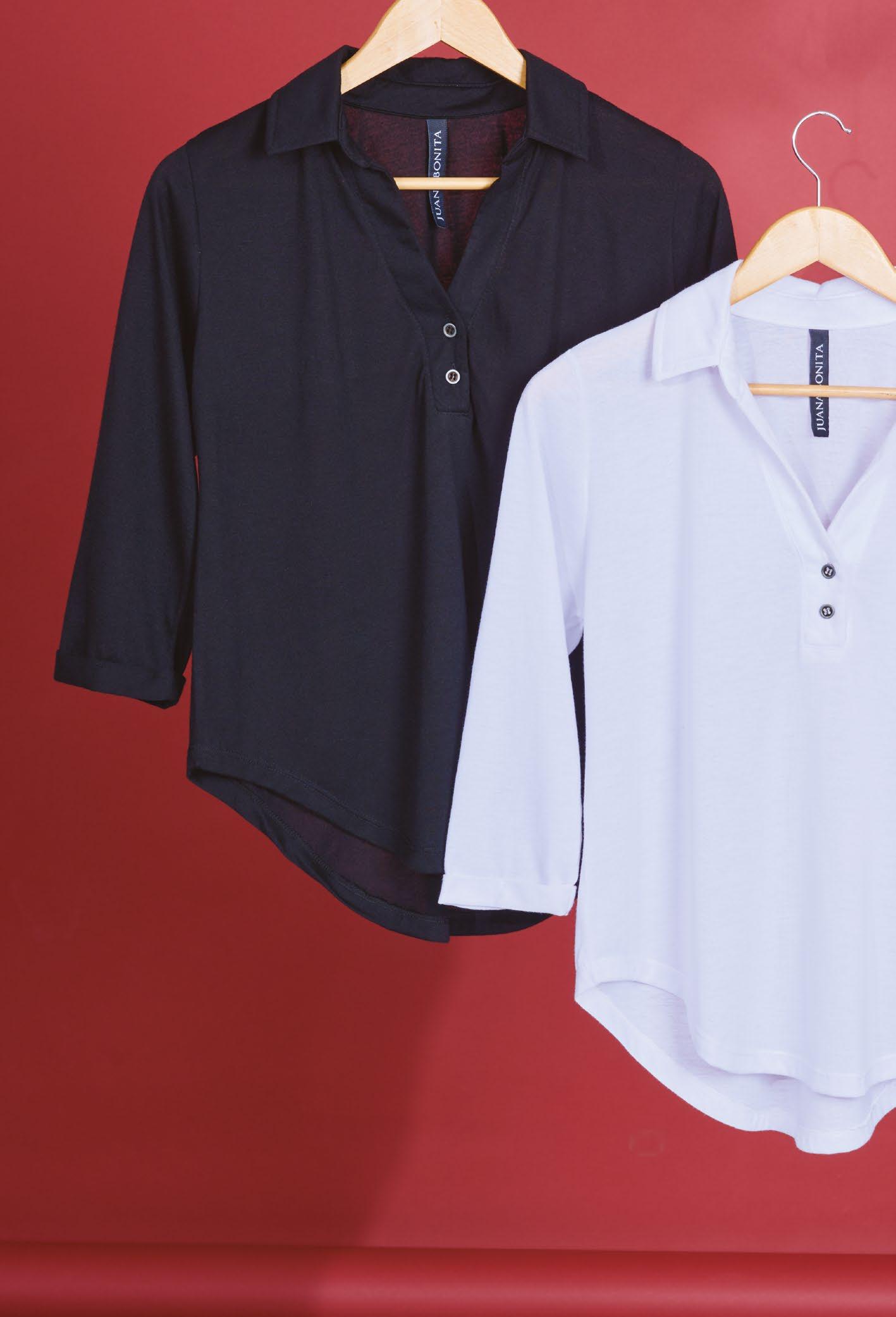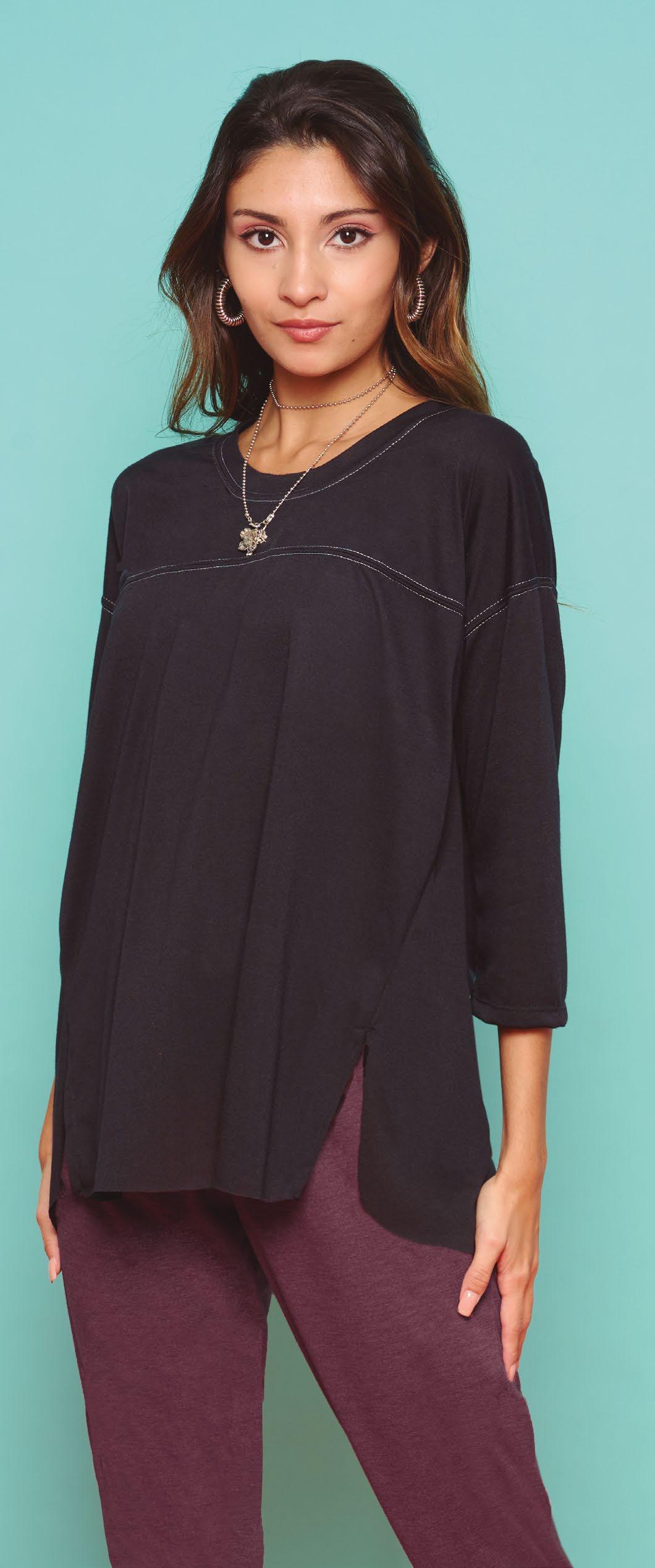 Confeccionada en viscosa. Cuello amplio caido. Línea clásica.