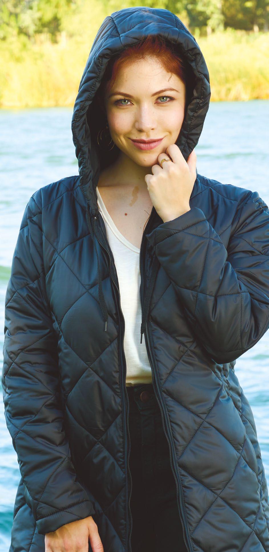 Confeccionada en matelasse rombo. Con capucha y cordón. Línea clásica.