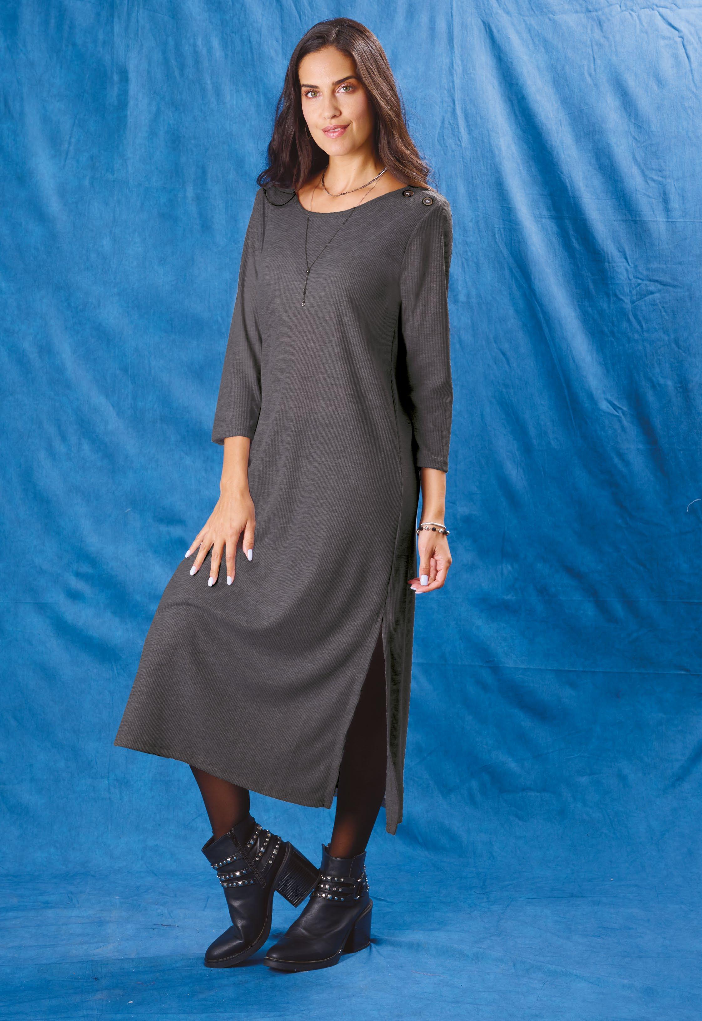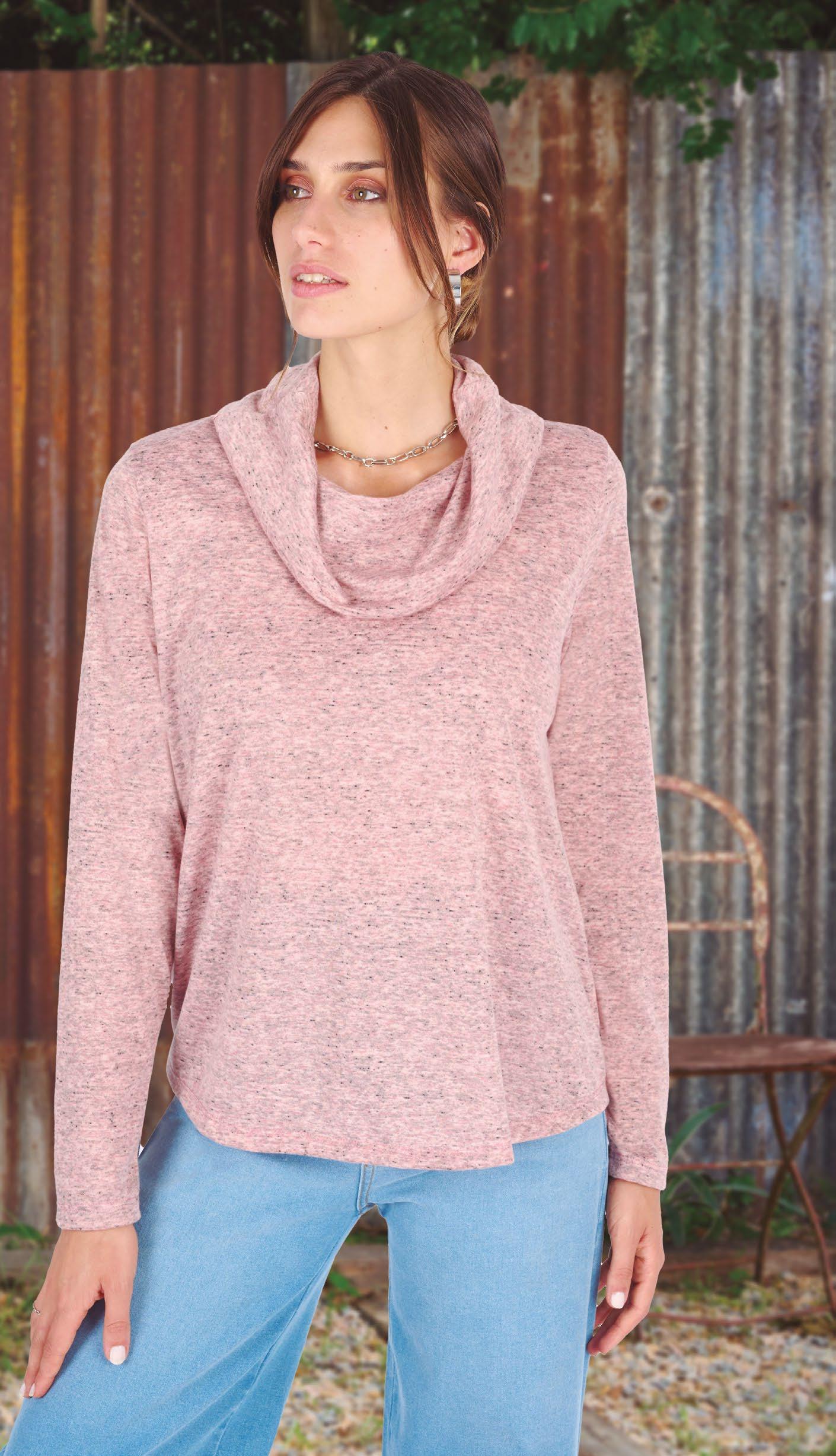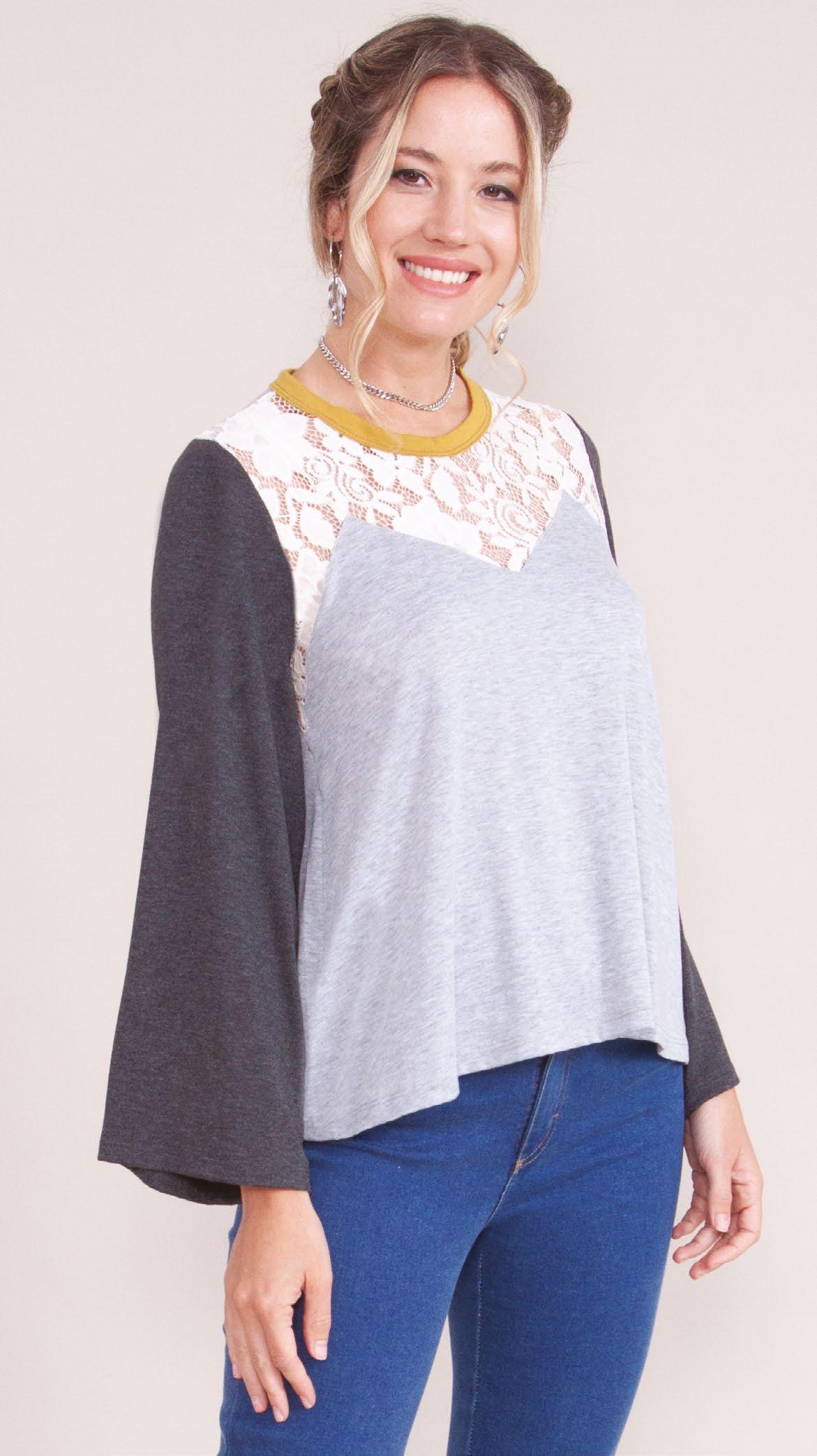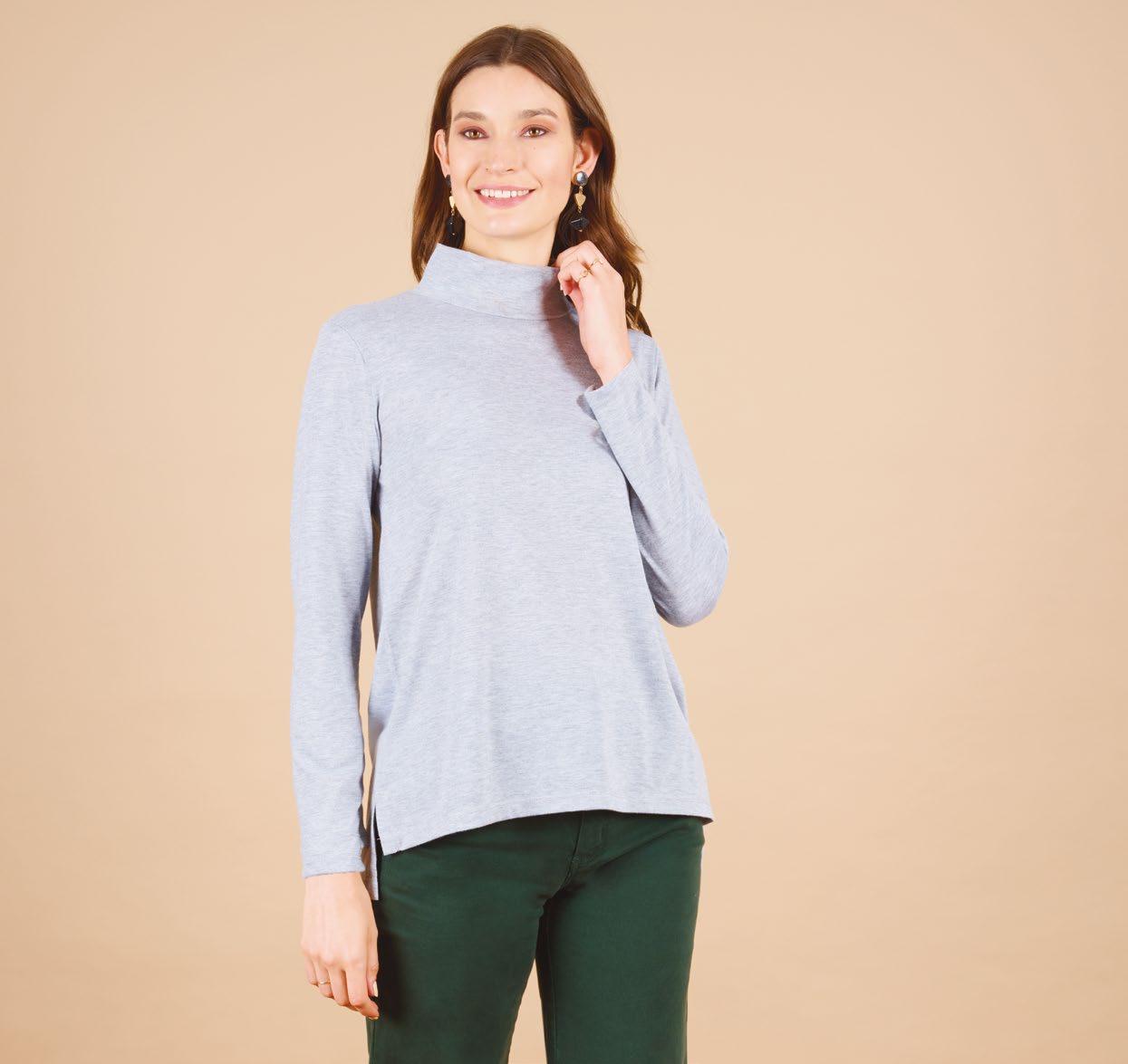 Confeccionada en viscosa gris melange. Cuello y mangas ranglan en viscosa negra.