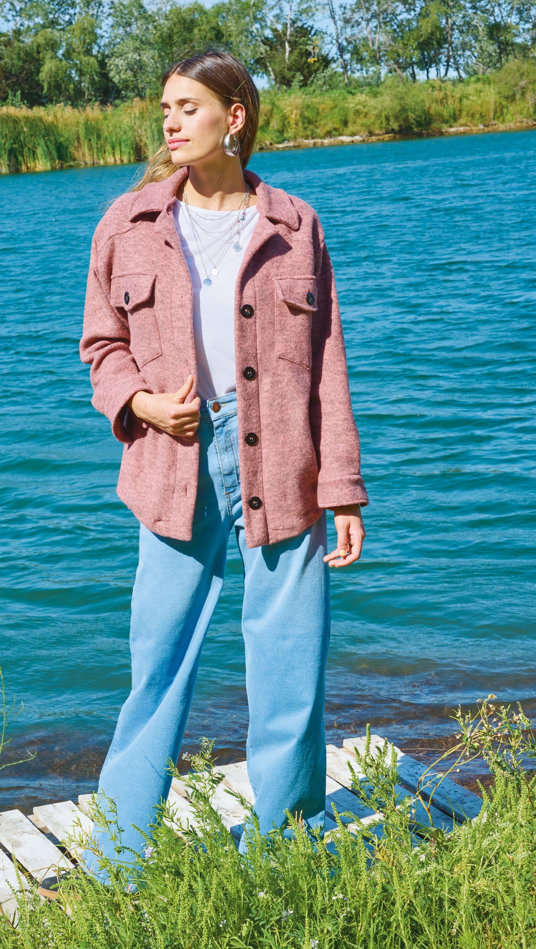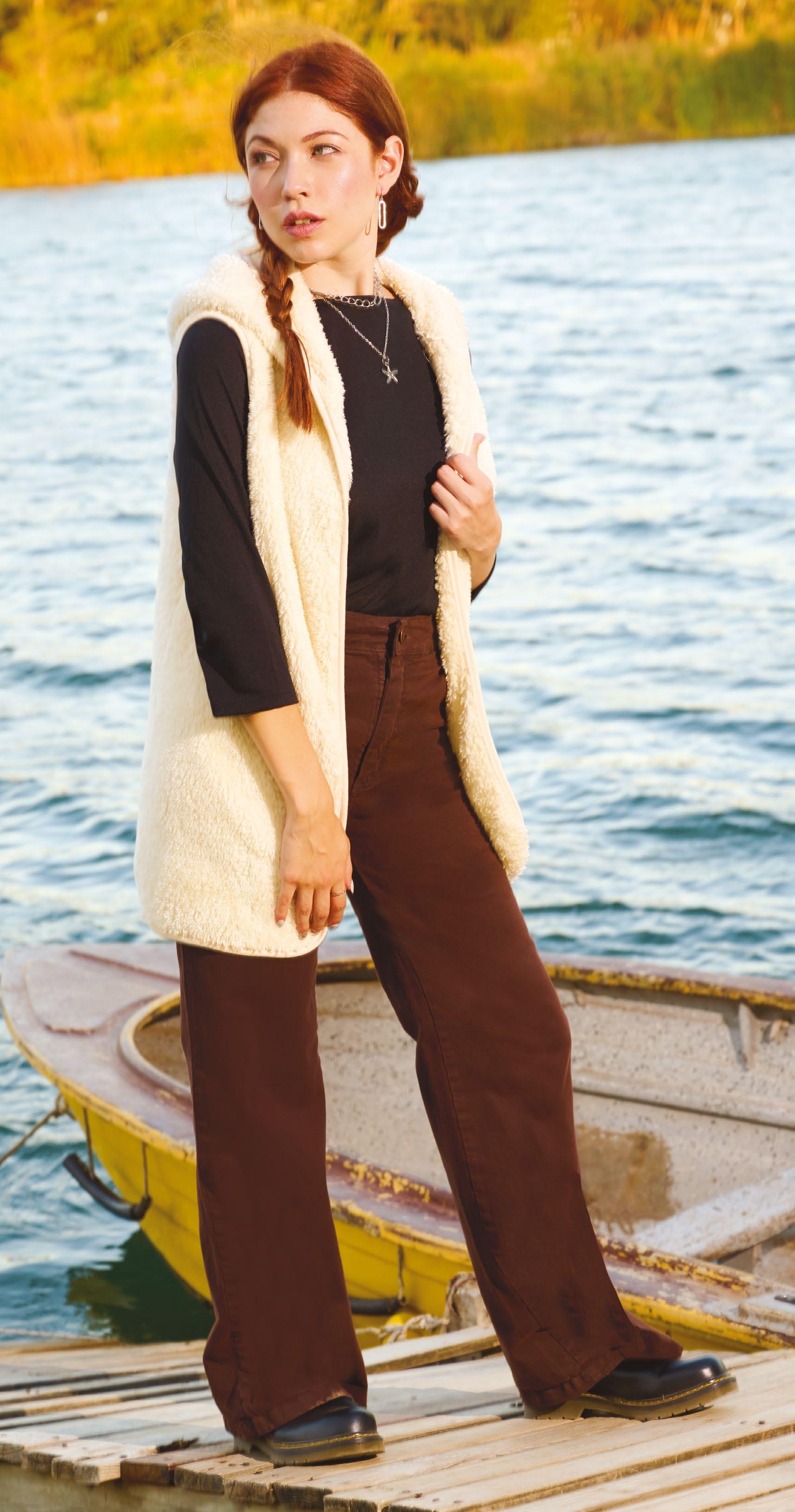 Confeccionada en lanilla. Detalle de bolsillos en ecocuero.