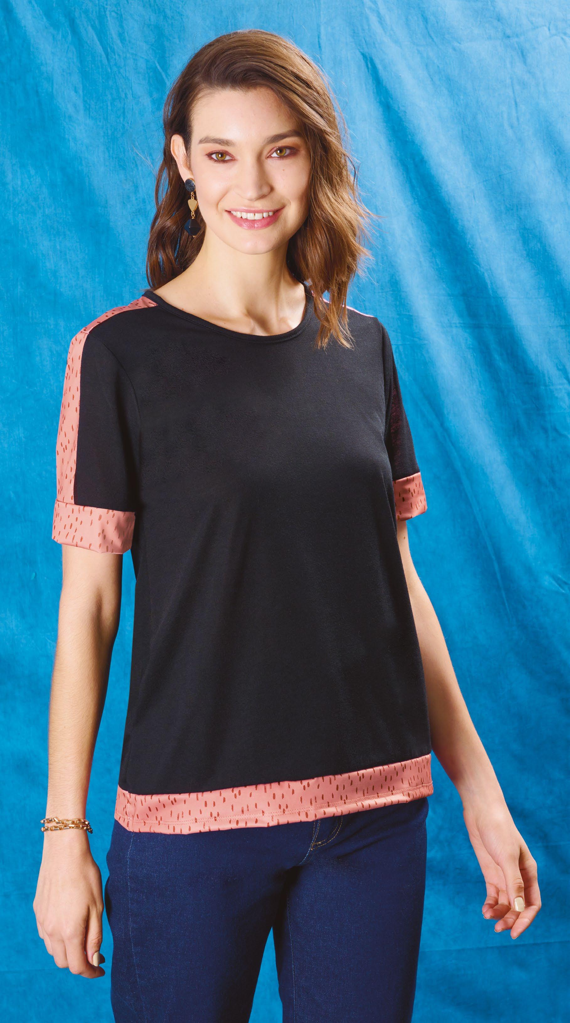 Confeccionada en viscosa negra. Detalle de cuello cruzado en viscosa gris topo melange en interior.