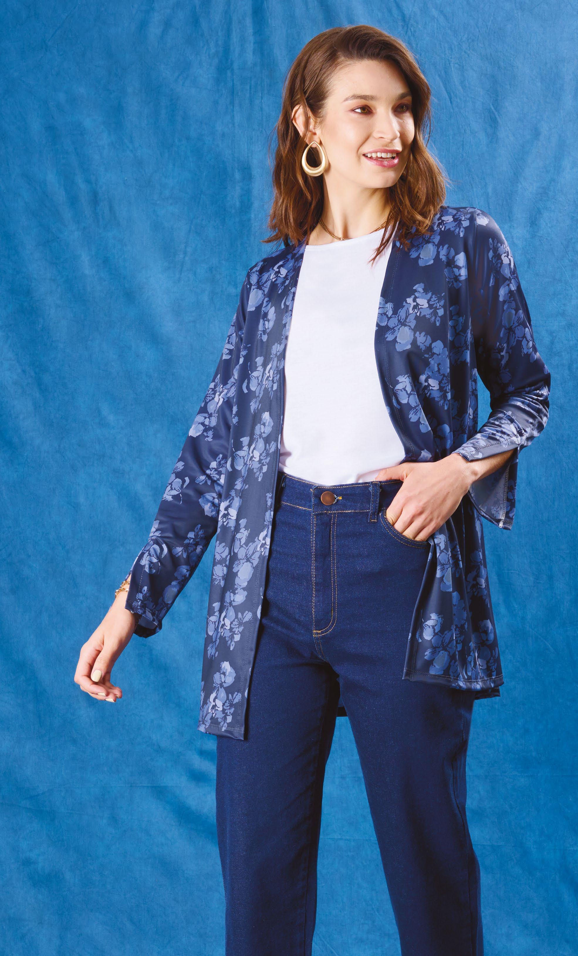 Confeccionada en seda fría estampada. Mangas amplias con cruce.