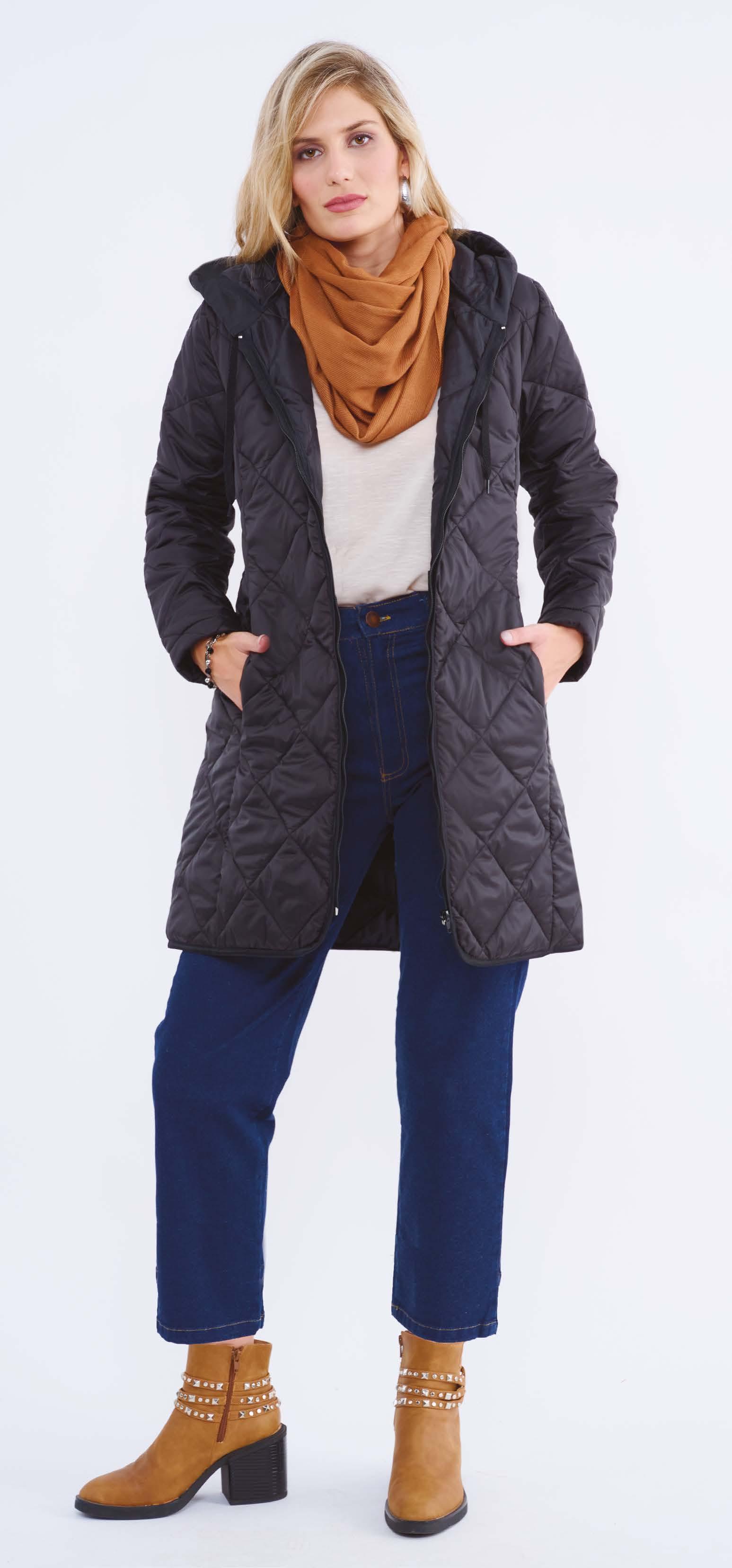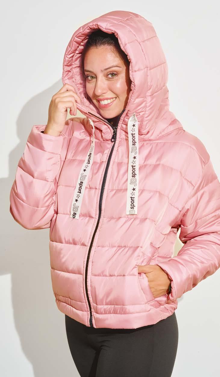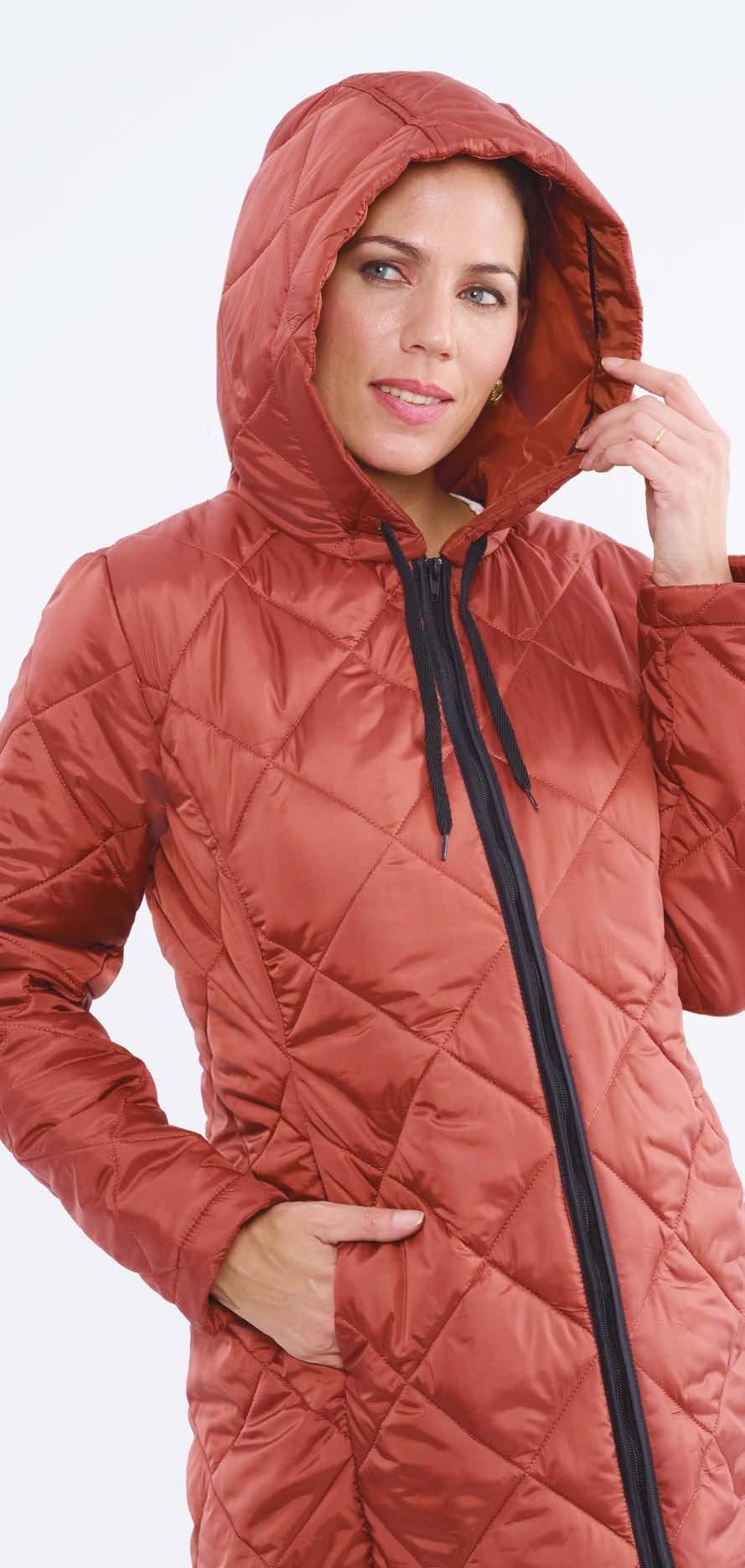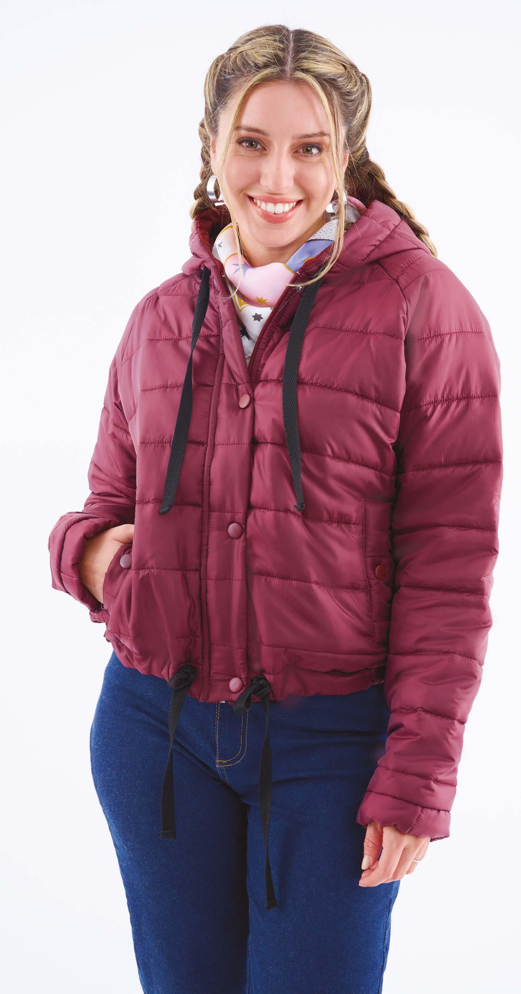 Confeccionada en matelasse rombo. Con capucha y cordón.
