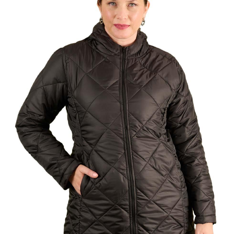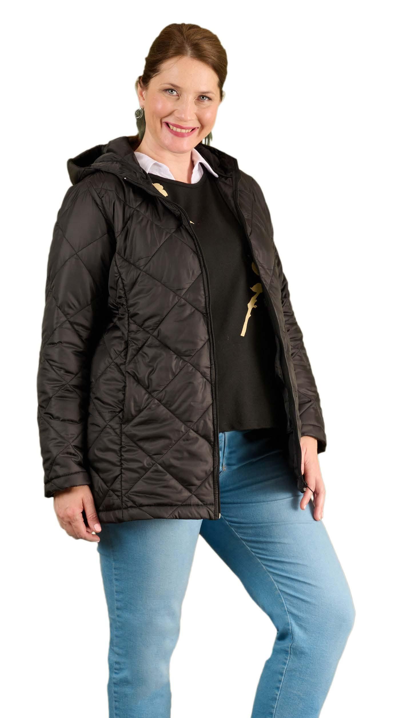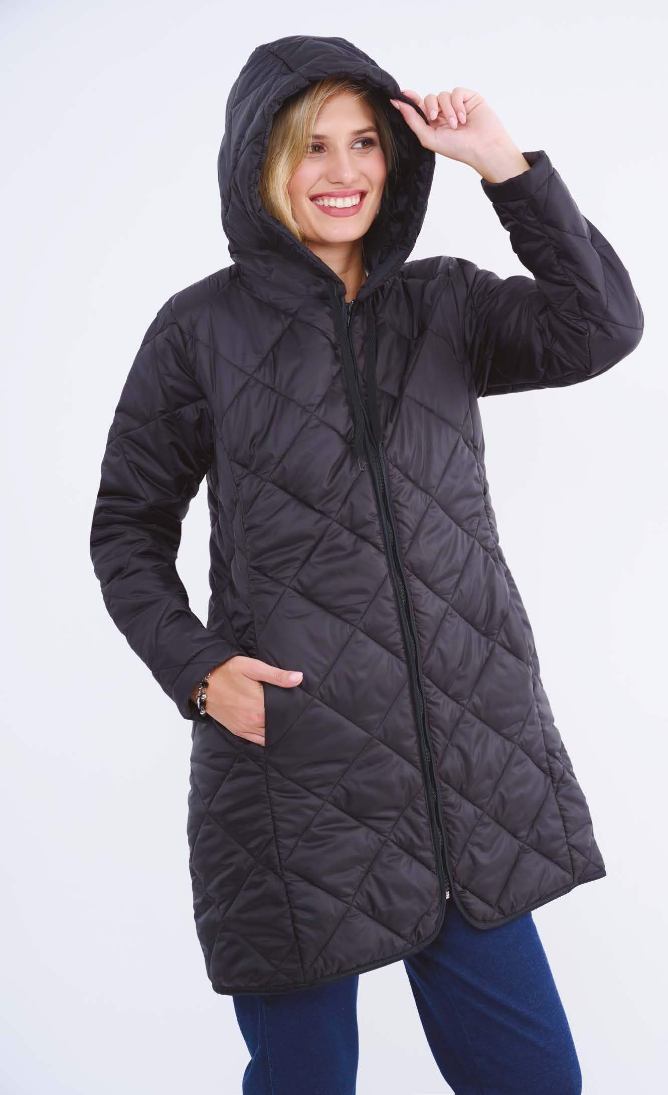 Confeccionada en matelasse rombo. Con capucha y cordón.