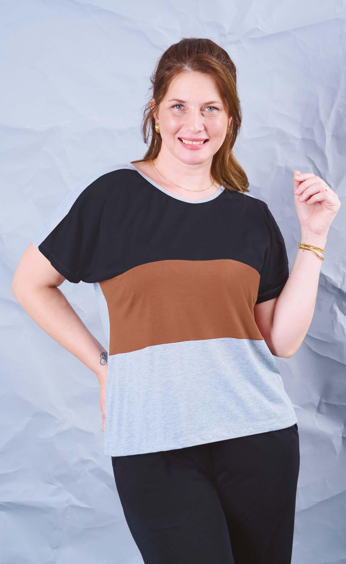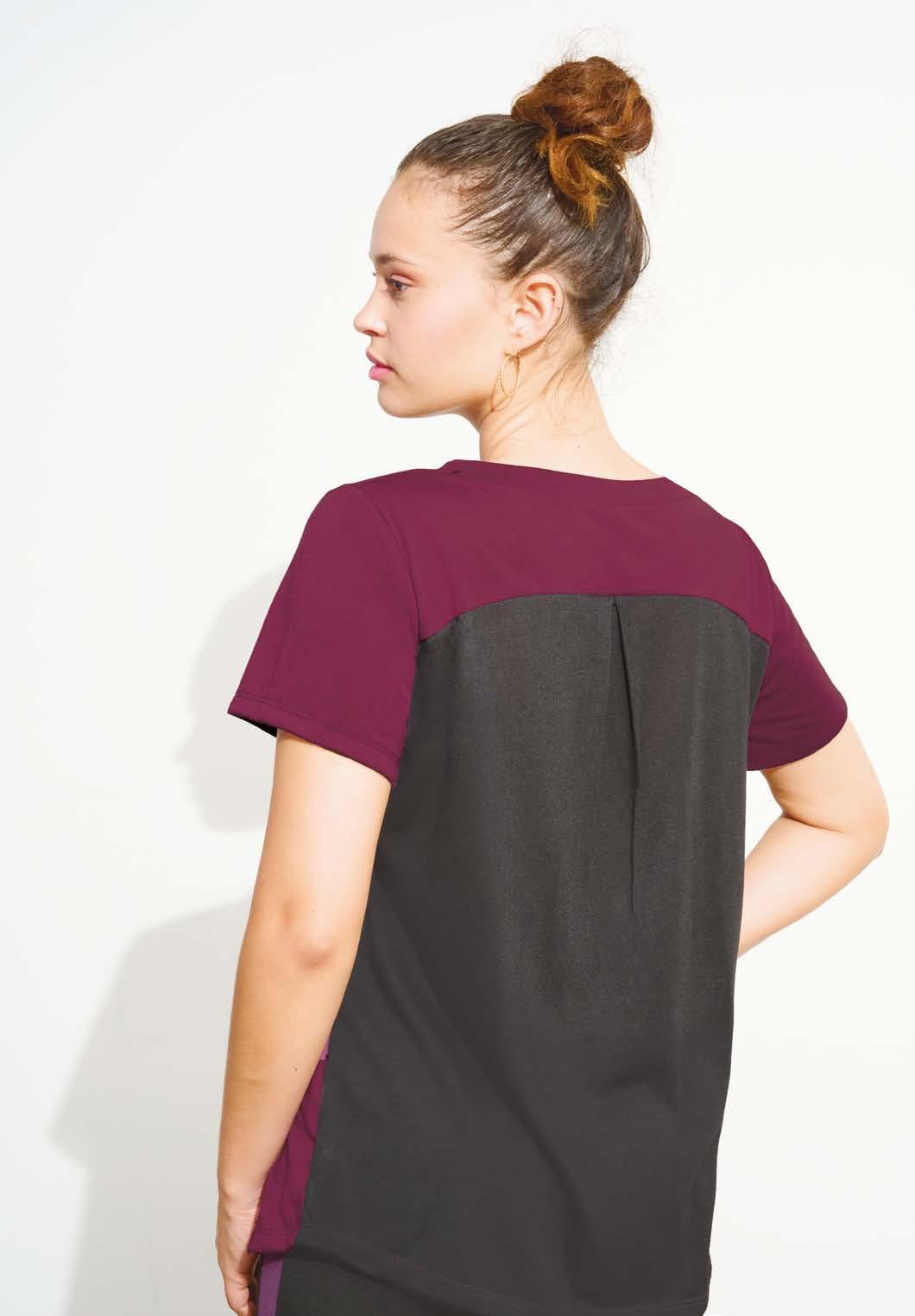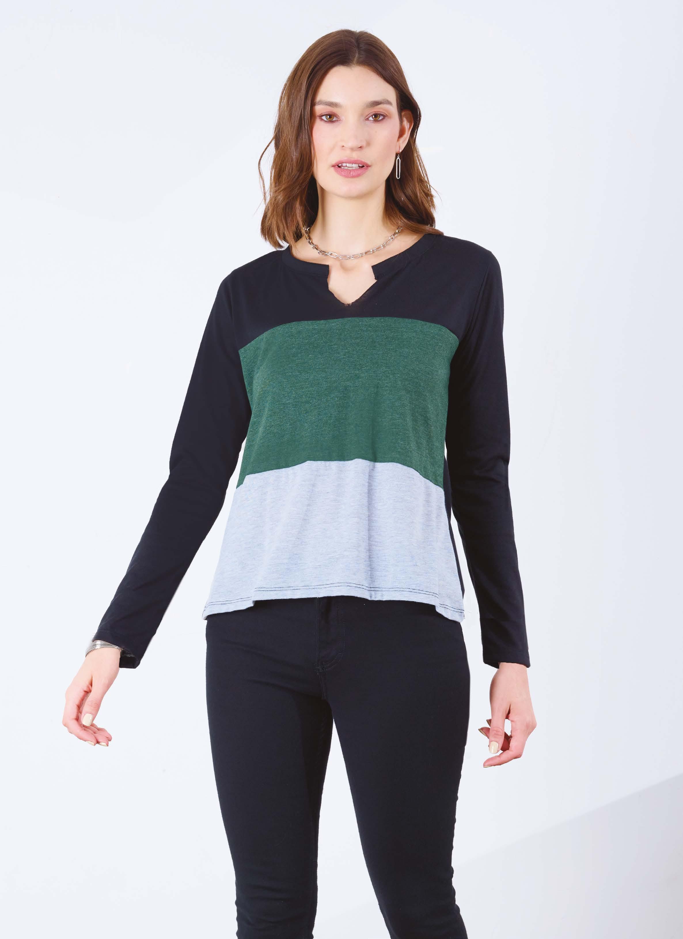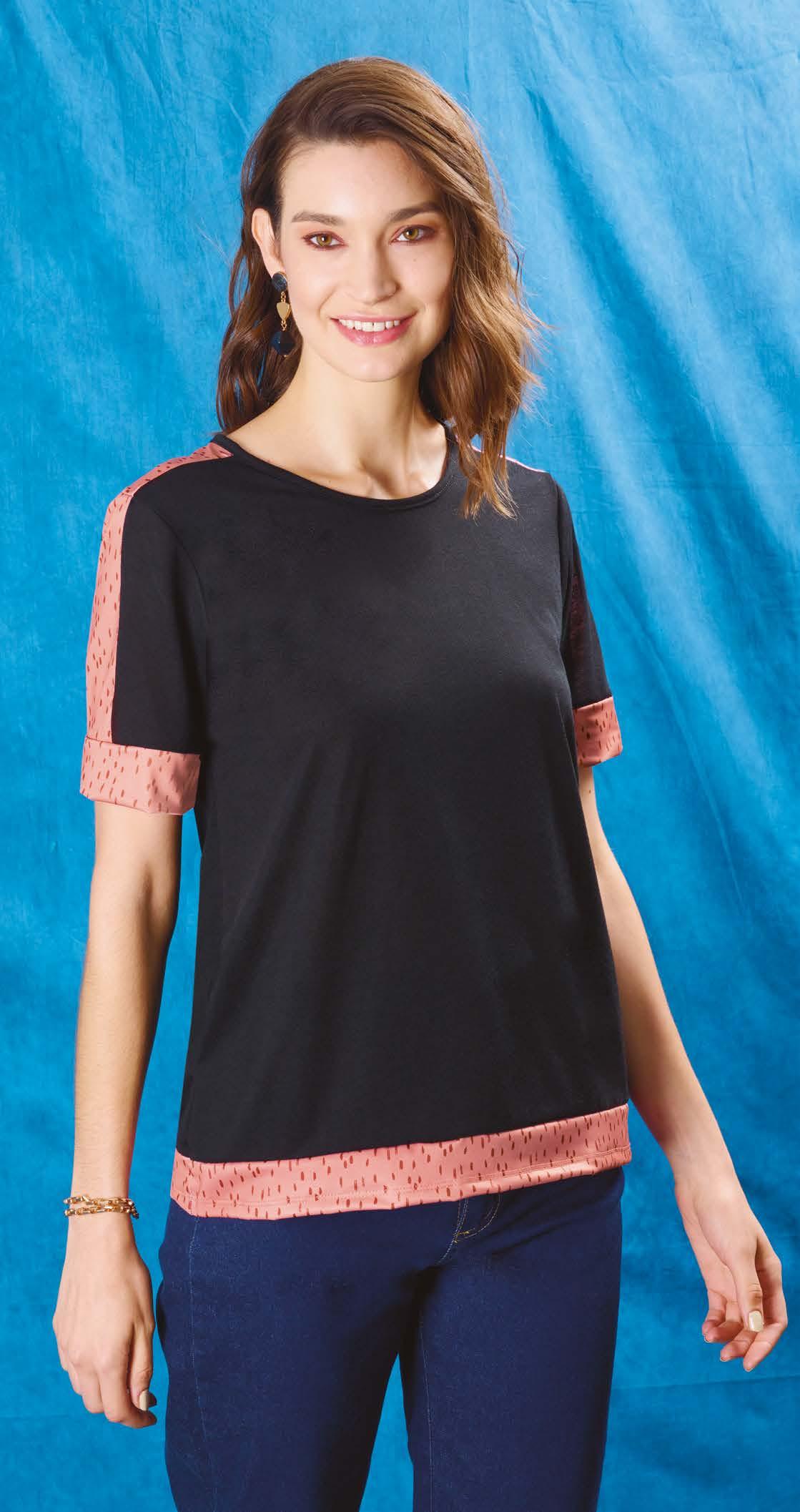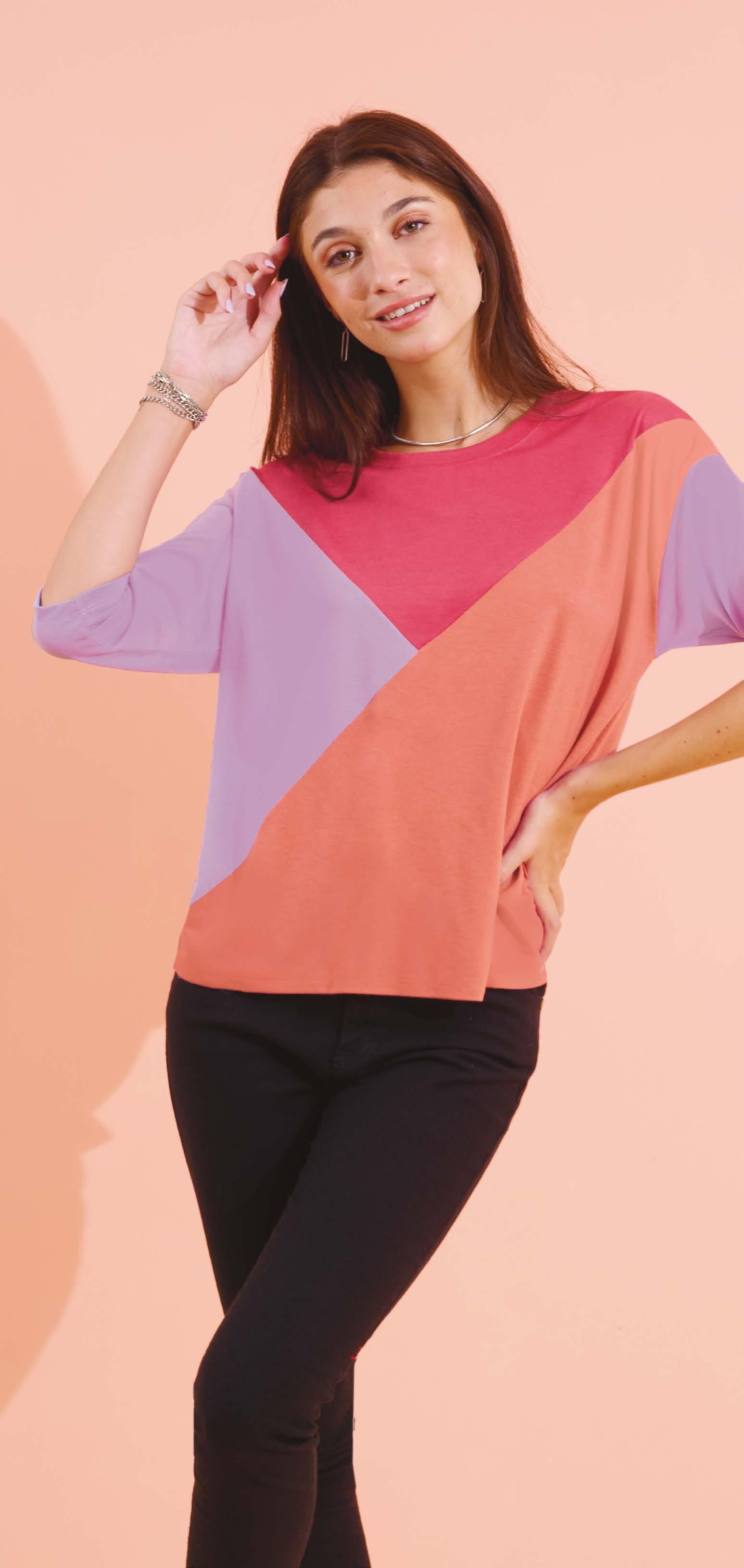 REMERA ART. D118-33 Confeccionada en viscosa con recortes en viscosa melange en mangas. Línea