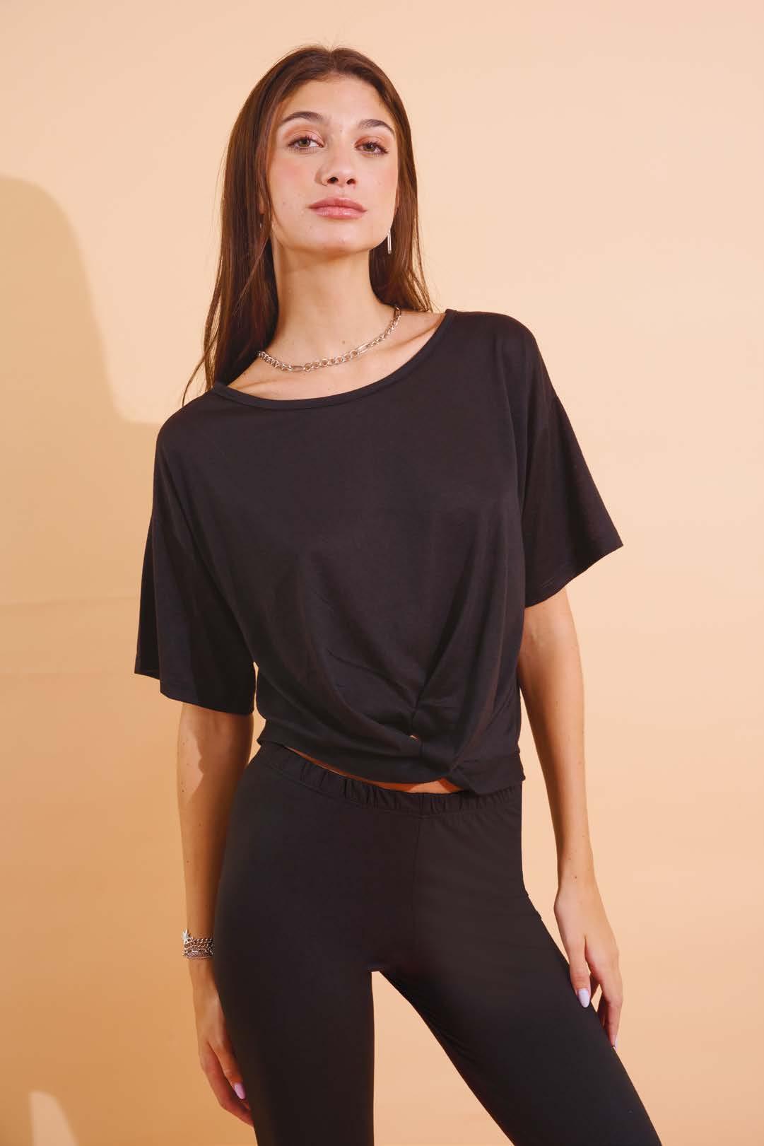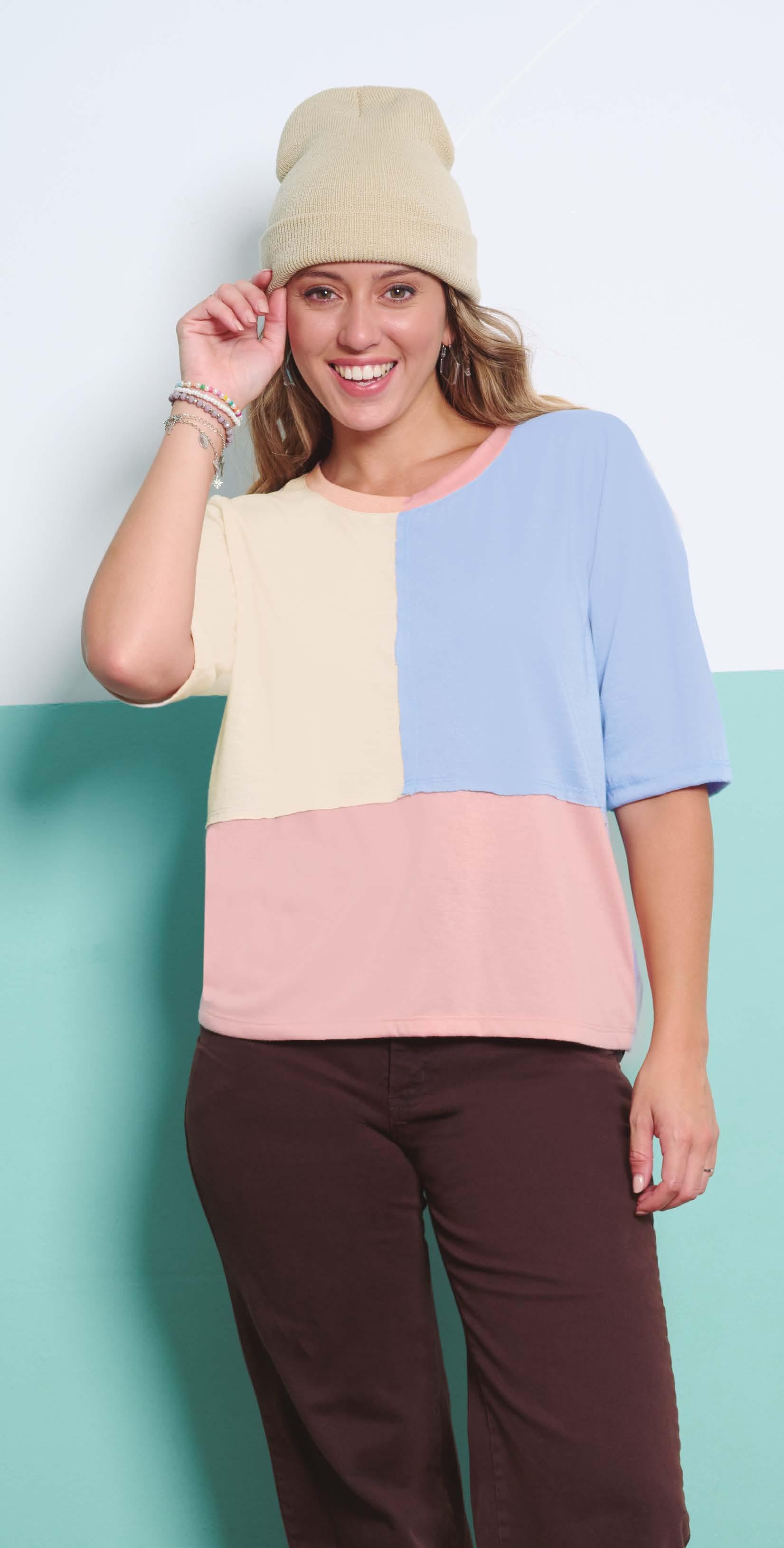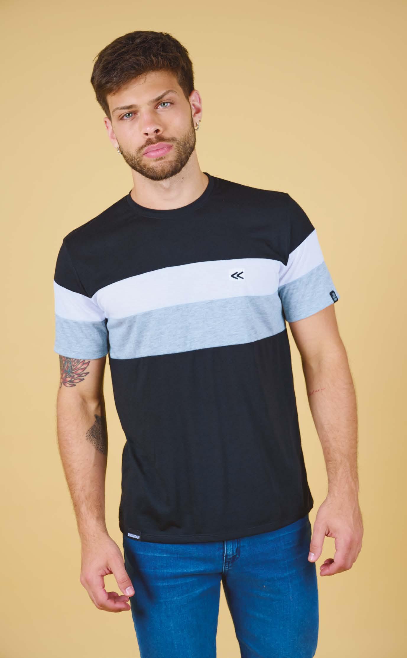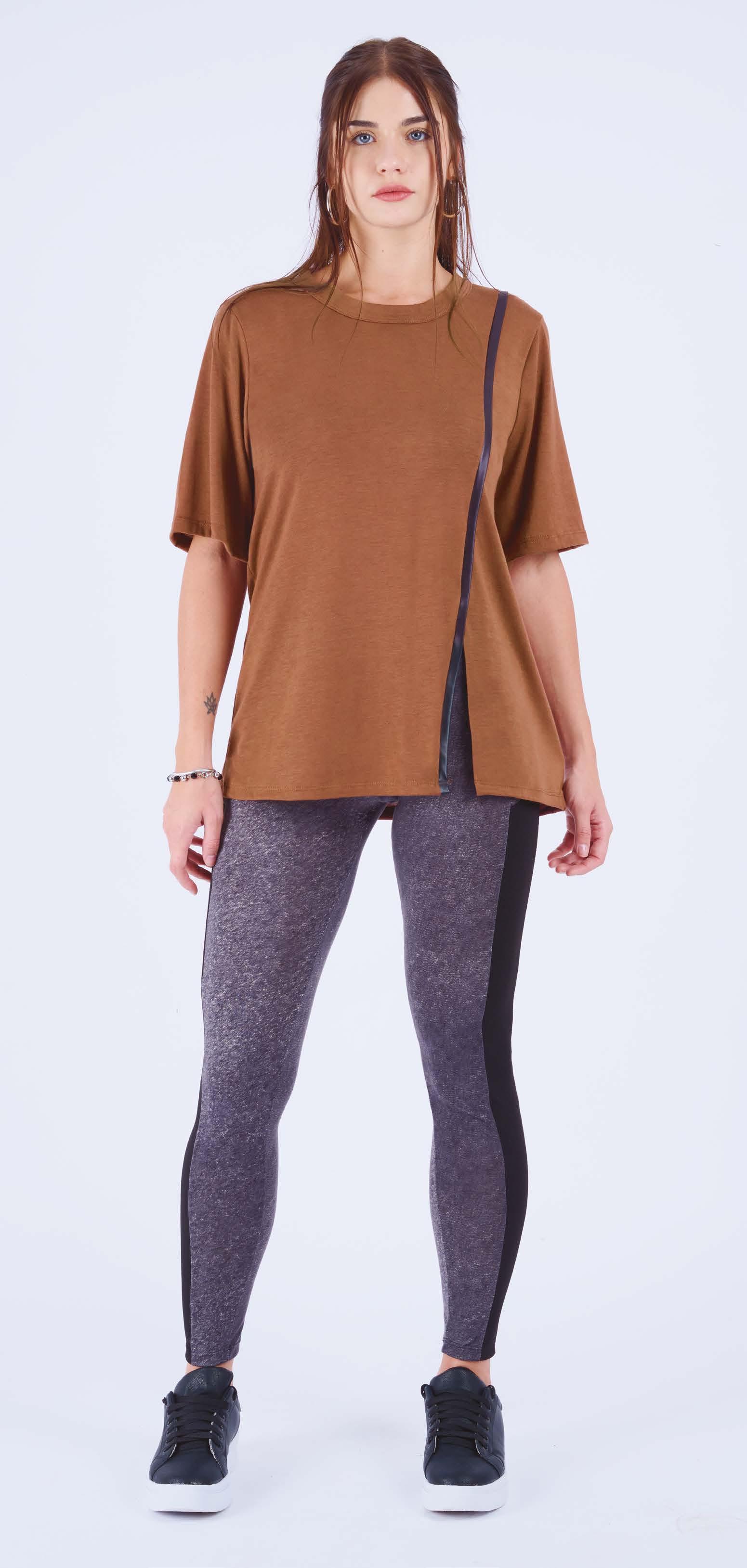 REMERA ART. D118-33 Confeccionada en viscosa con recortes en viscosa melange en mangas. Línea