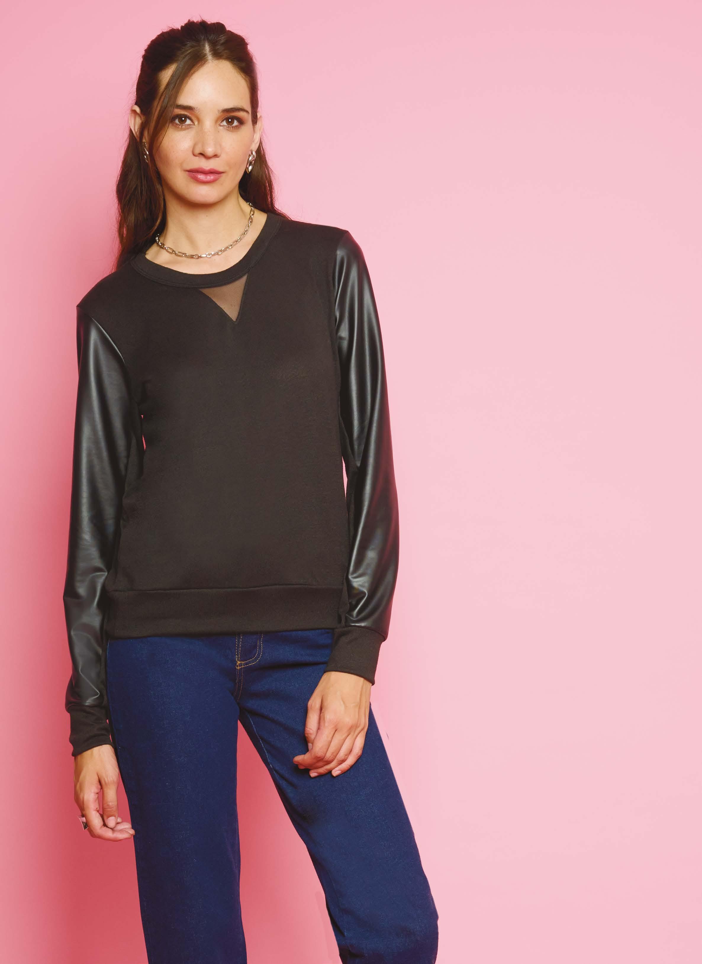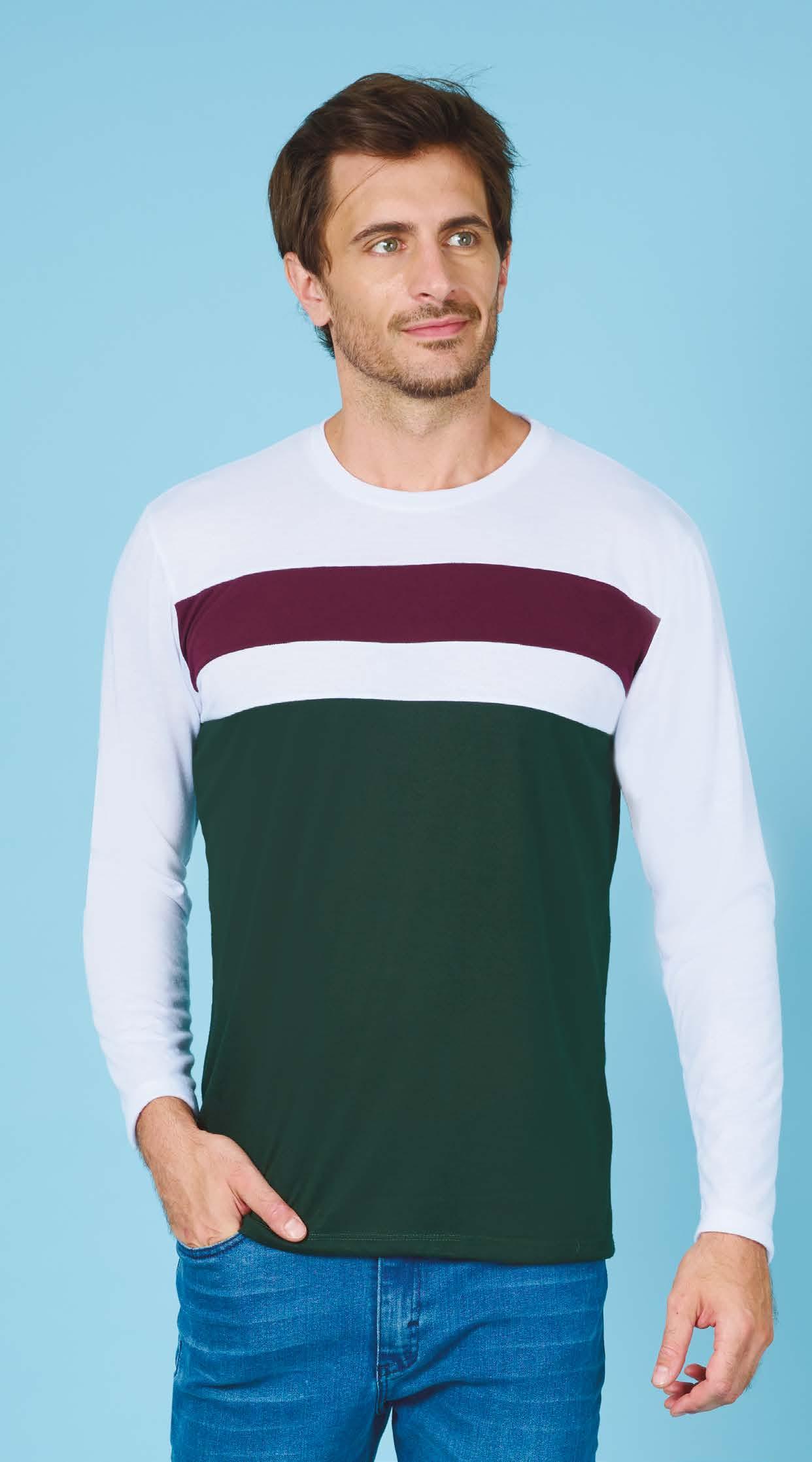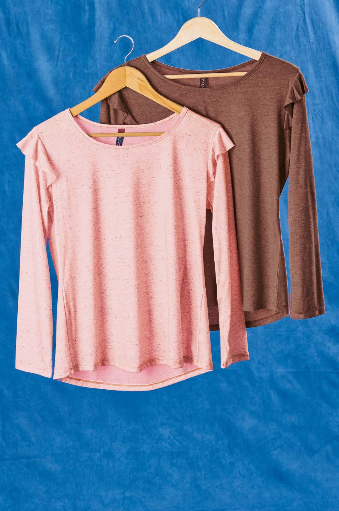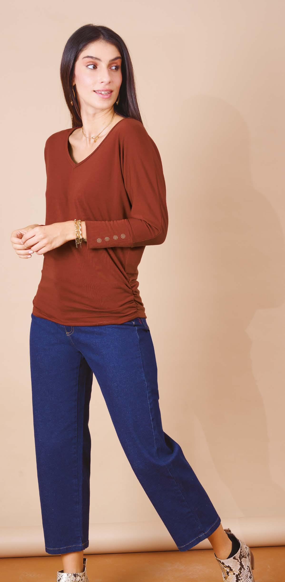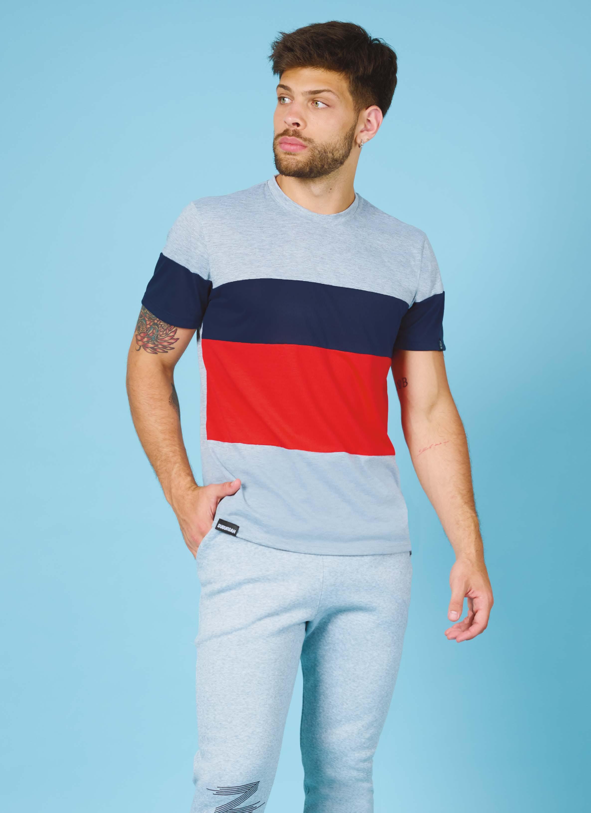 REMERA ART. D118-33 Confeccionada en viscosa con recortes en viscosa melange en mangas. Línea