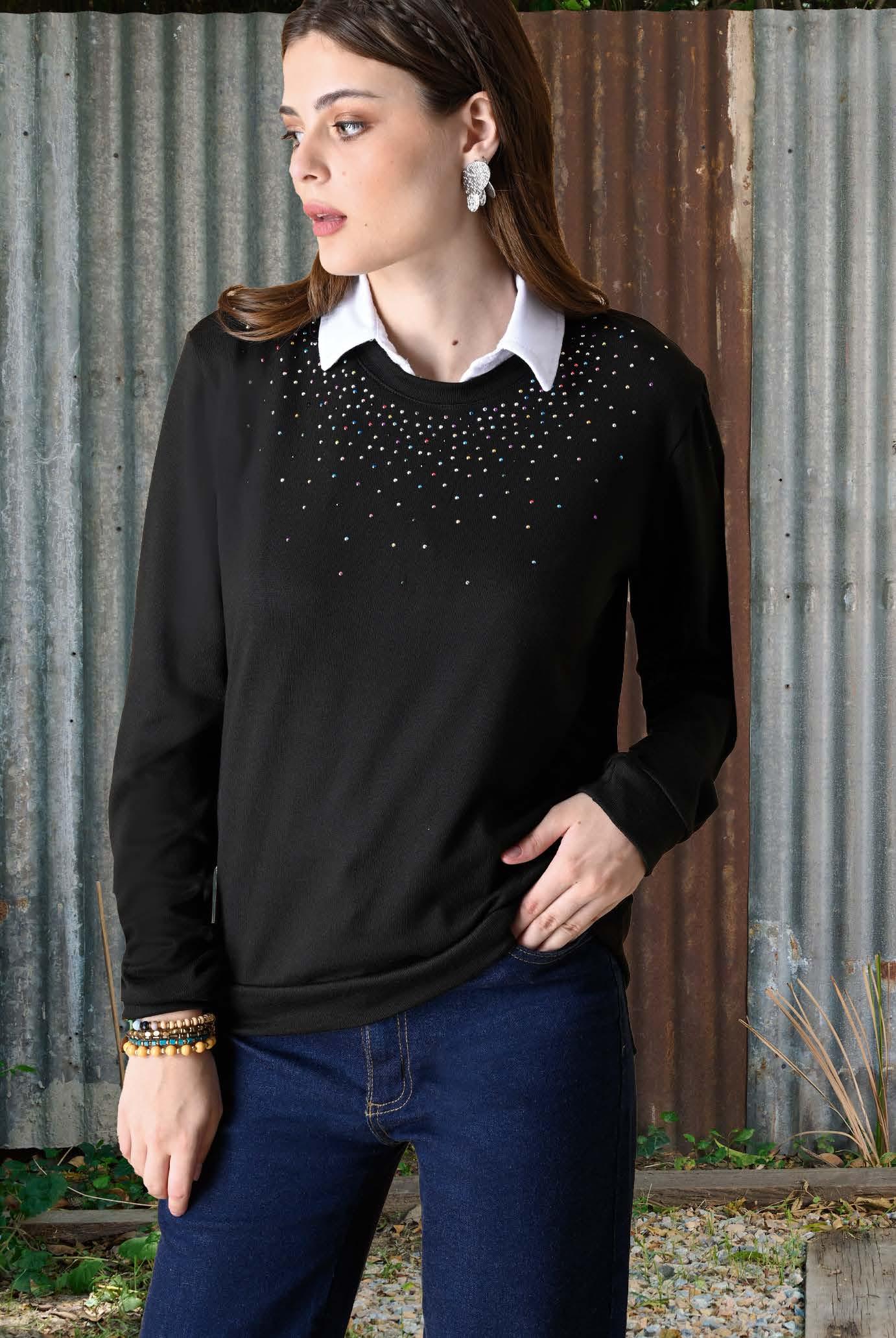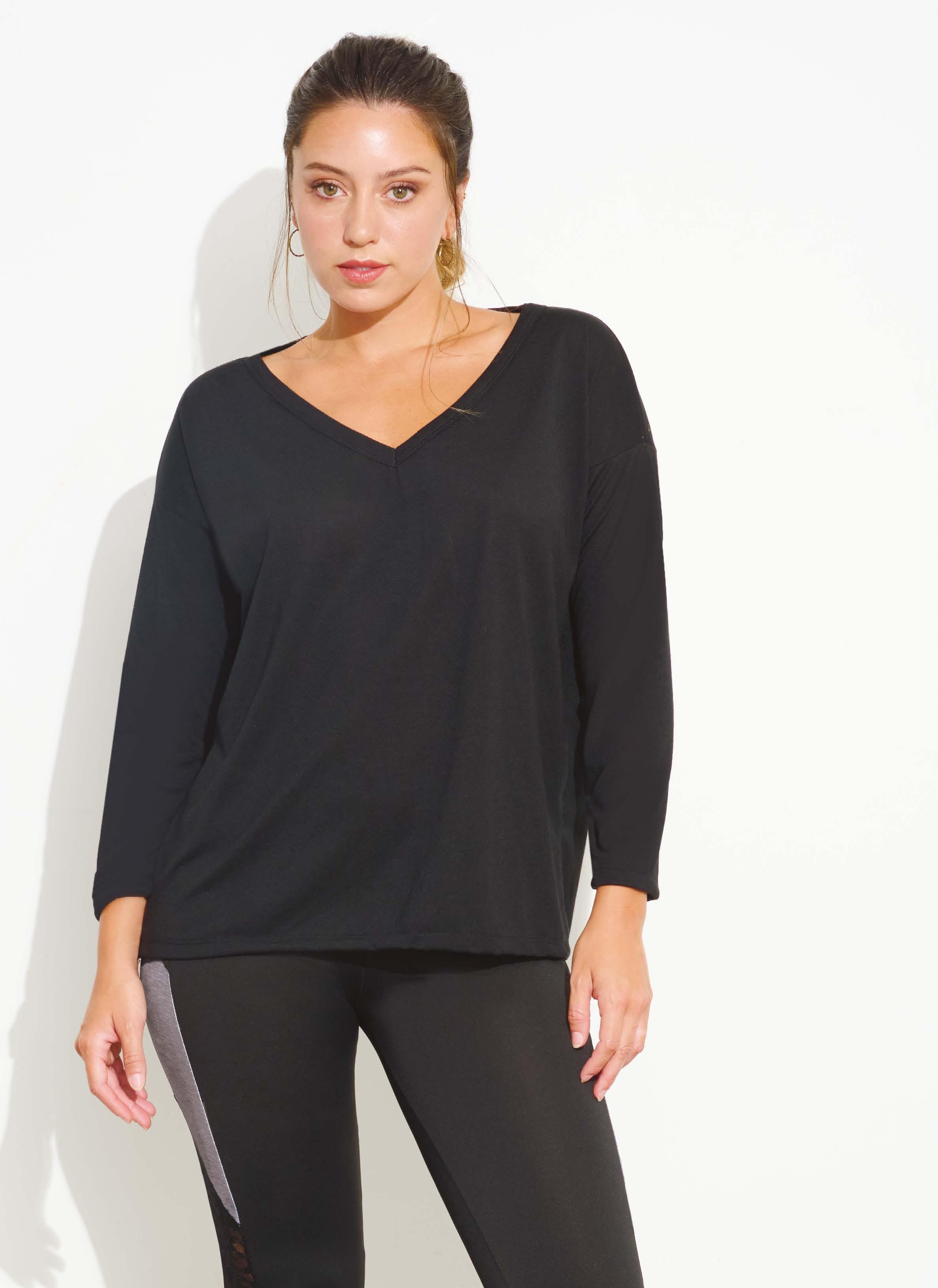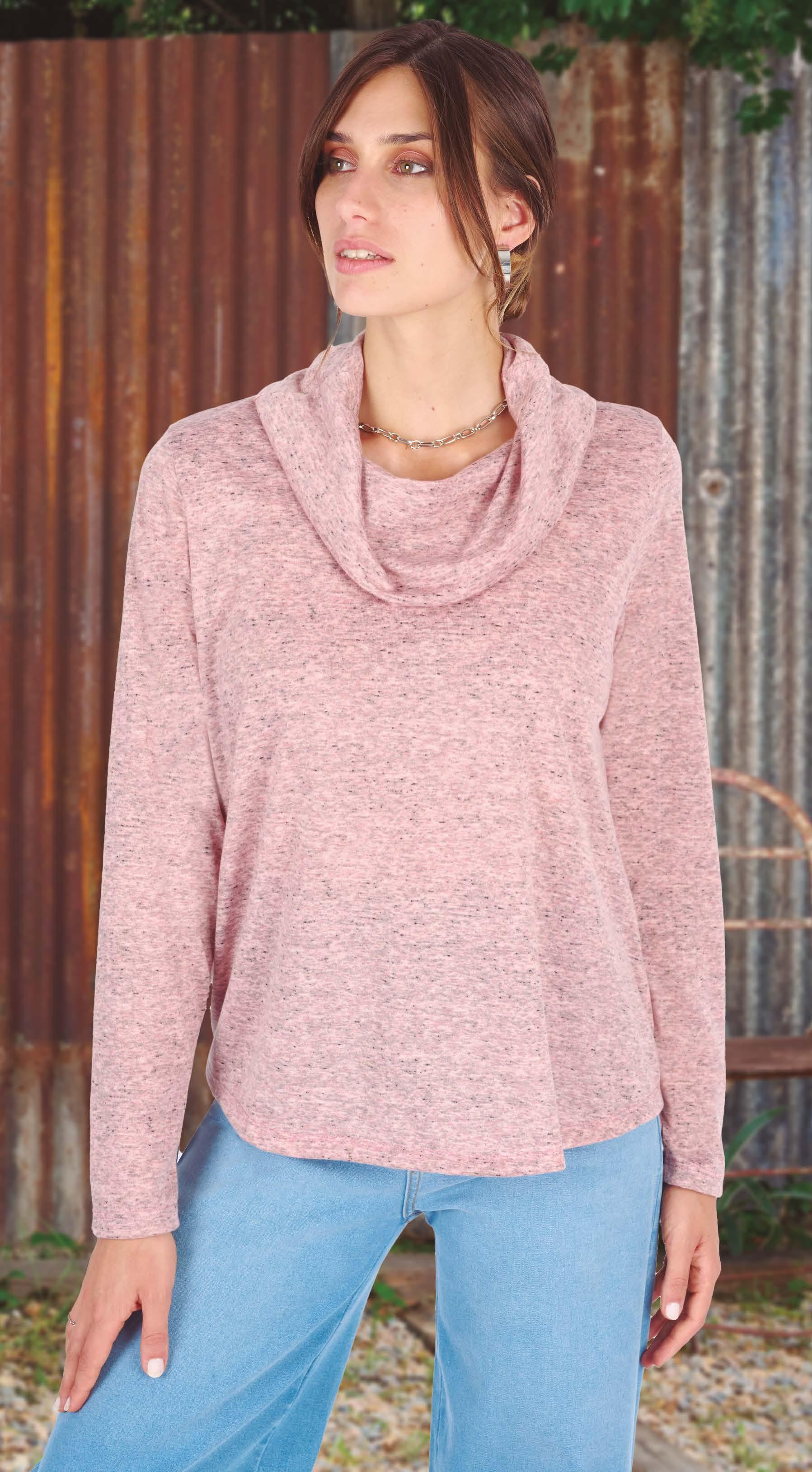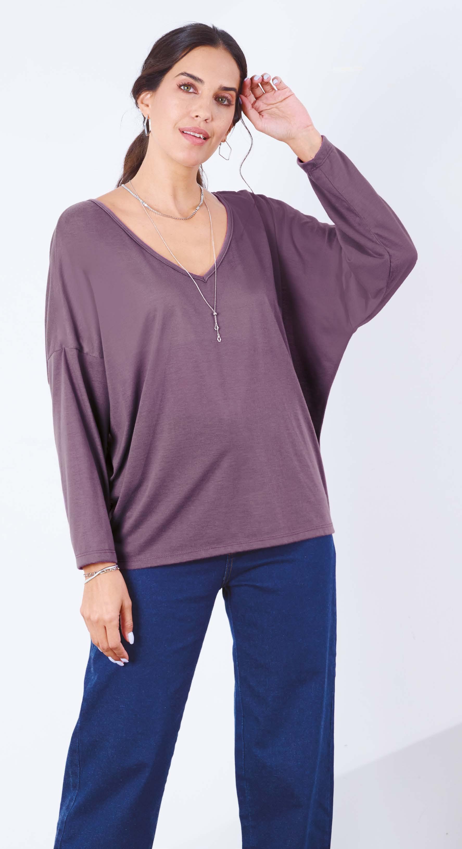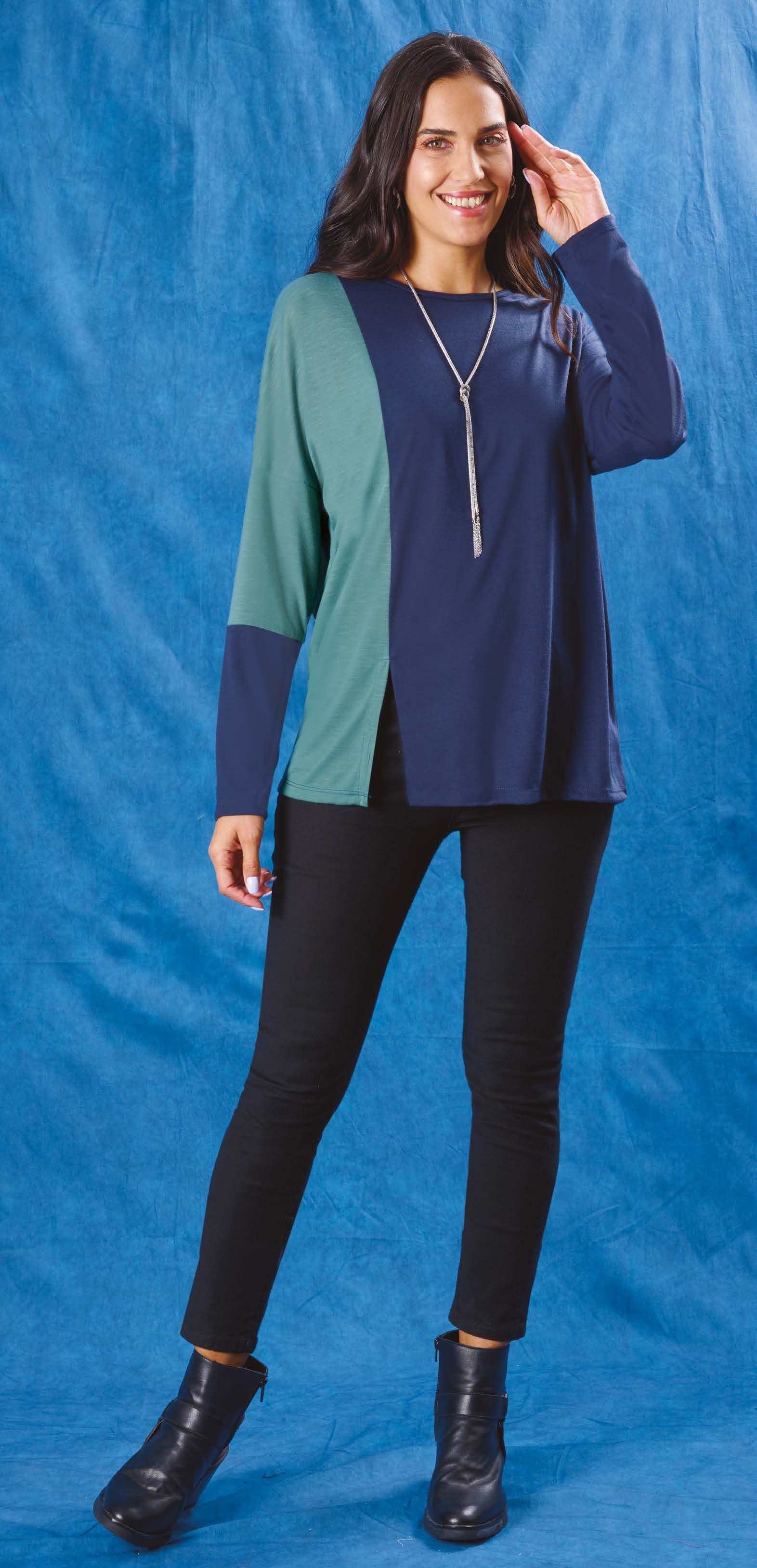 REMERA ART. D118-33 Confeccionada en viscosa con recortes en viscosa melange en mangas. Línea