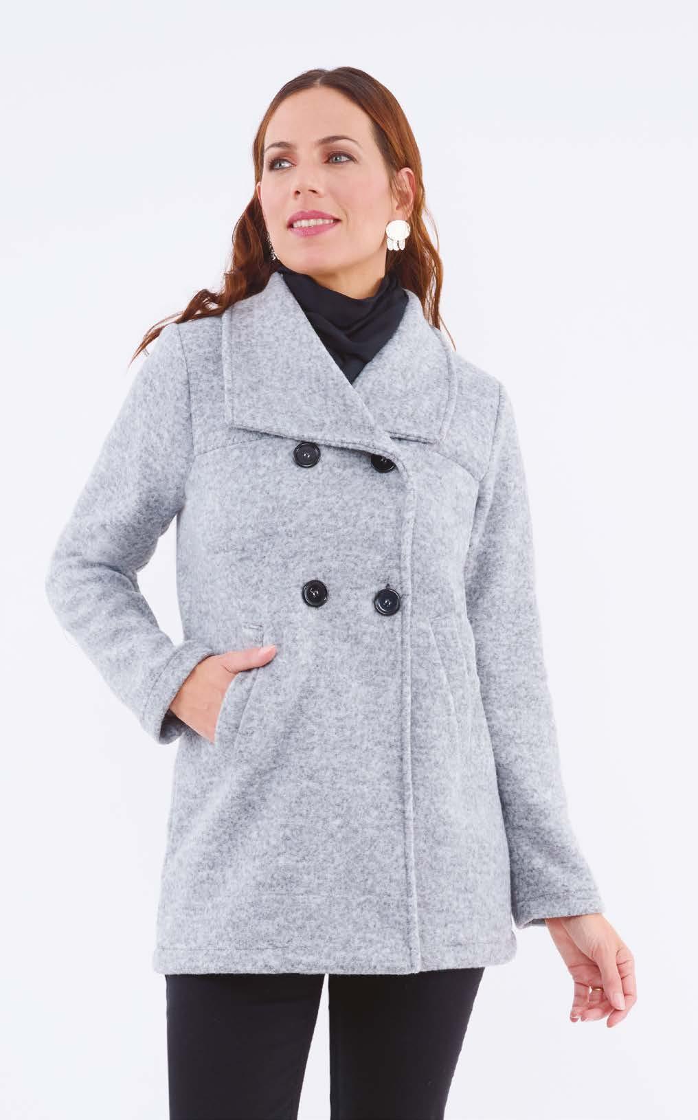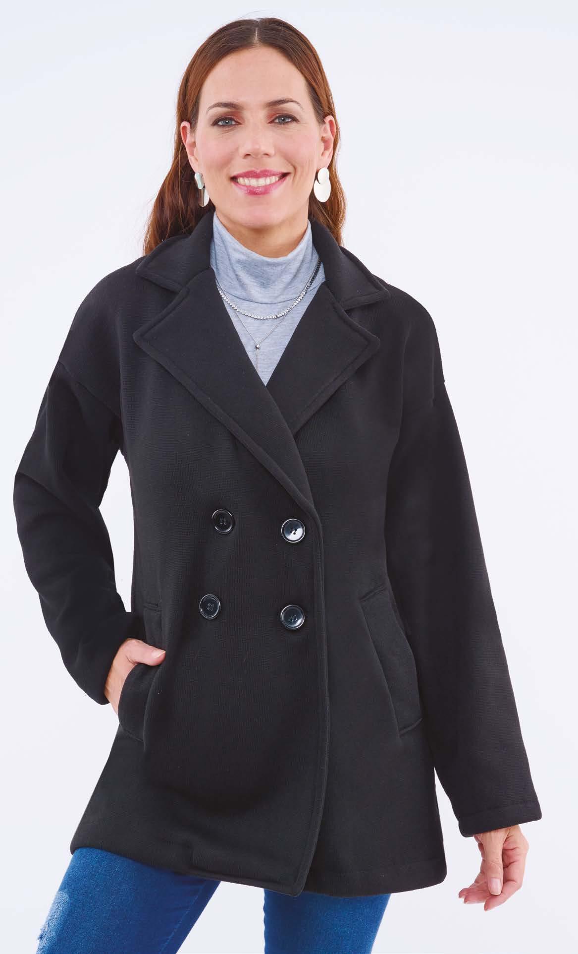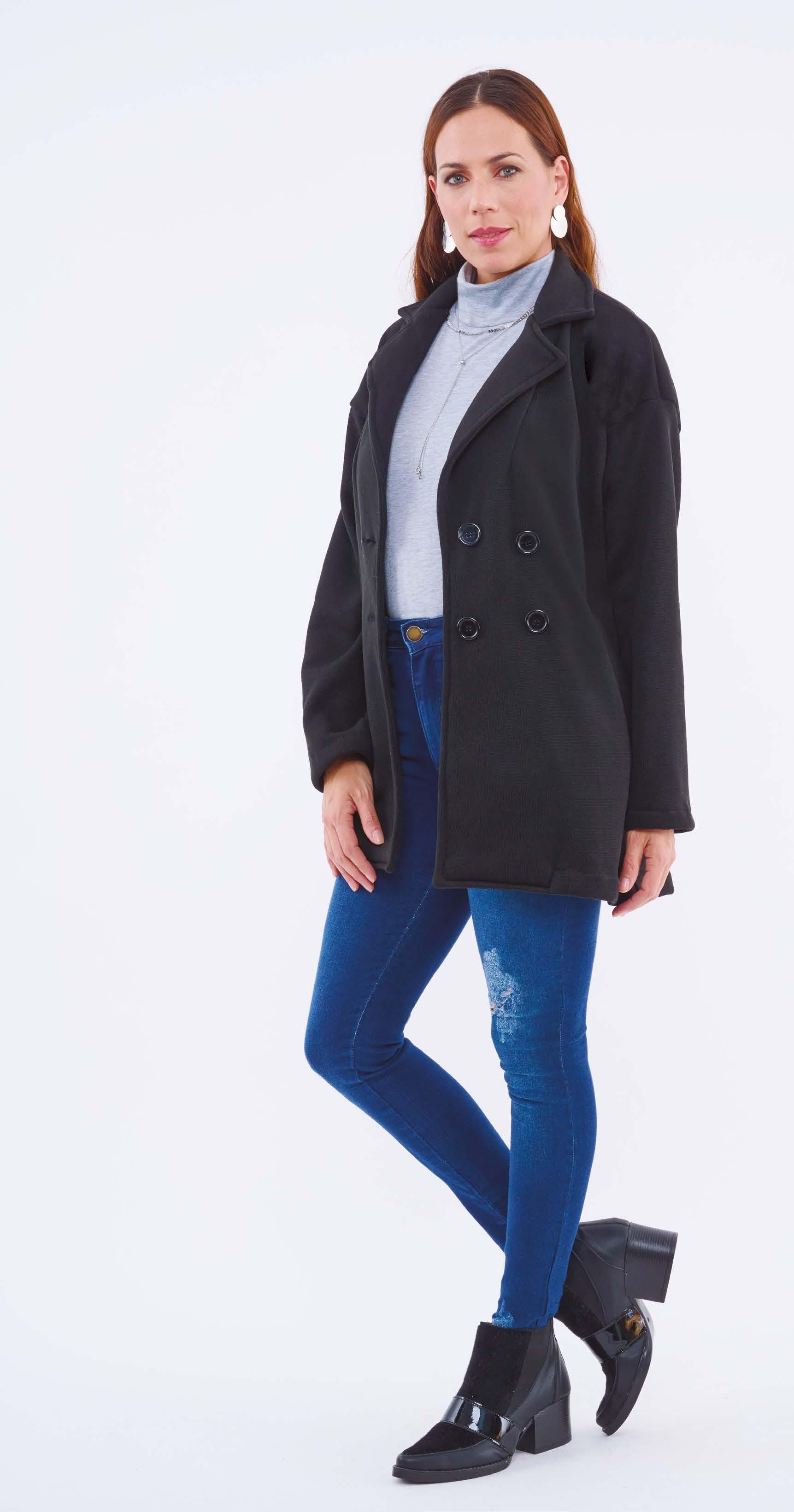 Confeccionado en frisa tejida. Detalle de doble abotonadura y bolsillos en delantero.