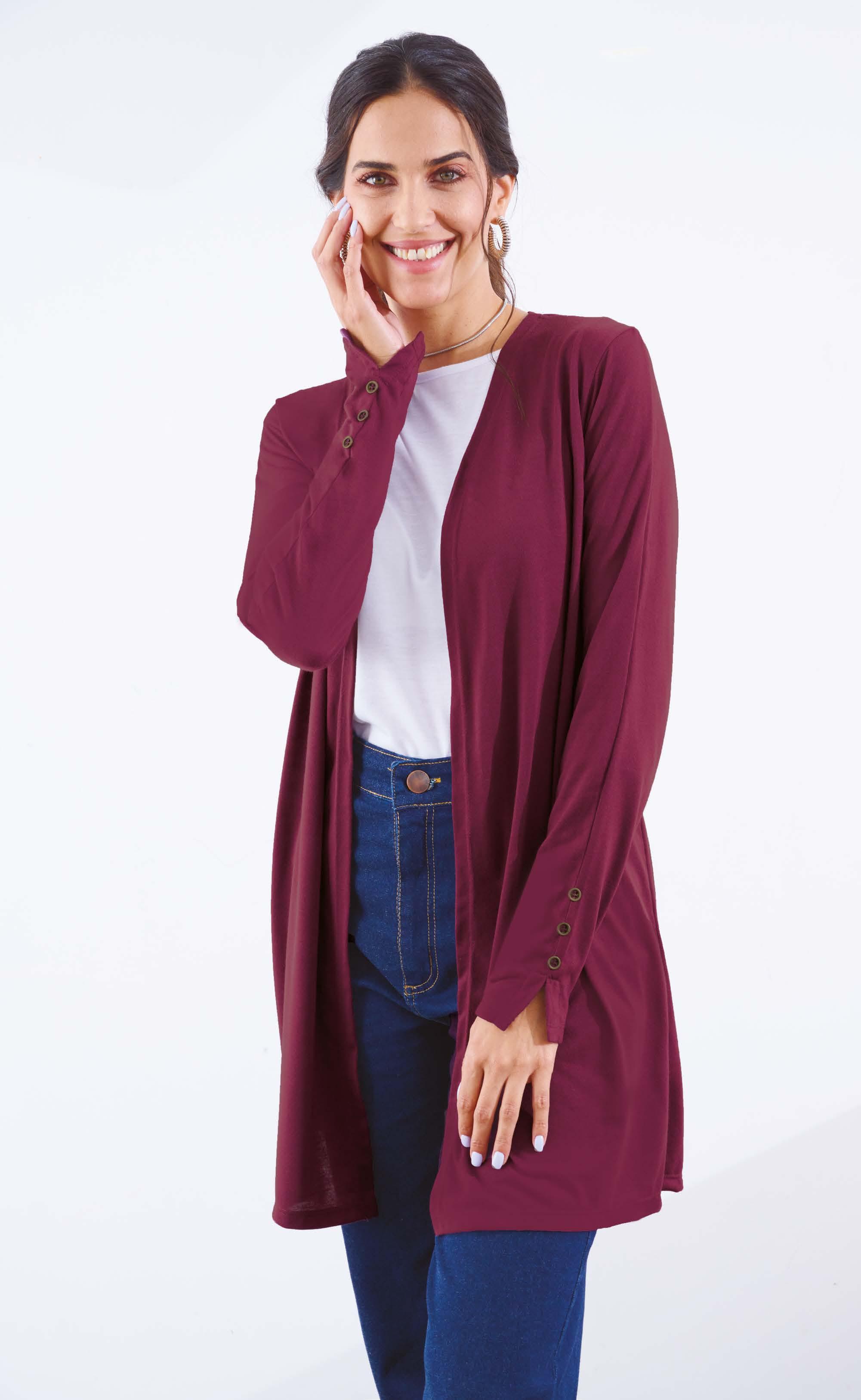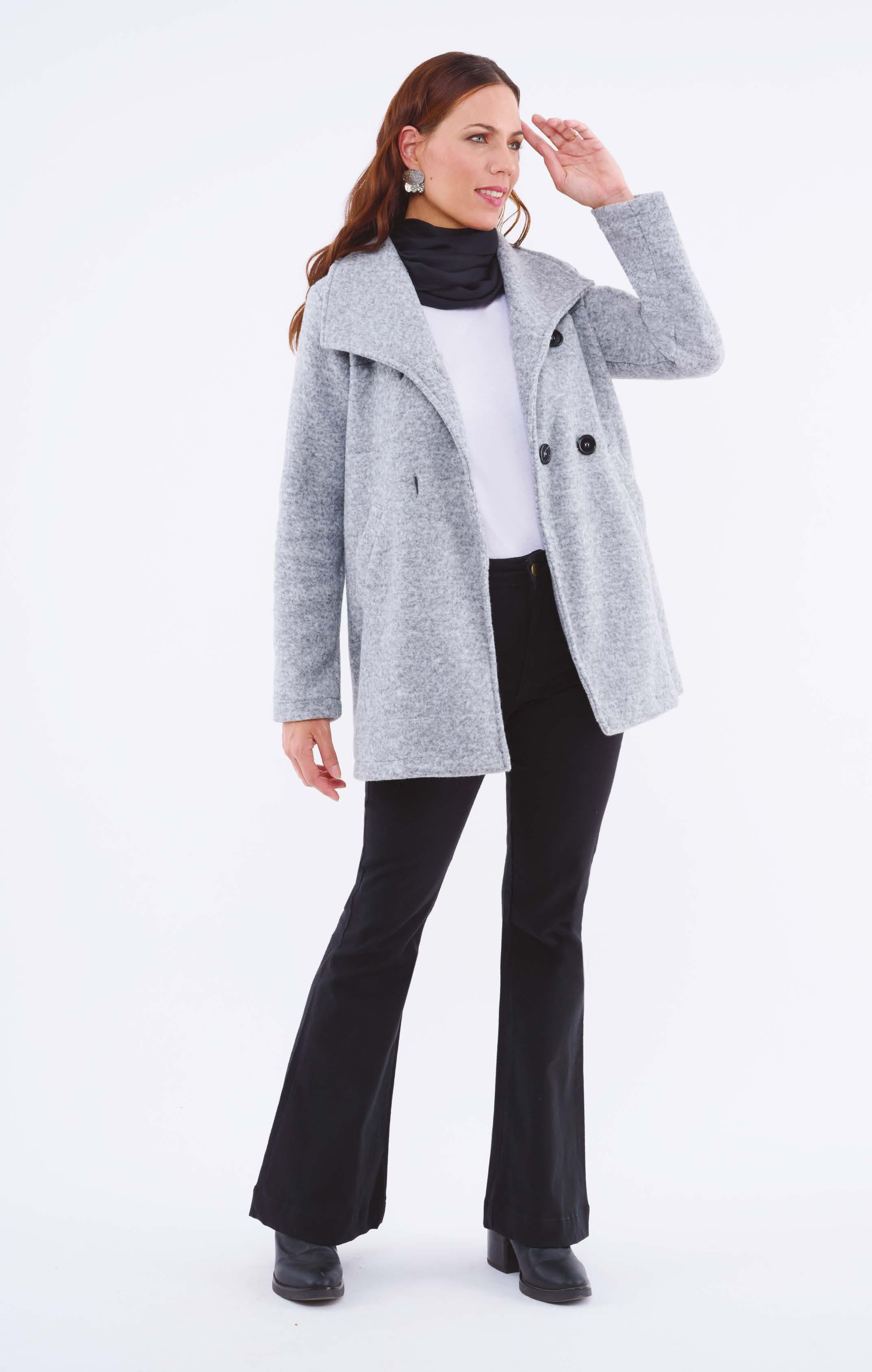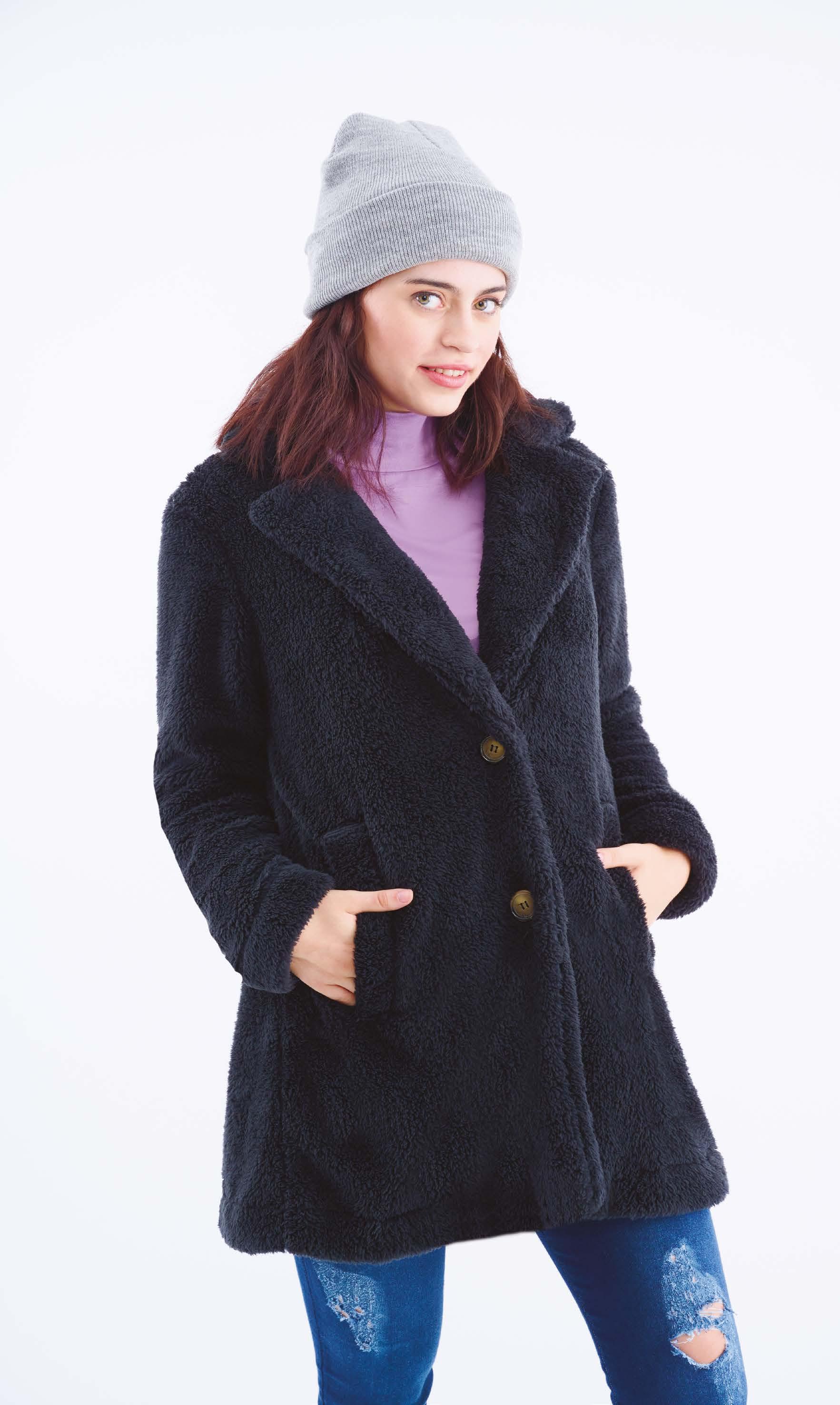 Confeccionado en frisa tejida. Detalle de doble abotonadura y bolsillos en delantero.