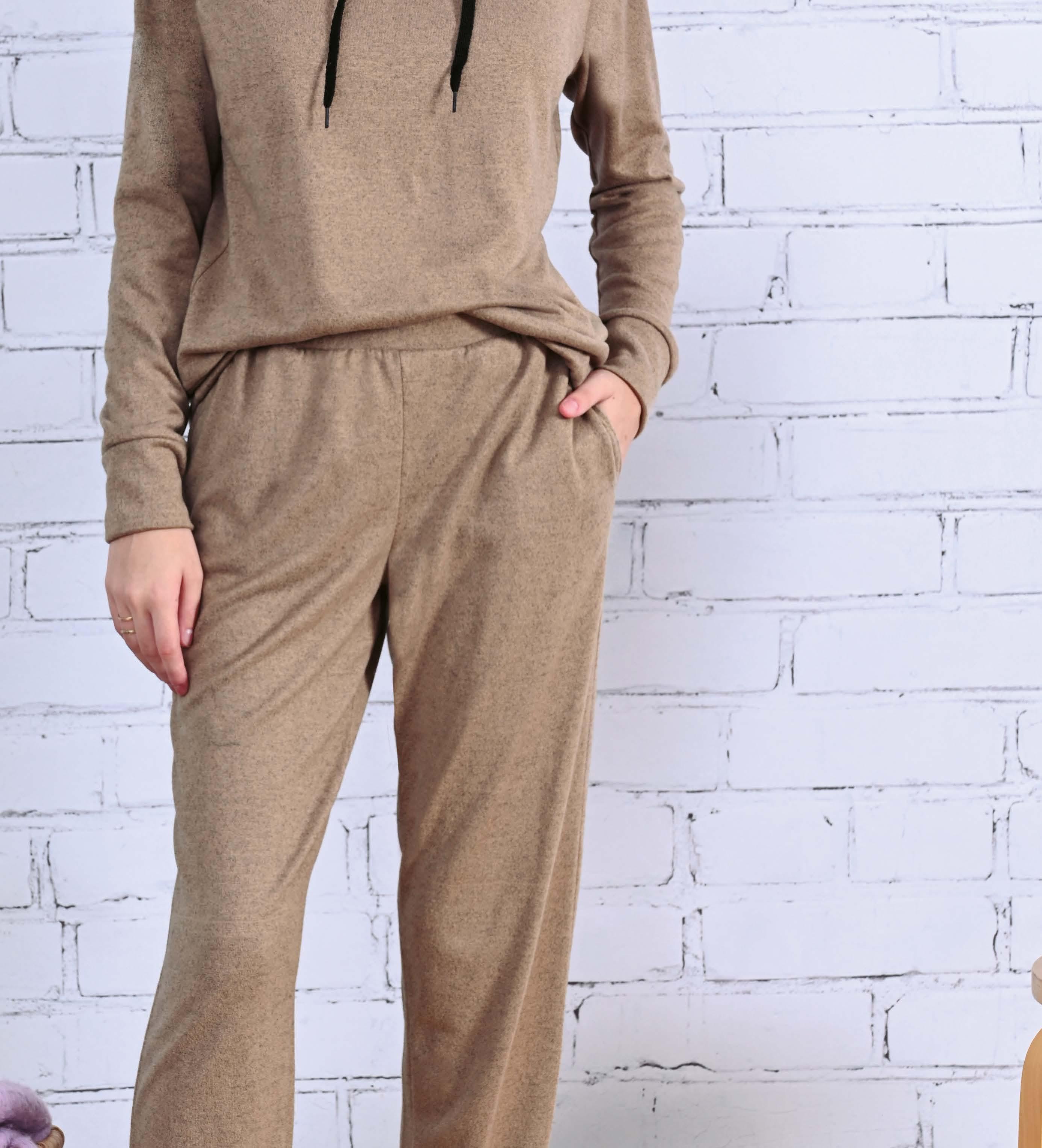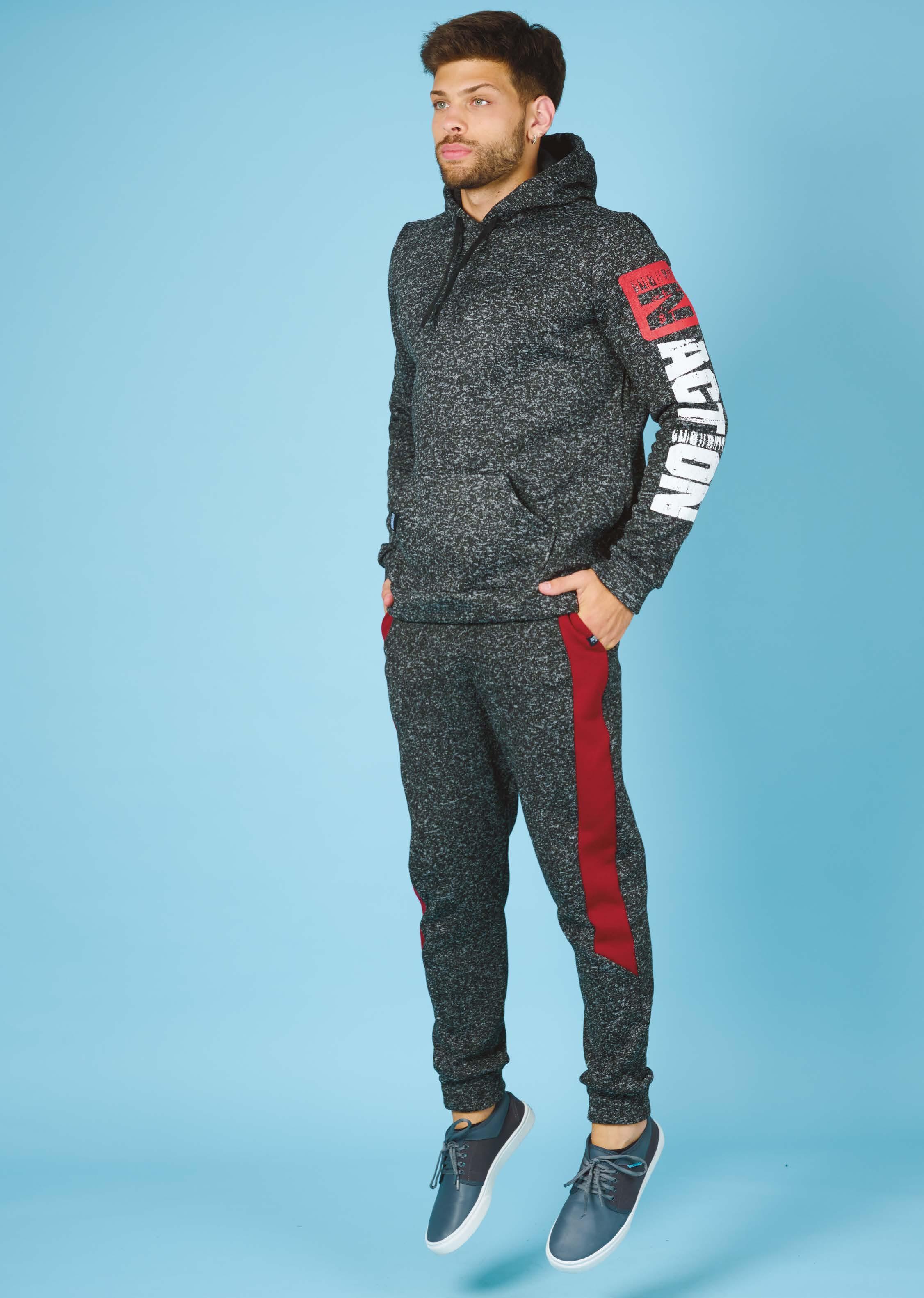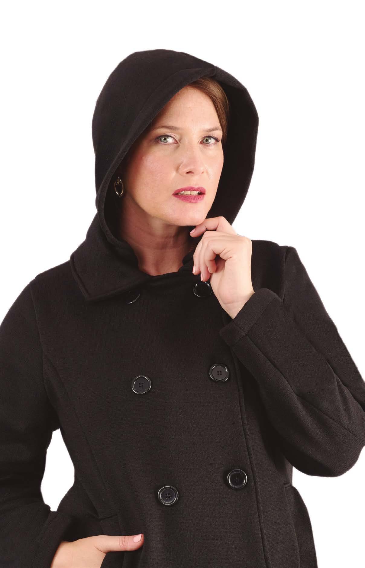 Confeccionado en frisa tejida jaspeada negra. Recorte en frisa tejida negra.