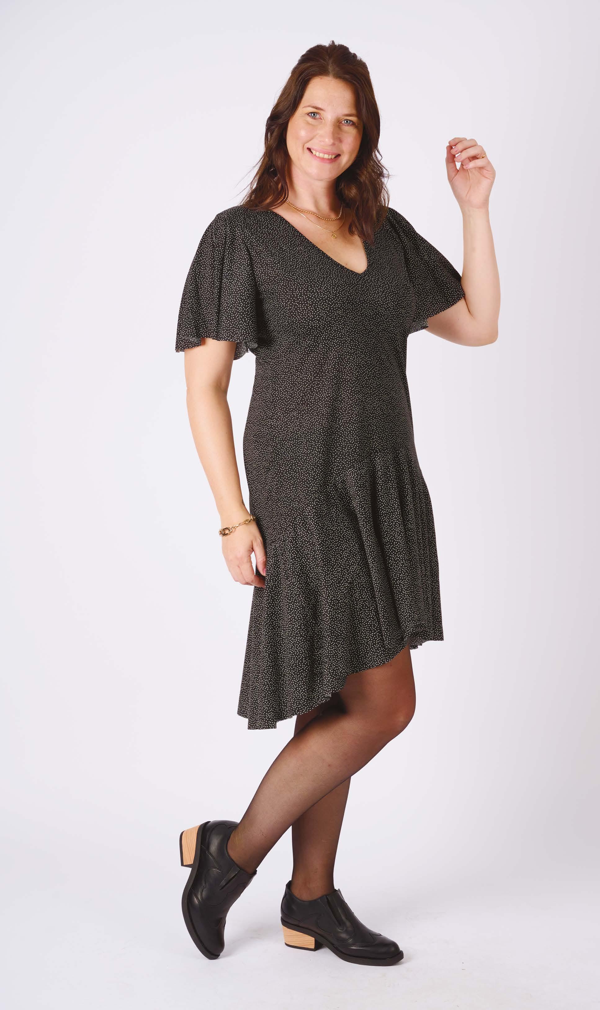 ART. B970-33 Confeccionada en viscosa con recortes en microtul. Línea clásica. Color: Negro (02) Talles: 1 - 2 - 3 - 4 - 5