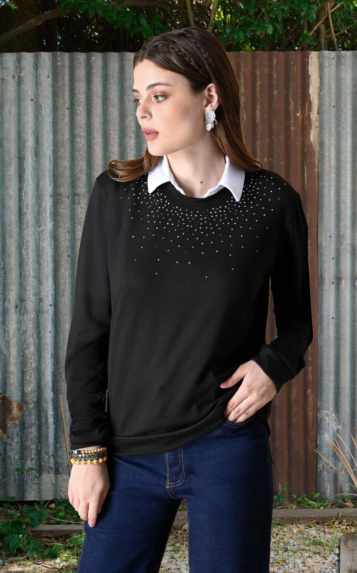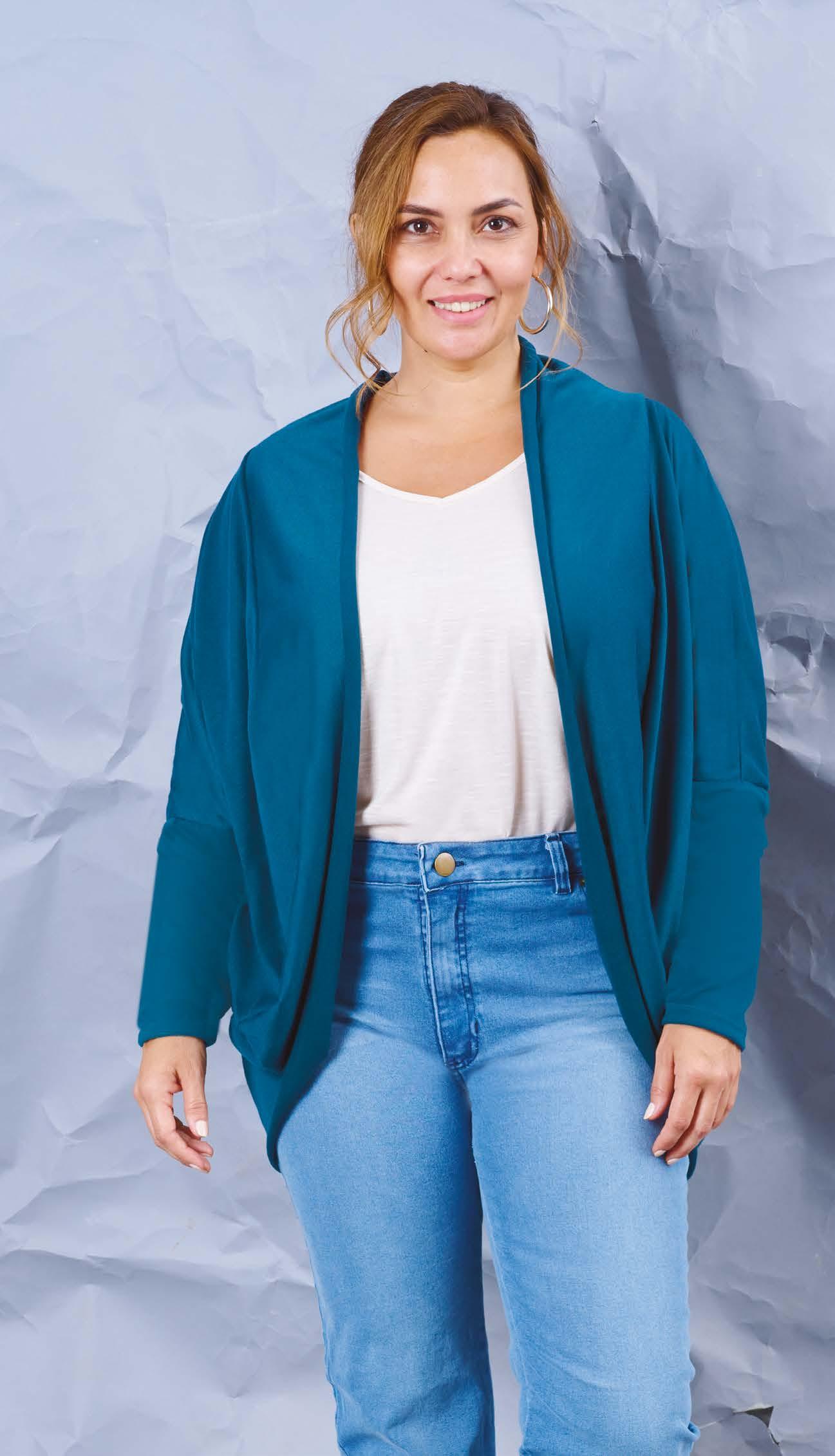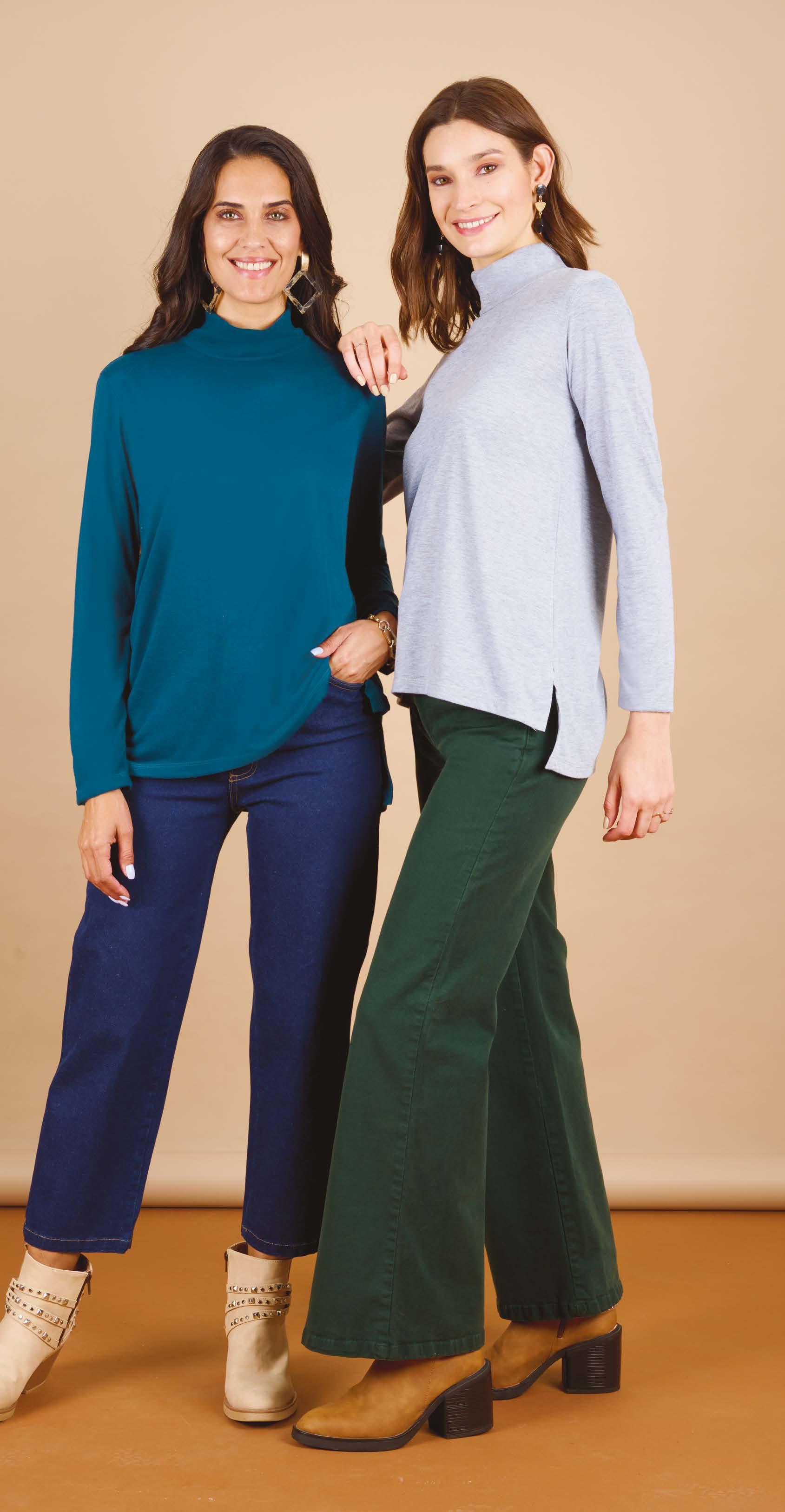 Confeccionada en viscosa negra, verde y gris melange. Abertura en escote.