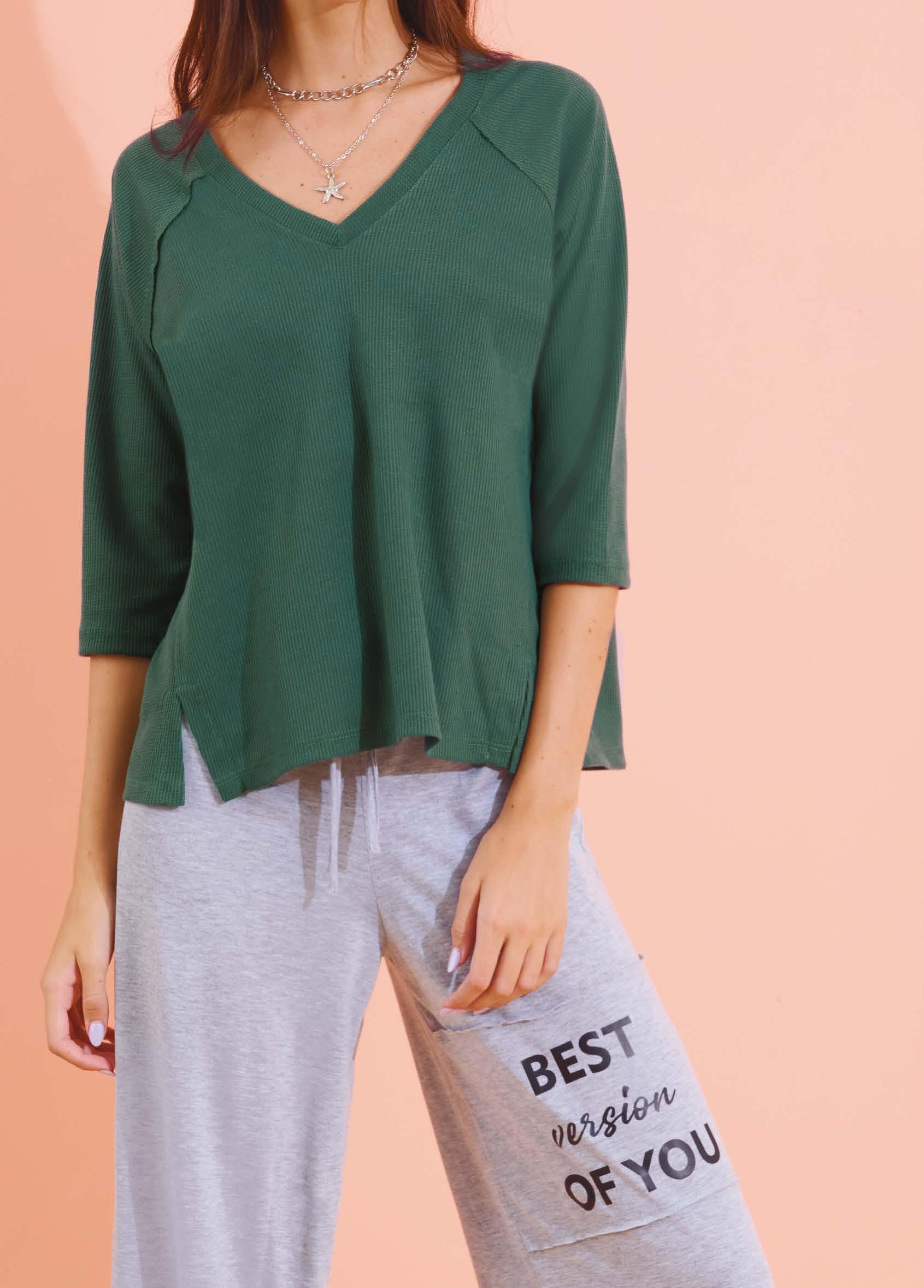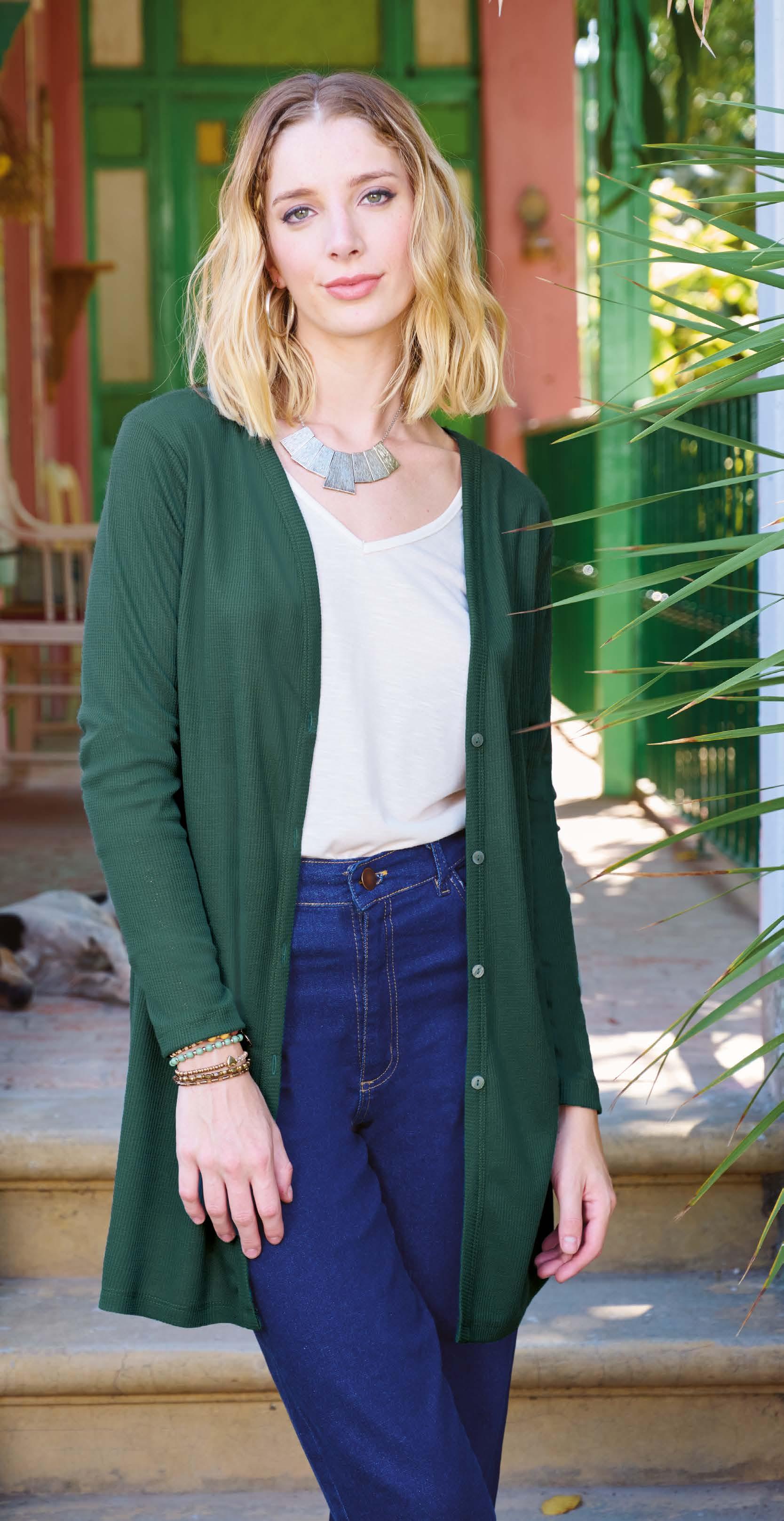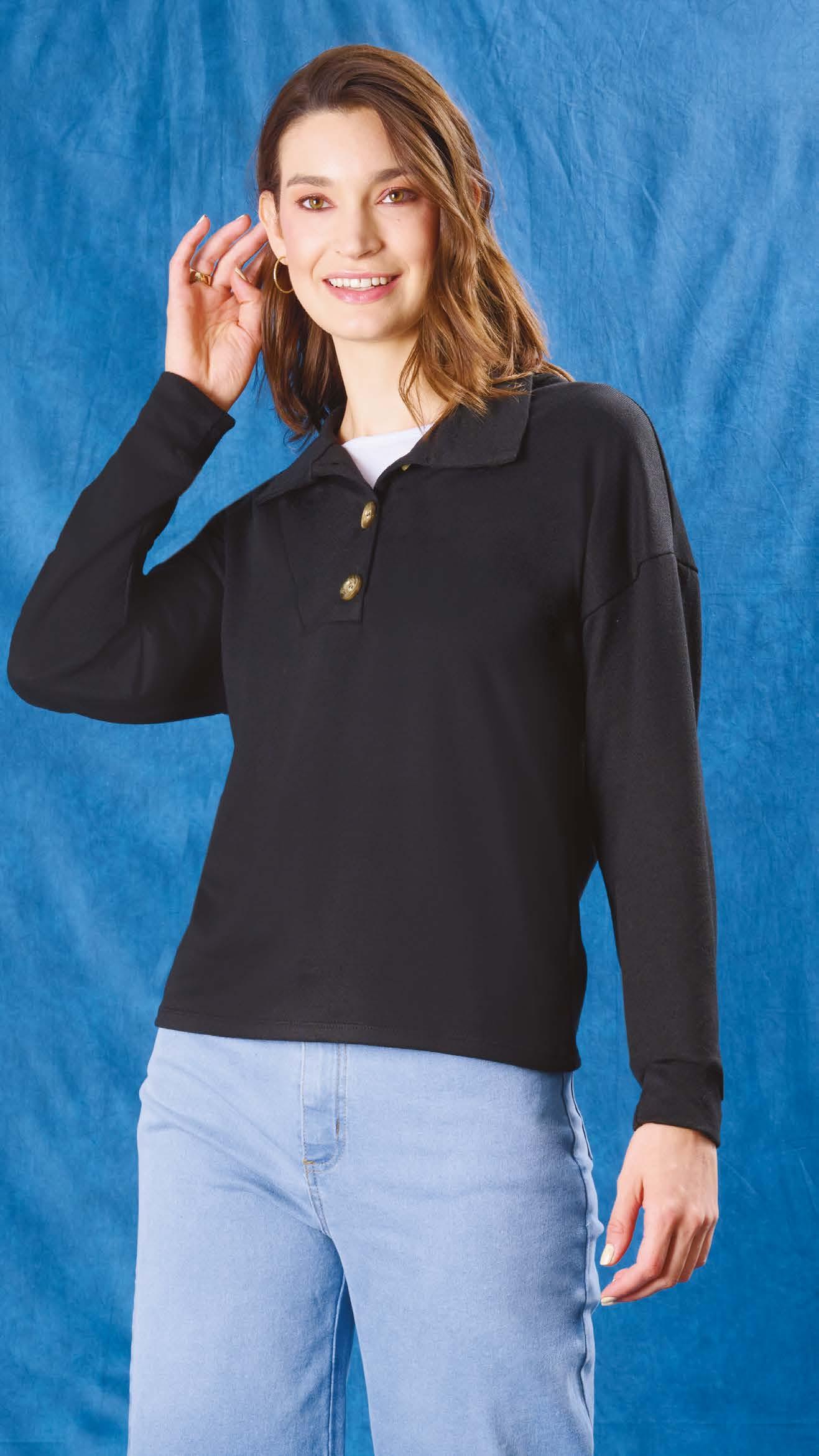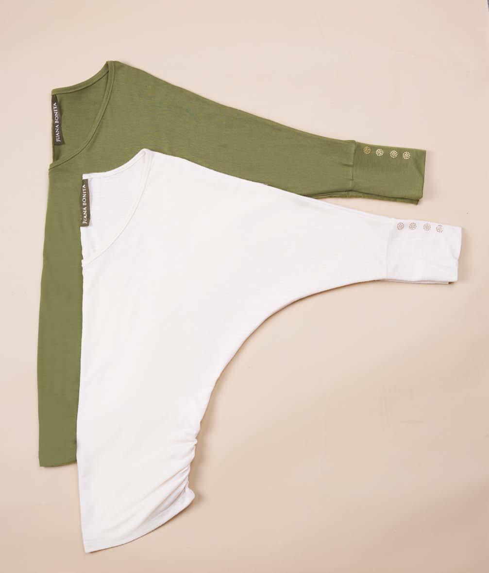 Confeccionado en tejido waffle. Detalle de botones en un hombro.