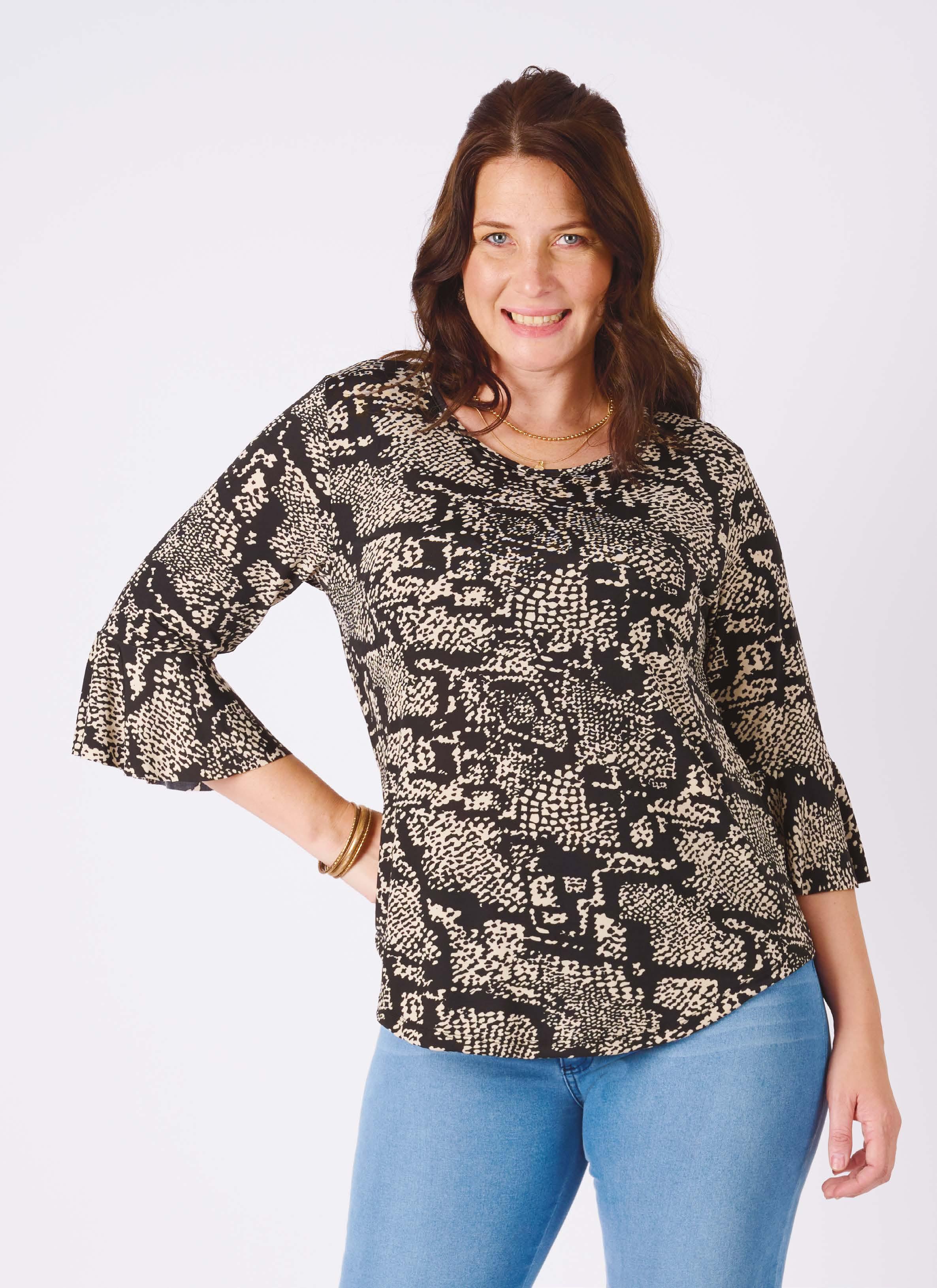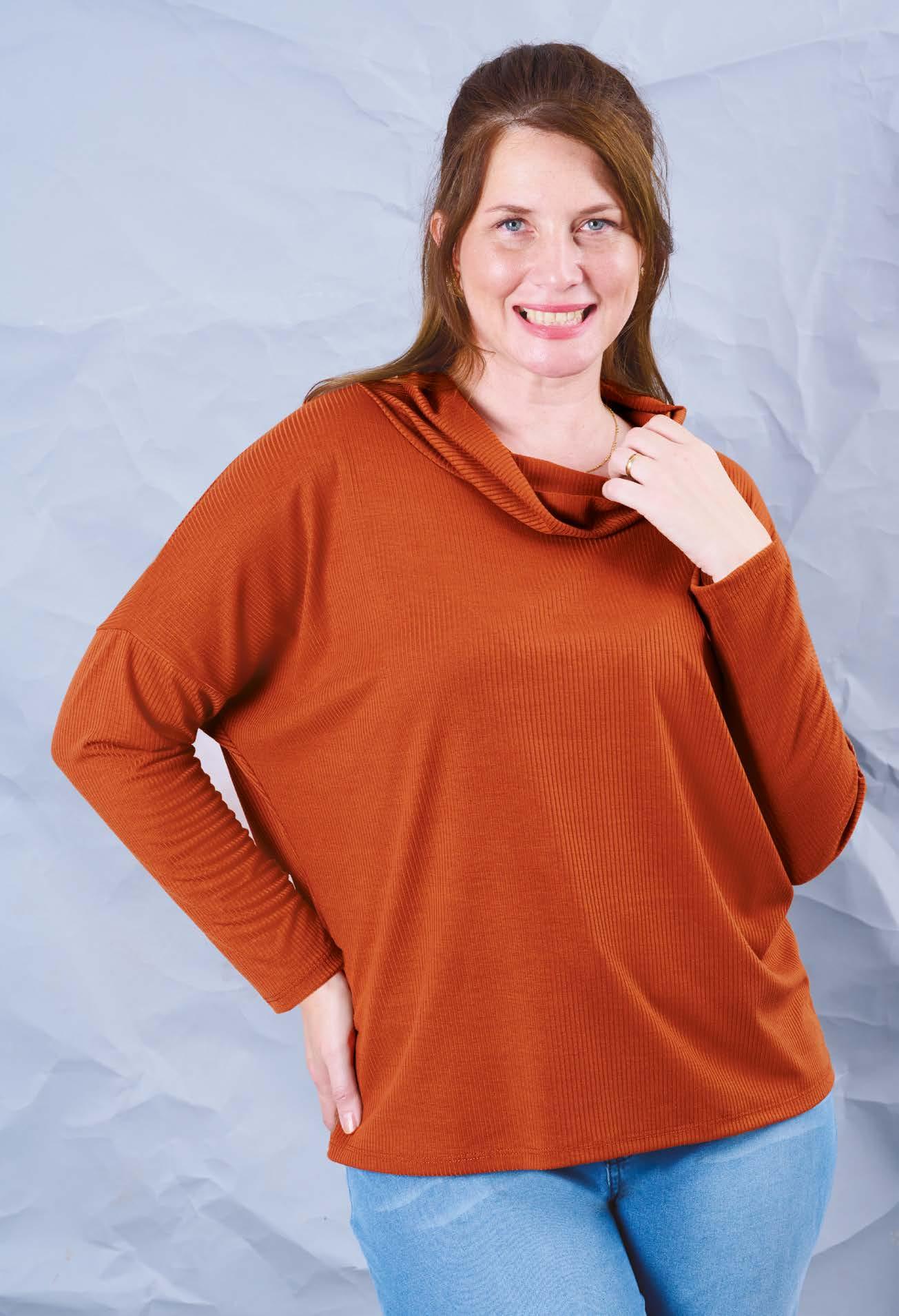 Confeccionada en crepé elastizado texturado. Buche en escote.