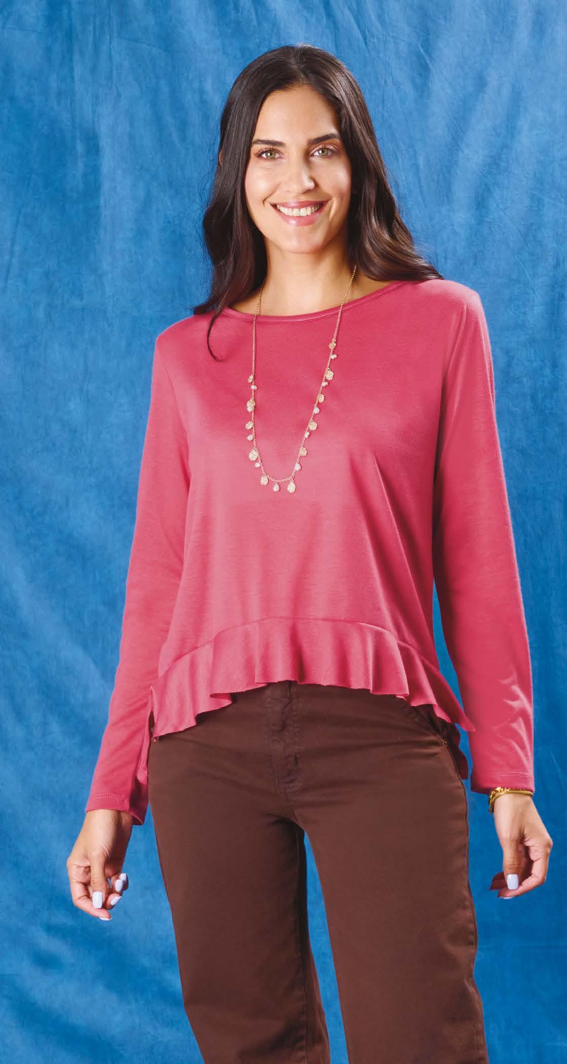 Confeccionada en viscosa. Detalle de volado en base delantera.