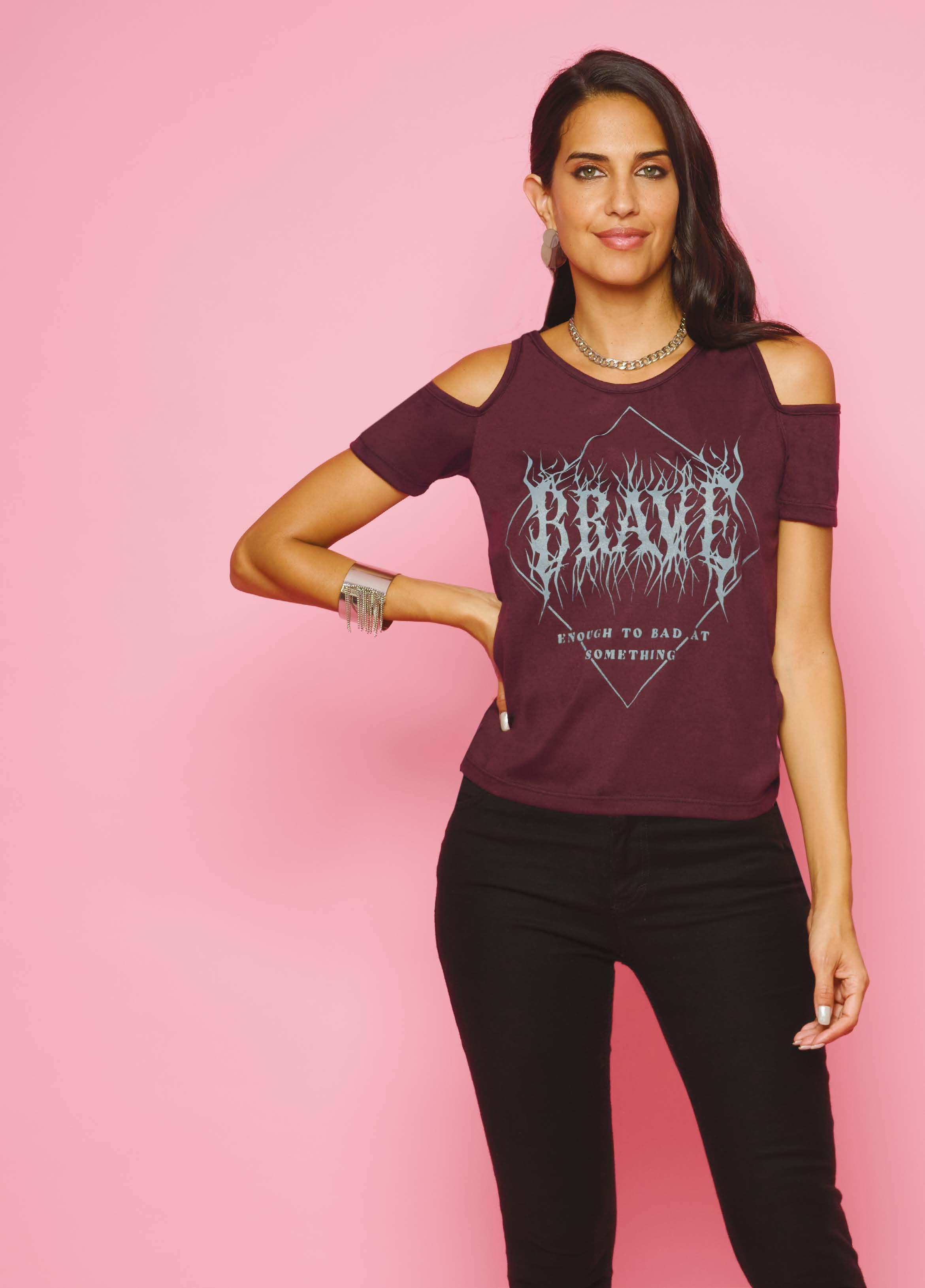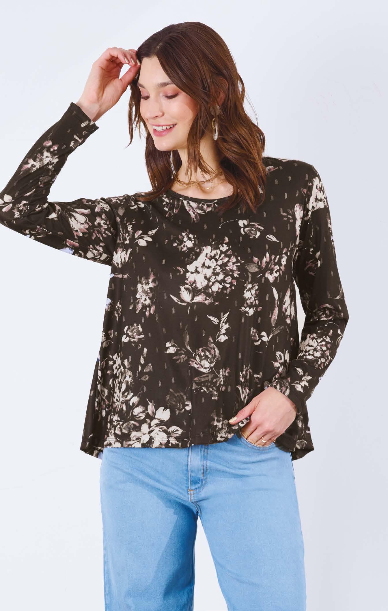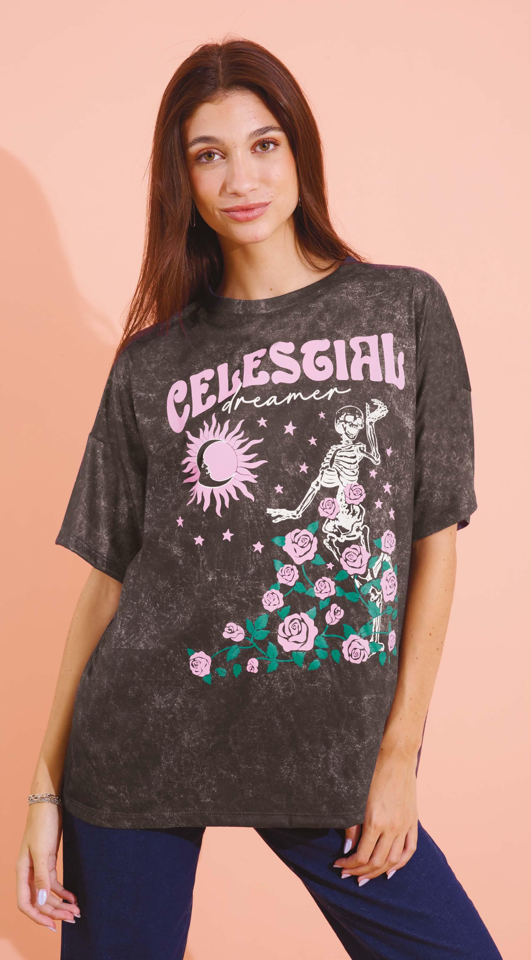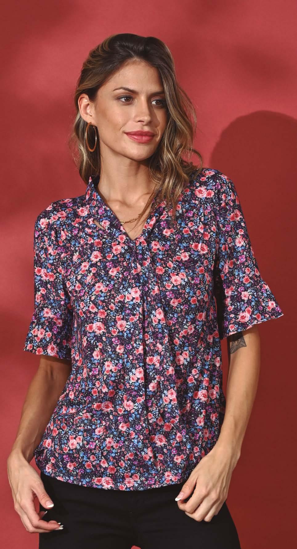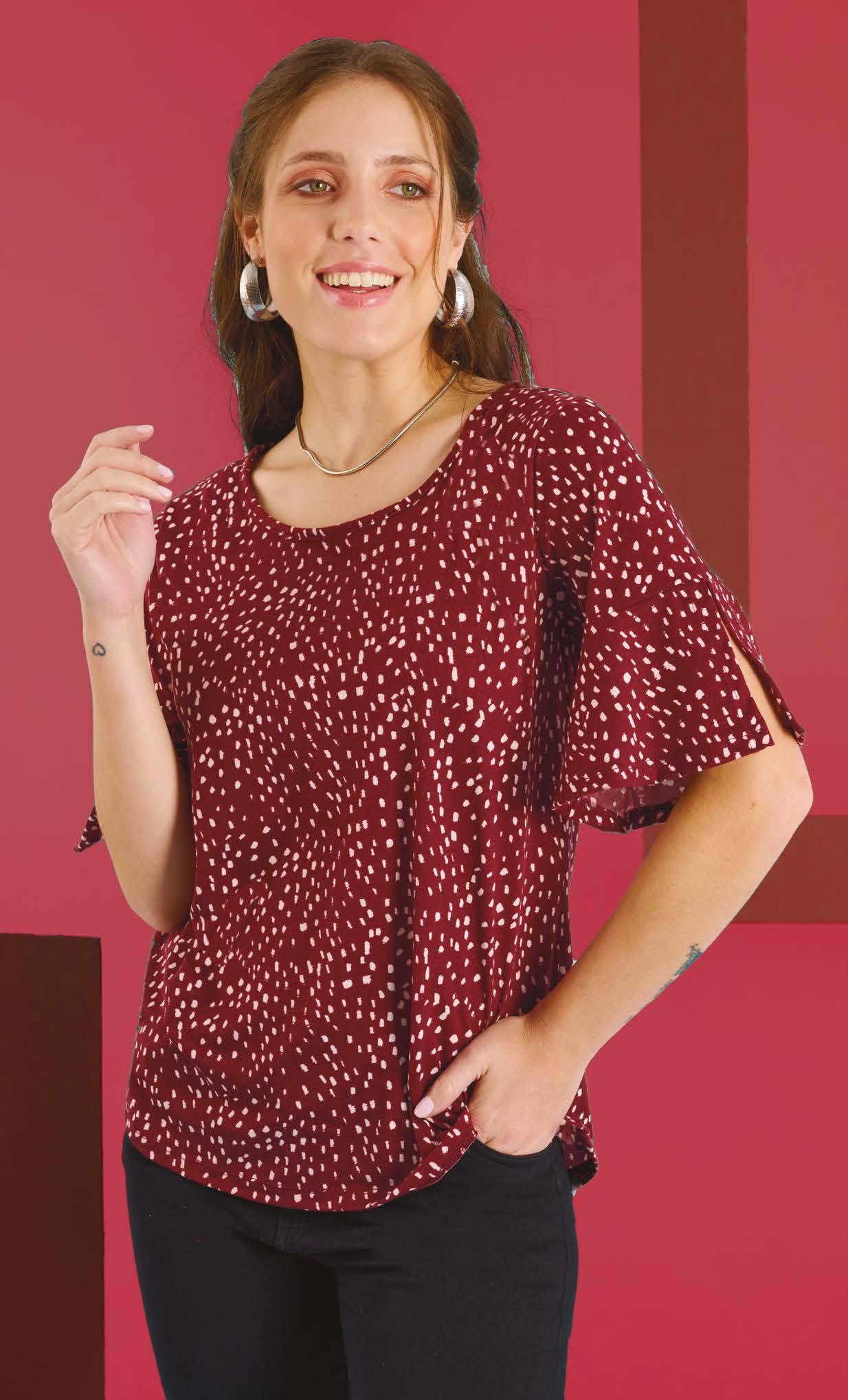Confeccionada en viscosa. Estampa localizada en hombro. Línea clásica.