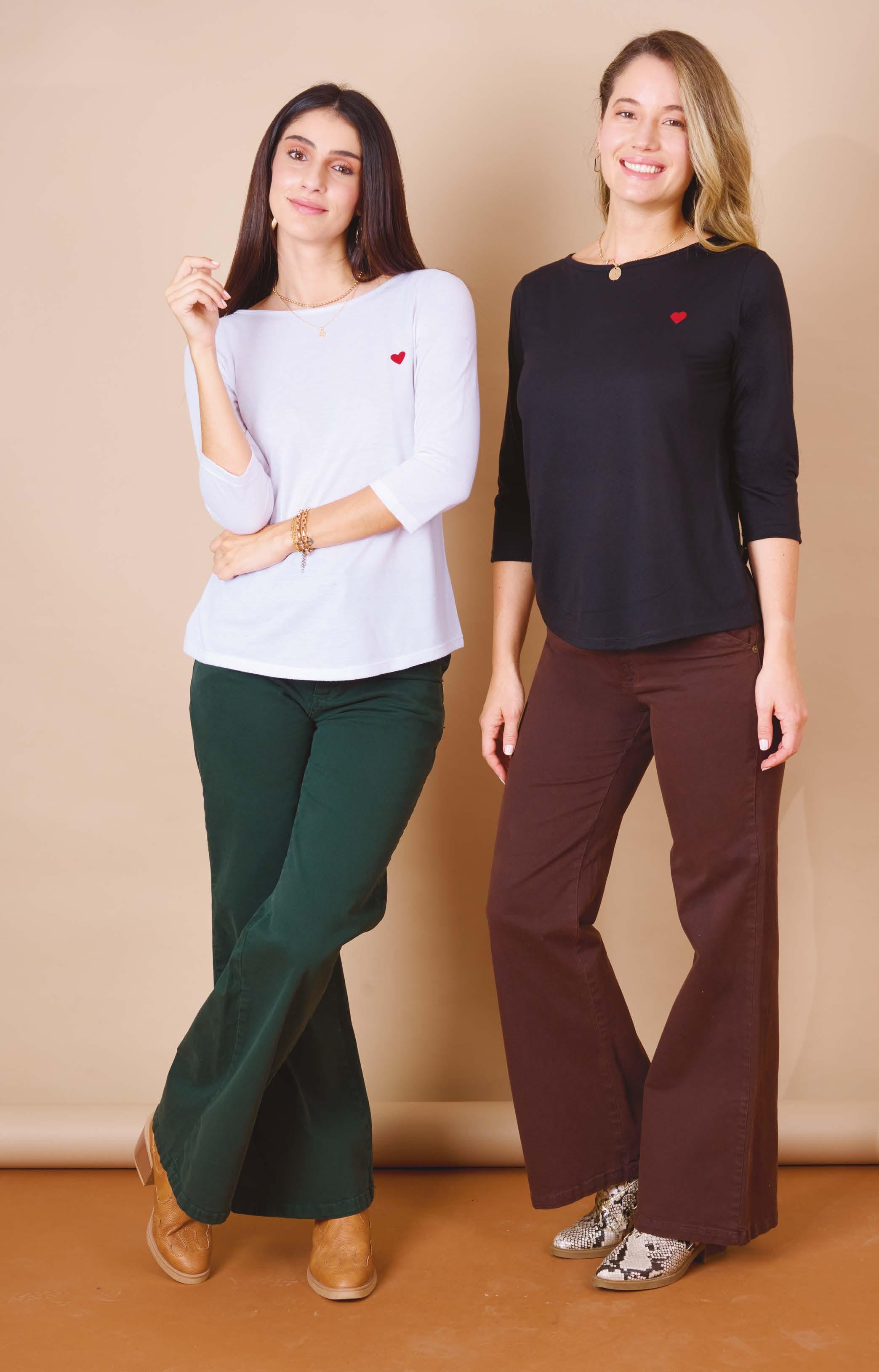 Confeccionadas en viscosa y viscosa melange. Detalle de bordado en delantero.