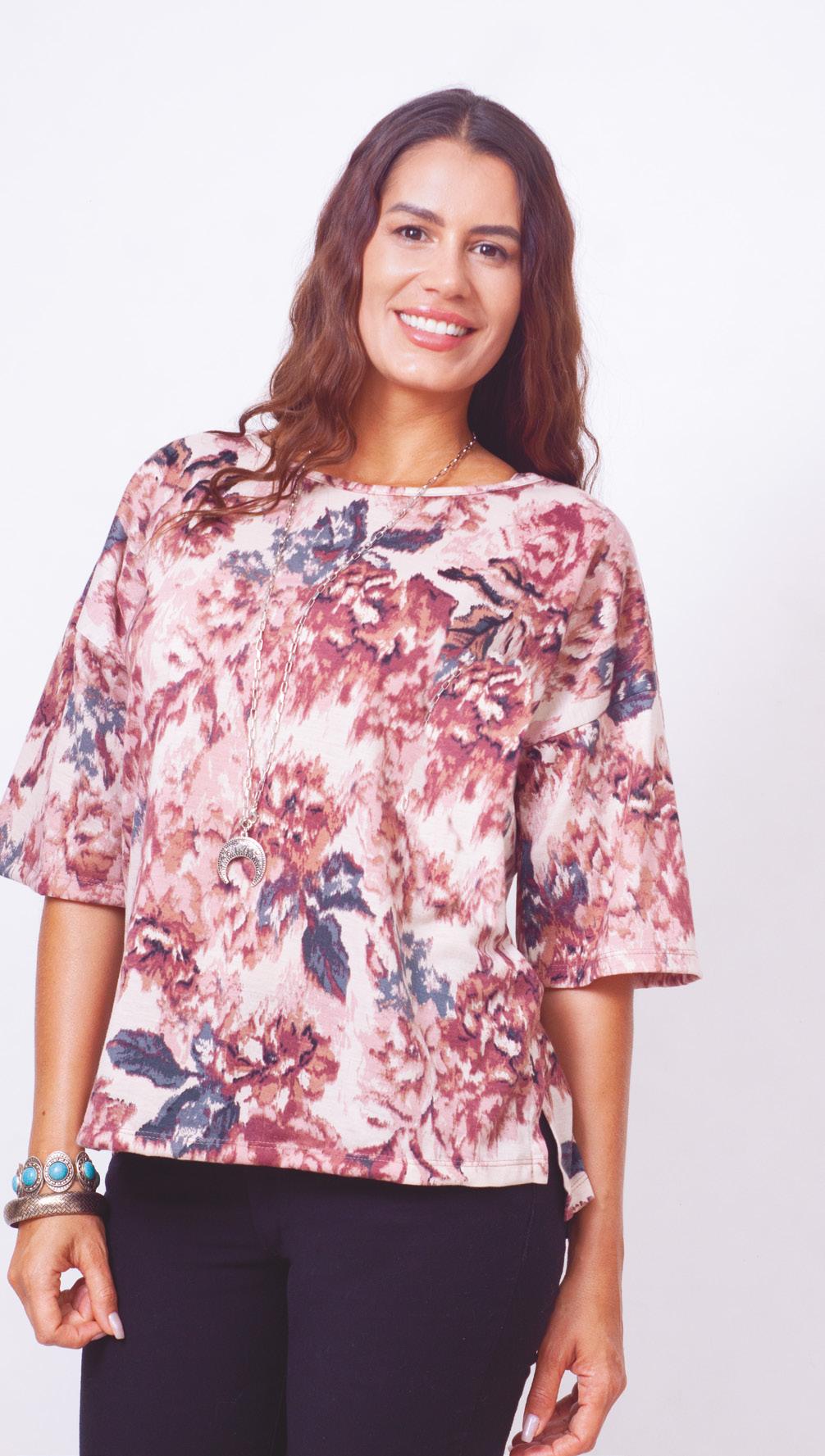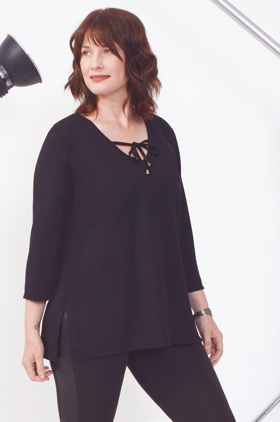 Confeccionada en viscosa. Cuello amplio caido. Línea clásica.