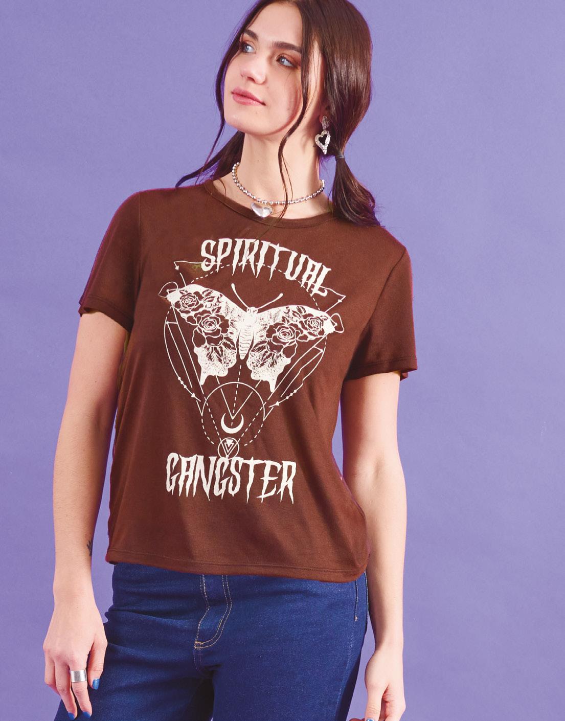 Confeccionada en viscosa estampado stone wash marrón con detalle de bordado en delantero.