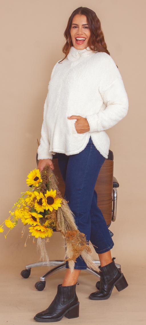 Confeccionado en lanilla. Cuello polera amplio. Línea clásica.