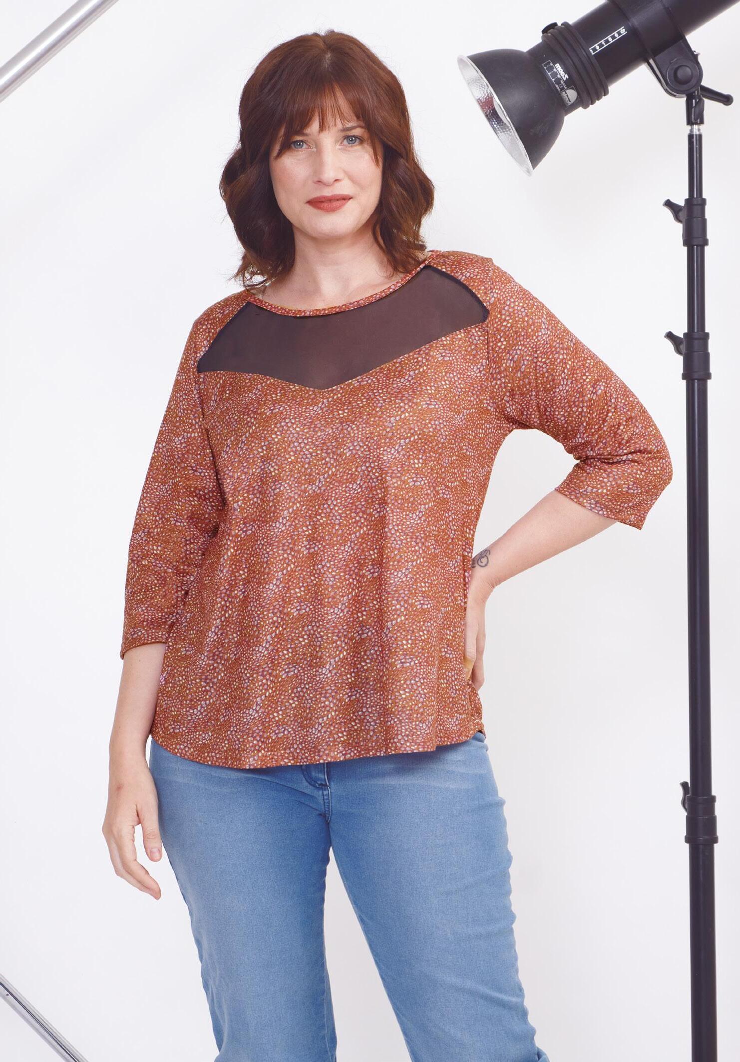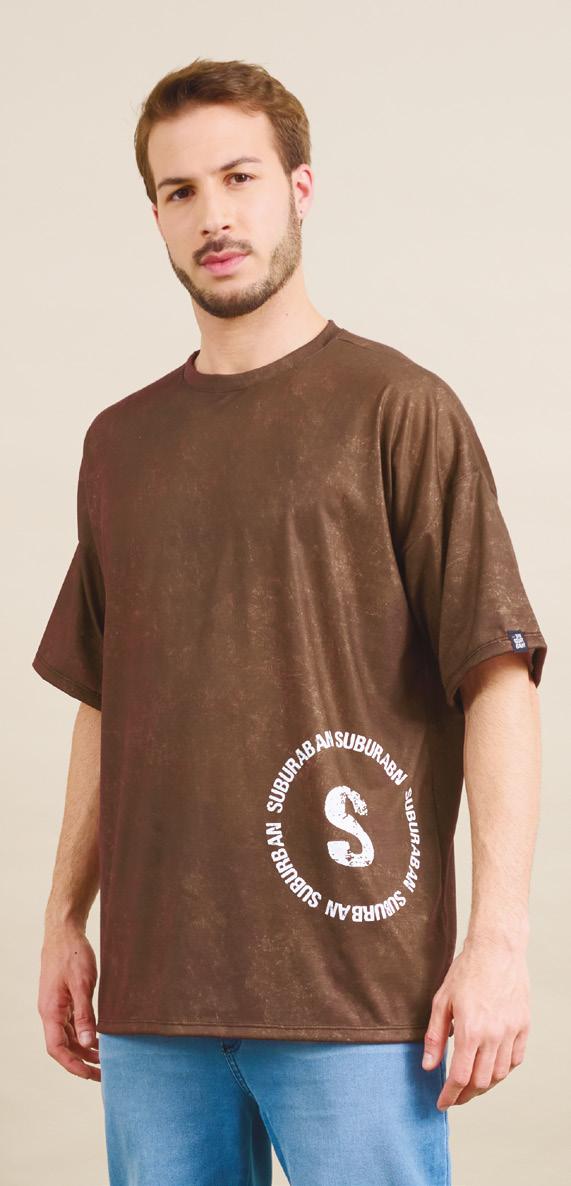 Confeccionada en viscosa estampado stone wash marrón con detalle de bordado en delantero.