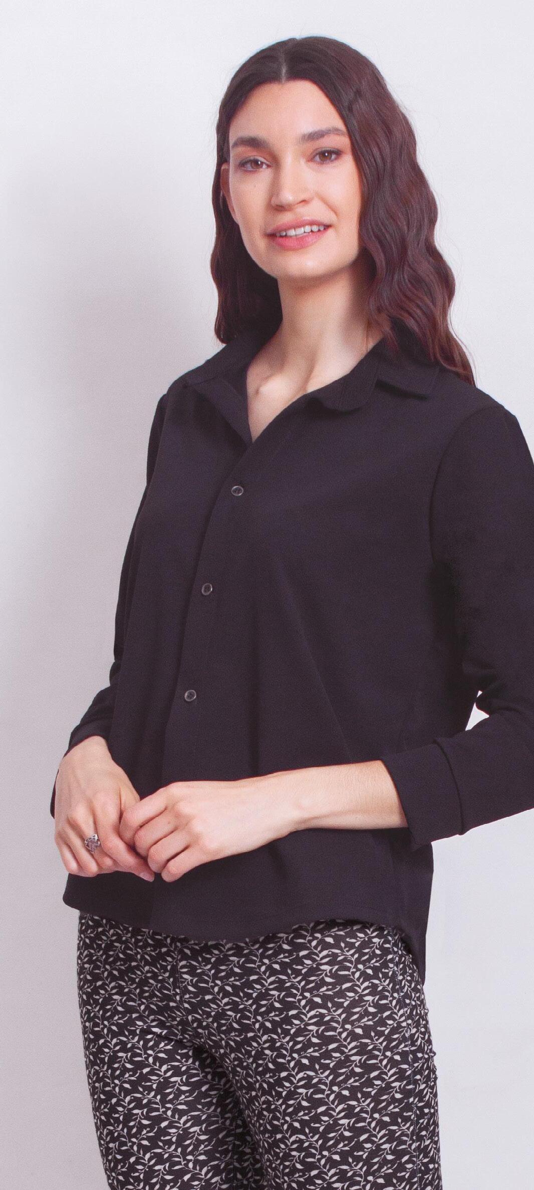 Confeccionada en viscosa. Cuello amplio caido. Línea clásica.