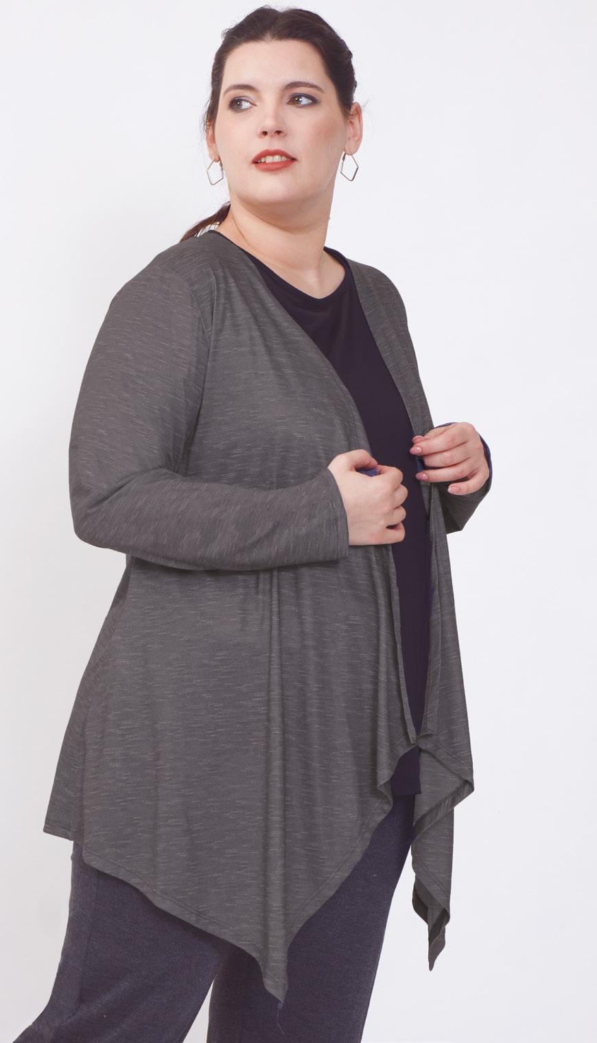 Confeccionada en frisa gris topo melange. Línea clásica.