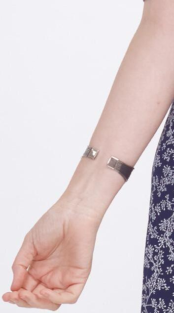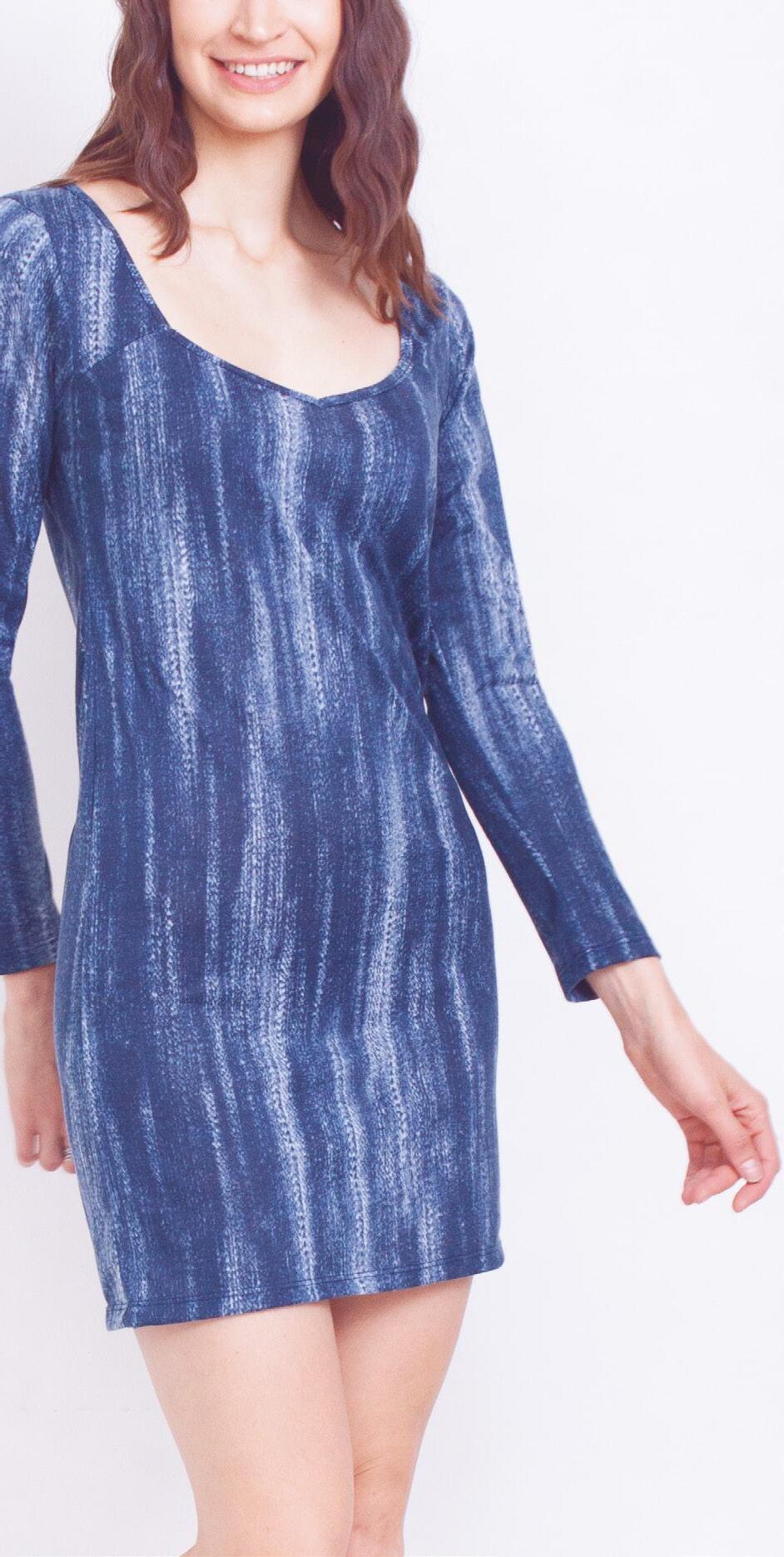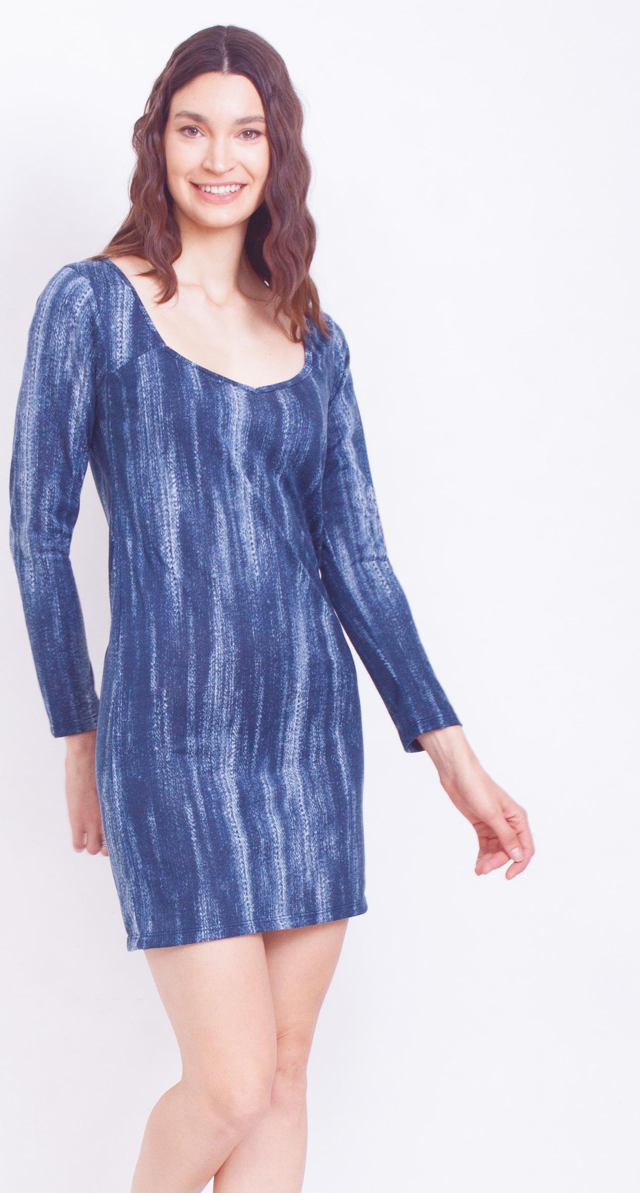 Confeccionada en viscosa azul, celeste y viscosa melange gris con recortes diagonales.